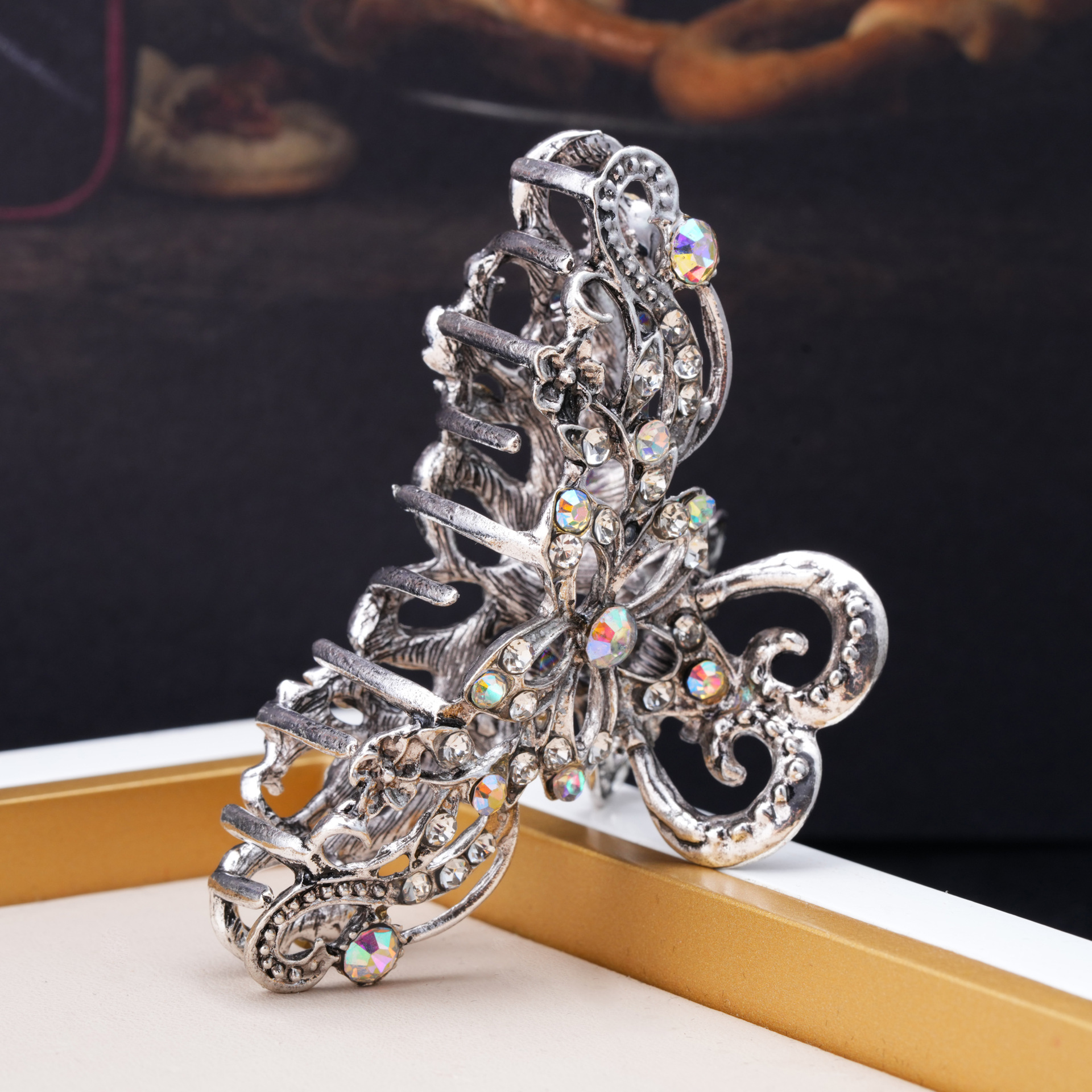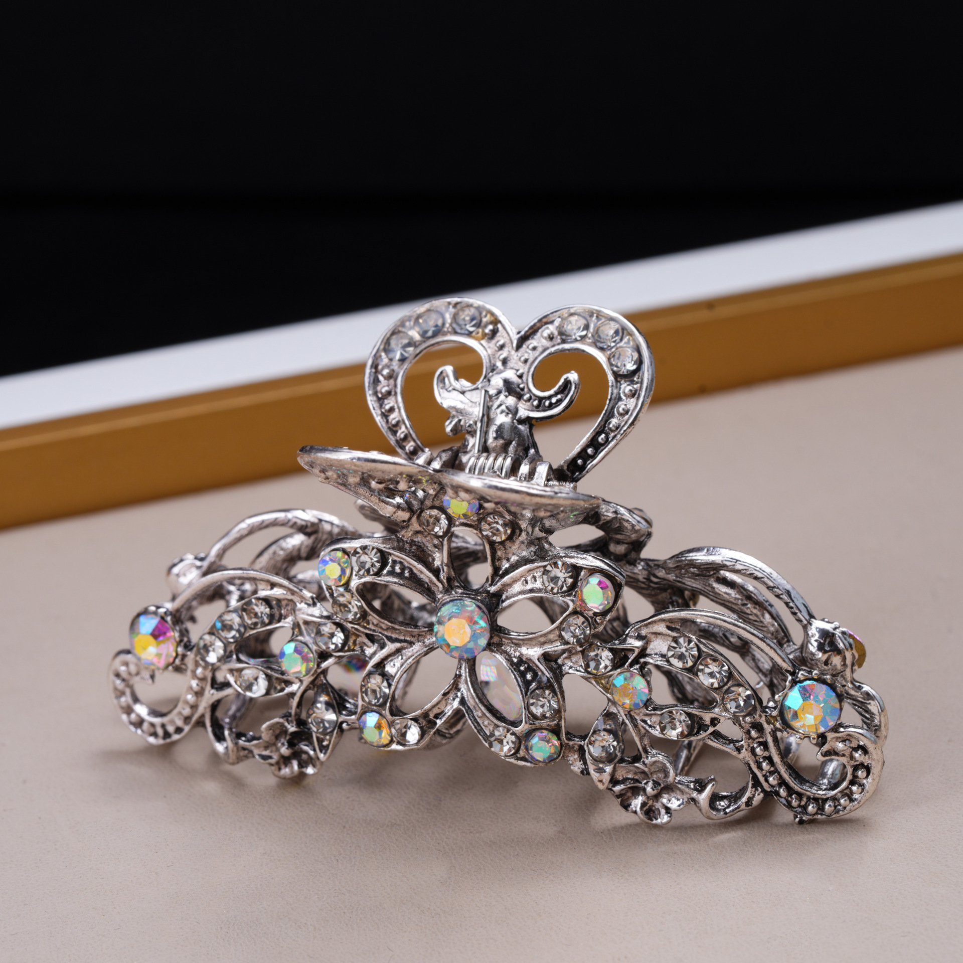 复古镂空抓夹欧美发饰女士花卉水钻发夹外贸跨境款