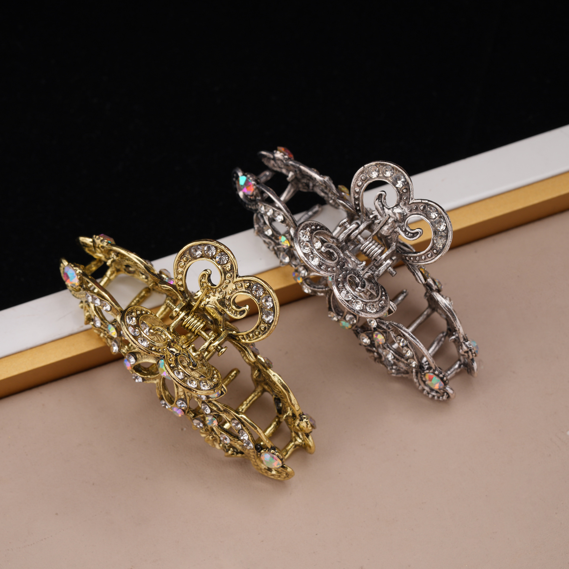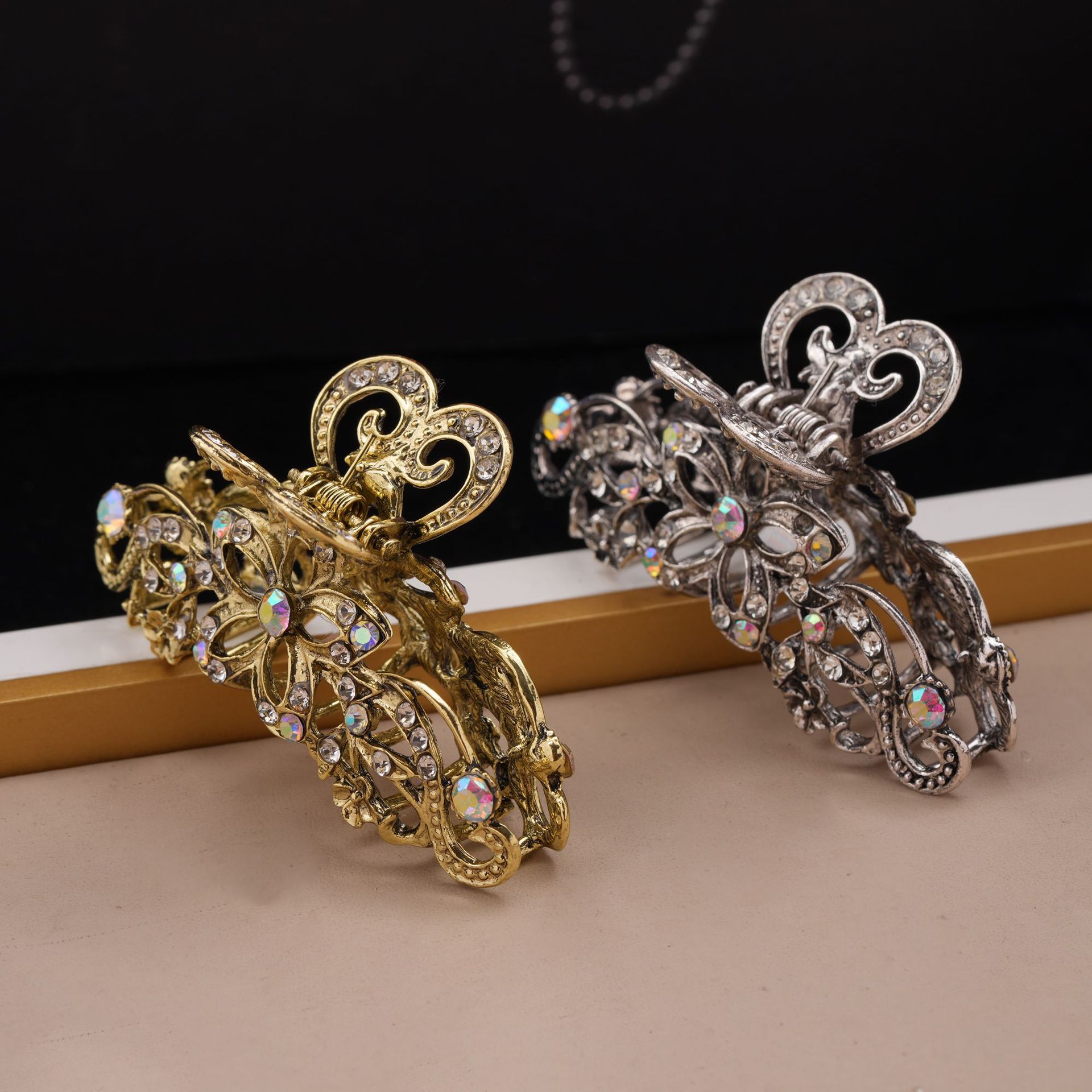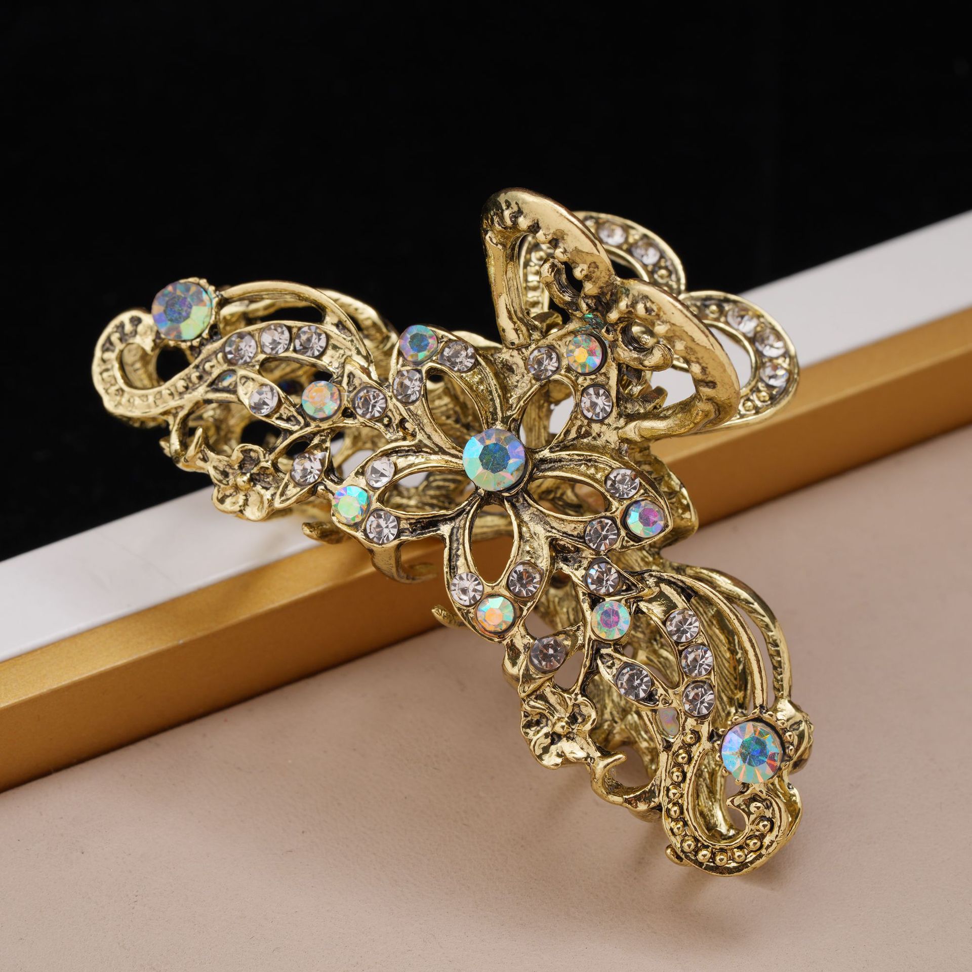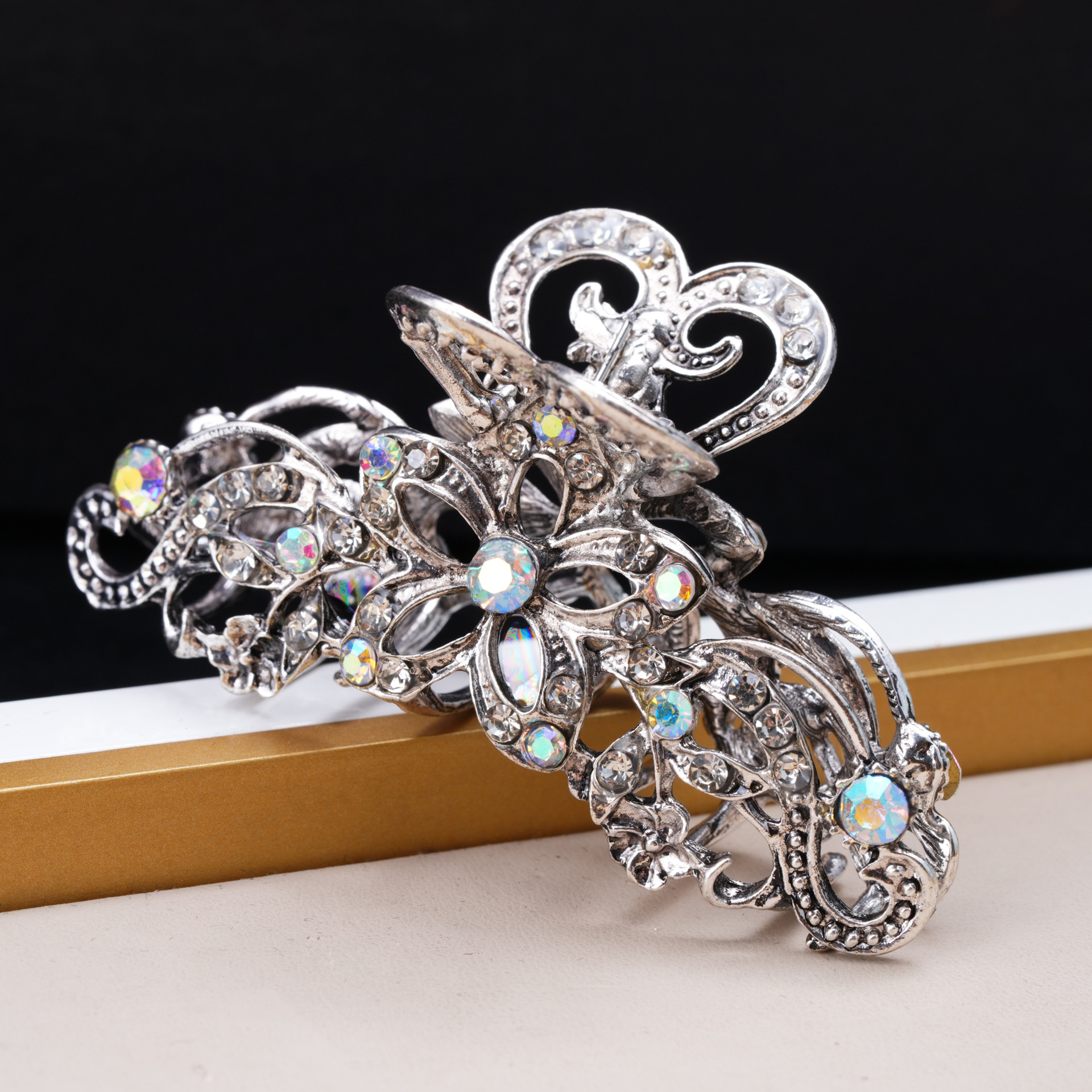 레트로 중공 클립 유럽과 미국 헤어 액세서리 숙녀 꽃 모조 다이아몬드 머리핀 대외 무역 크로스 국경