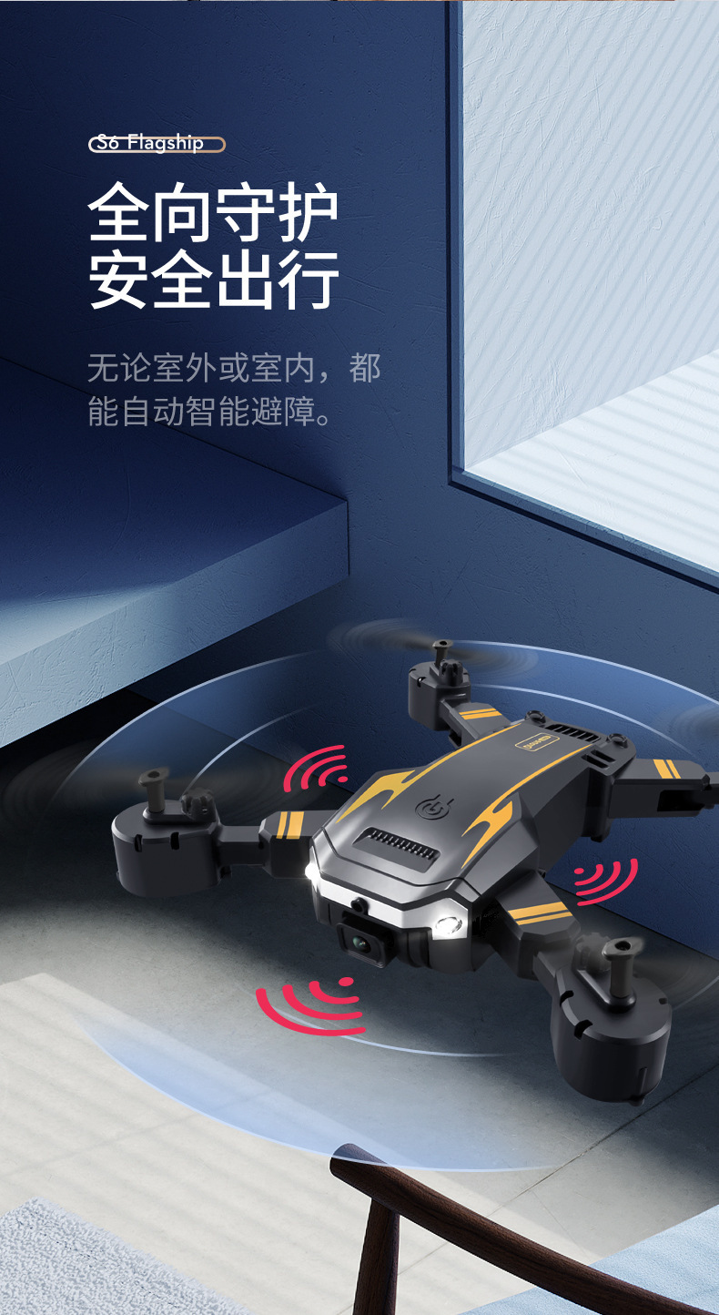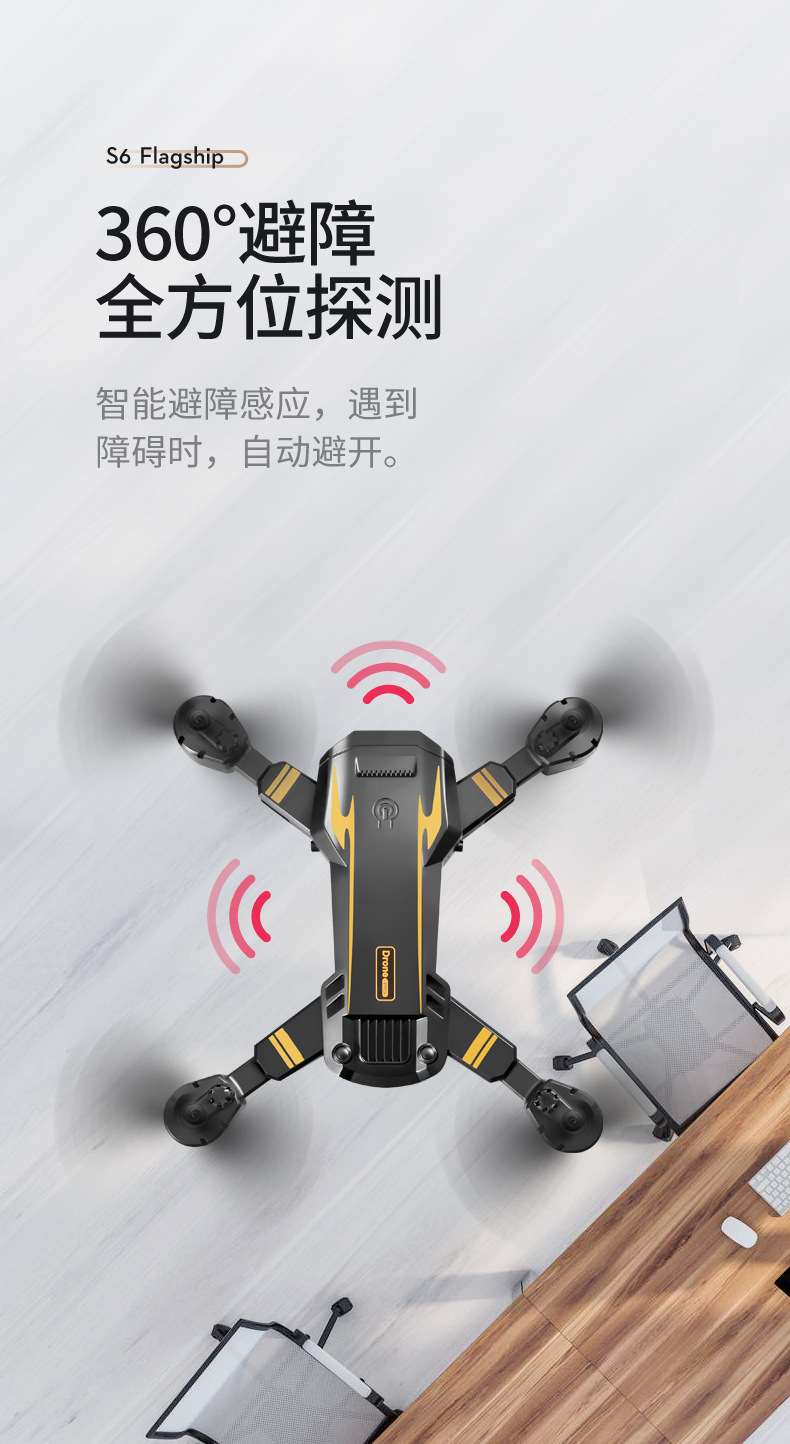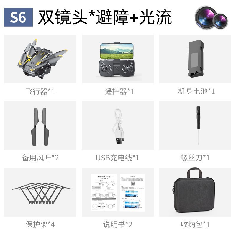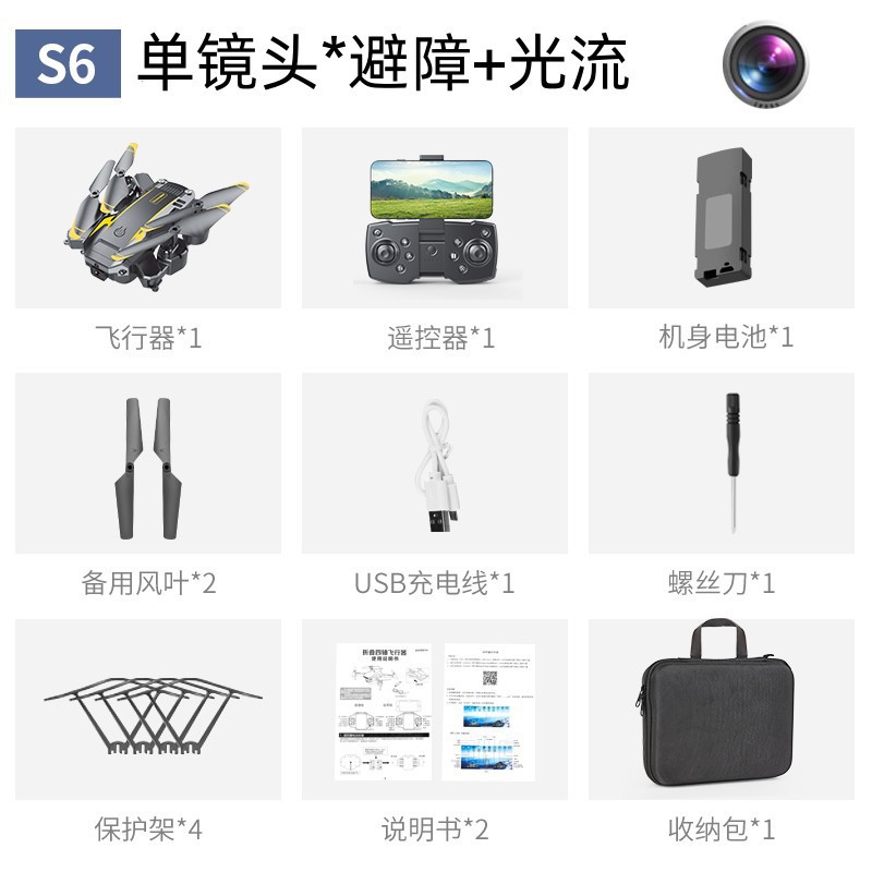 避障+光流定位 ,可手动调节镜头,智能跟随飞机可折叠,六通陀螺仪,一键起飞,一键降落,前进后退,左右侧飞,转向,无头模式,360°翻滚