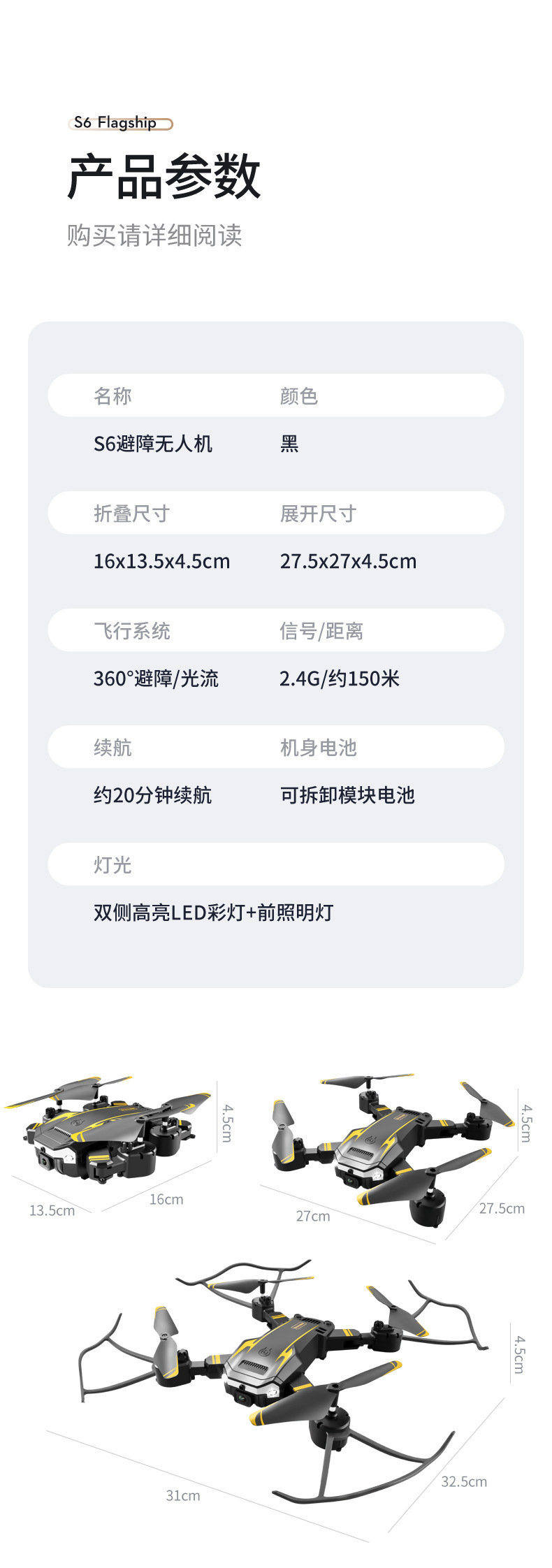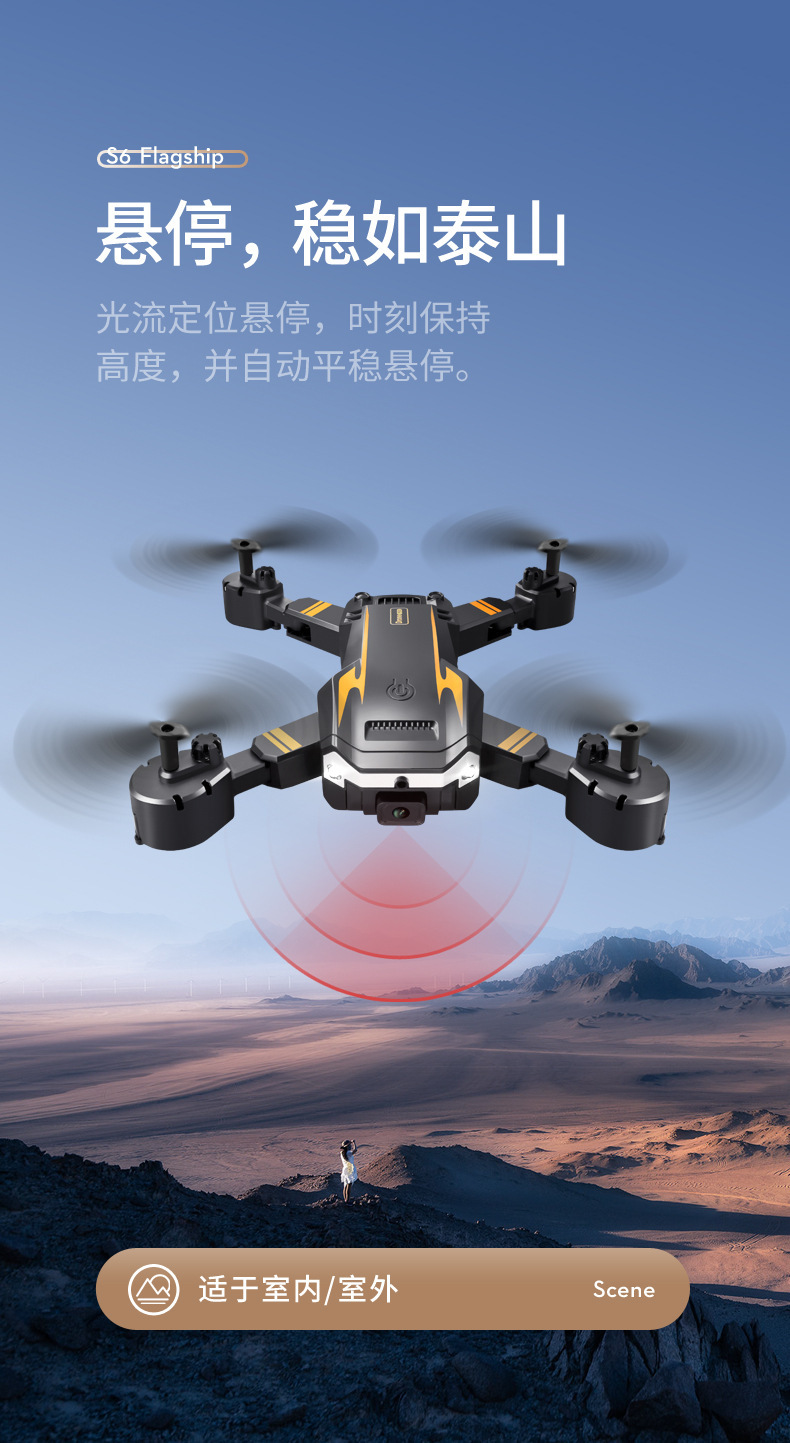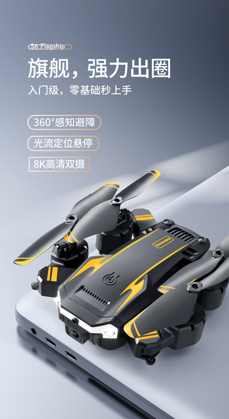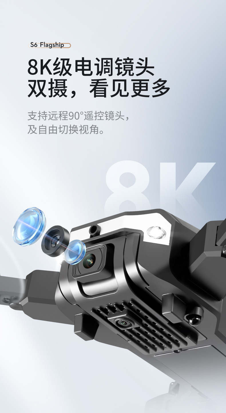 避障+光流定位 ,可手动调节镜头,智能跟随飞机可折叠,六通陀螺仪,一键起飞,一键降落,前进后退,左右侧飞,转向,无头模式,360°翻滚