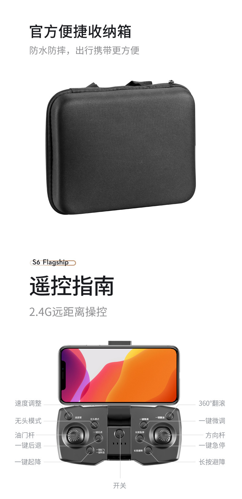 (带摄镜头可加功能:APP操控,360°翻滚,手势拍照,录像,无头模式,急停,轨迹飞行,重力感应,自动拍照)