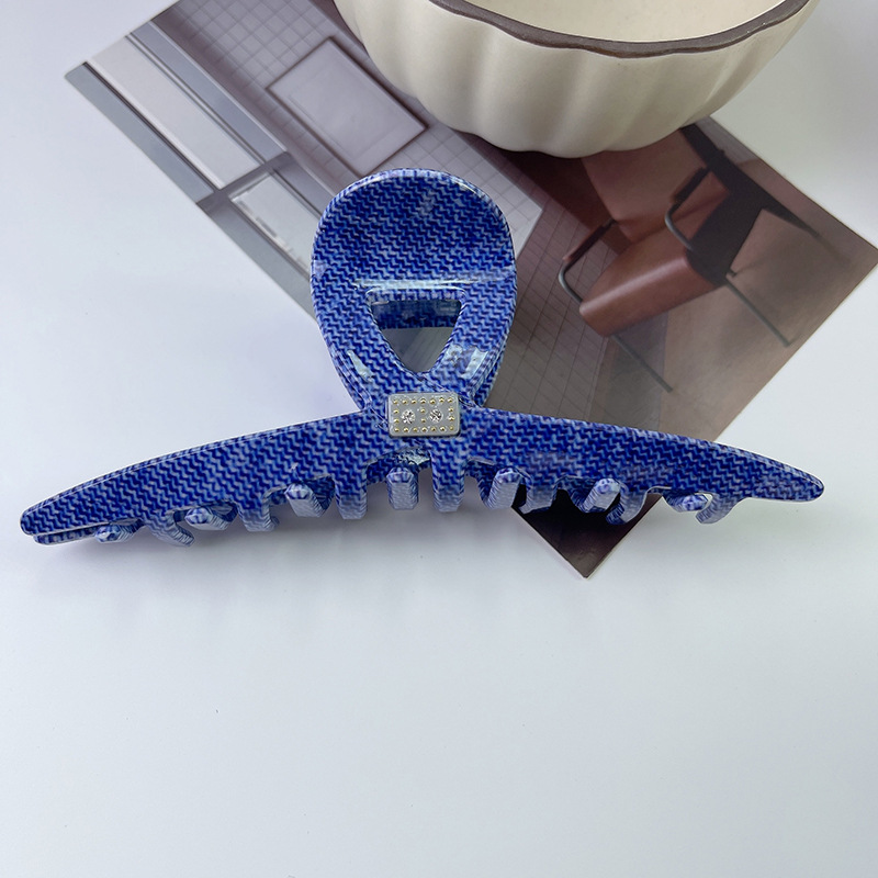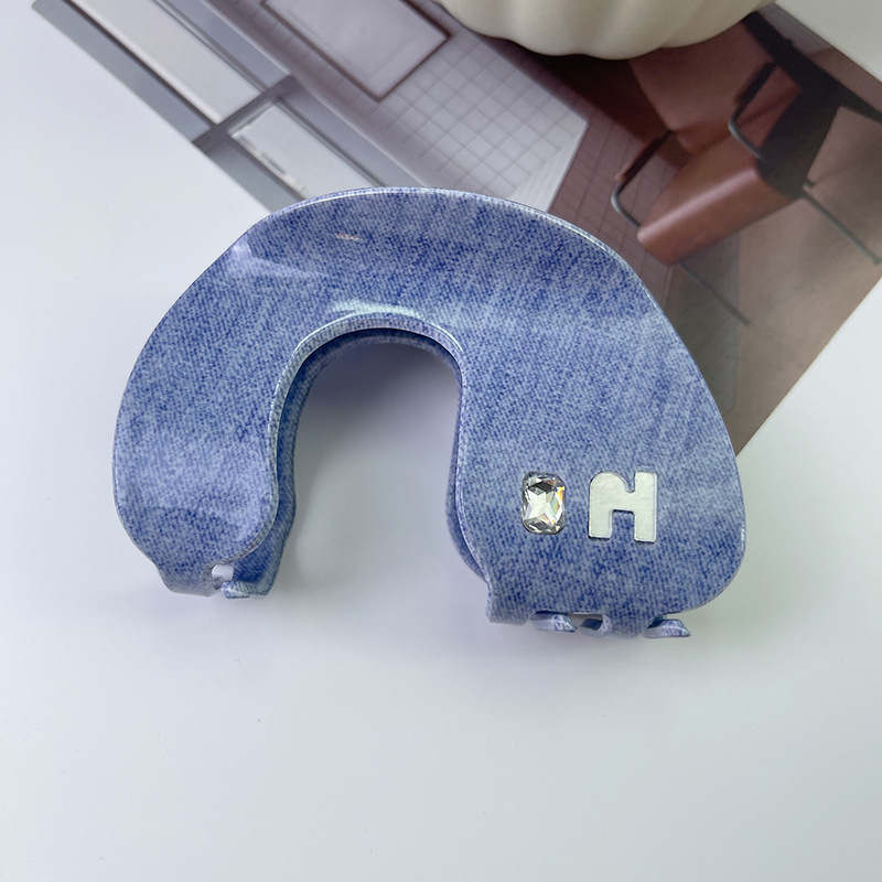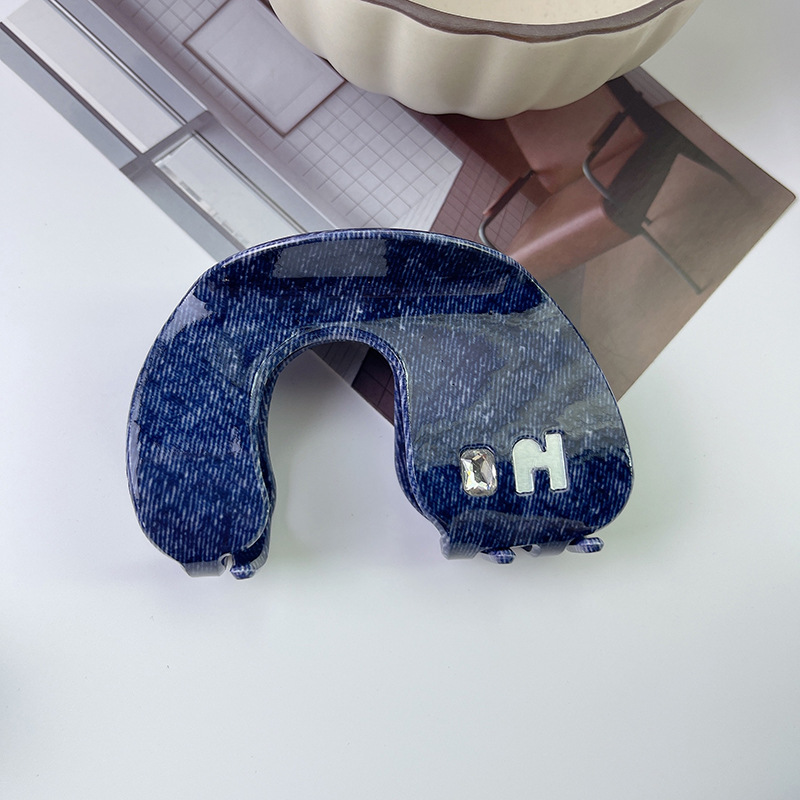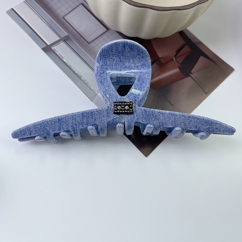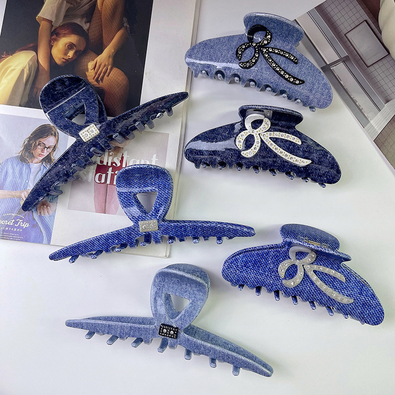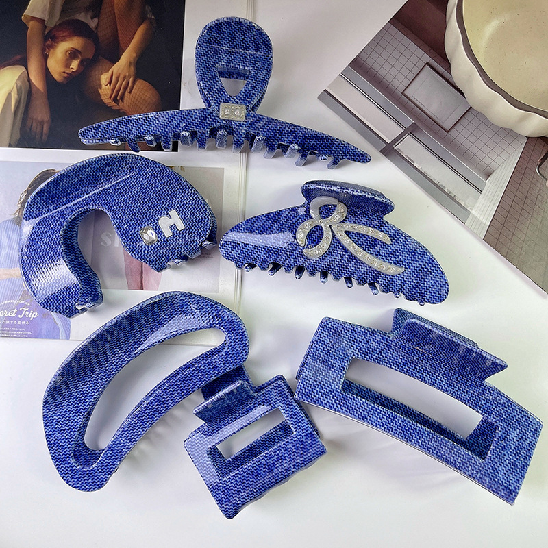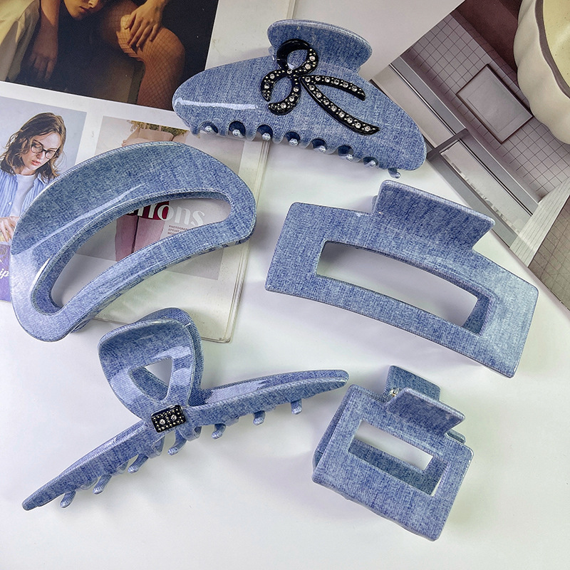 새로운 Y2K 밀레니엄 스타일 데님 클립 독특한 블루 아세트산 머리핀 우아한 라인 석 상어 클립 여성용 헤어 액세서리