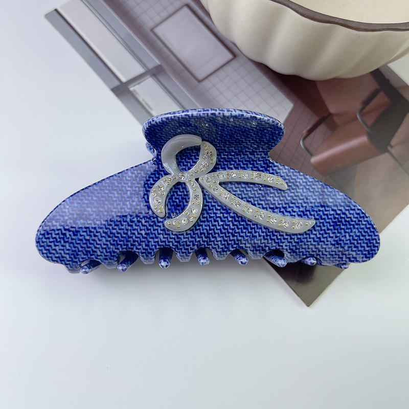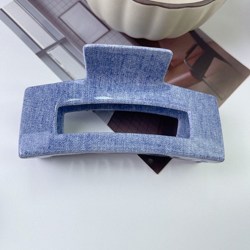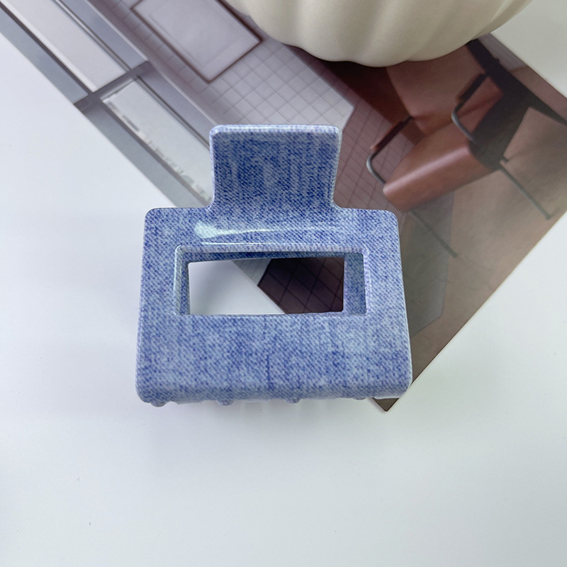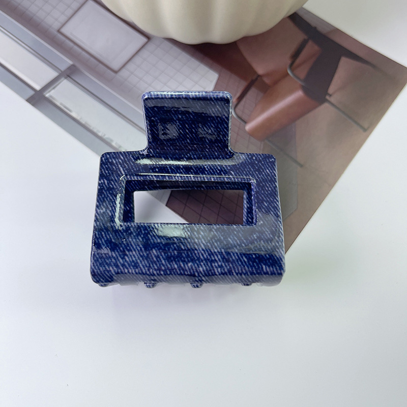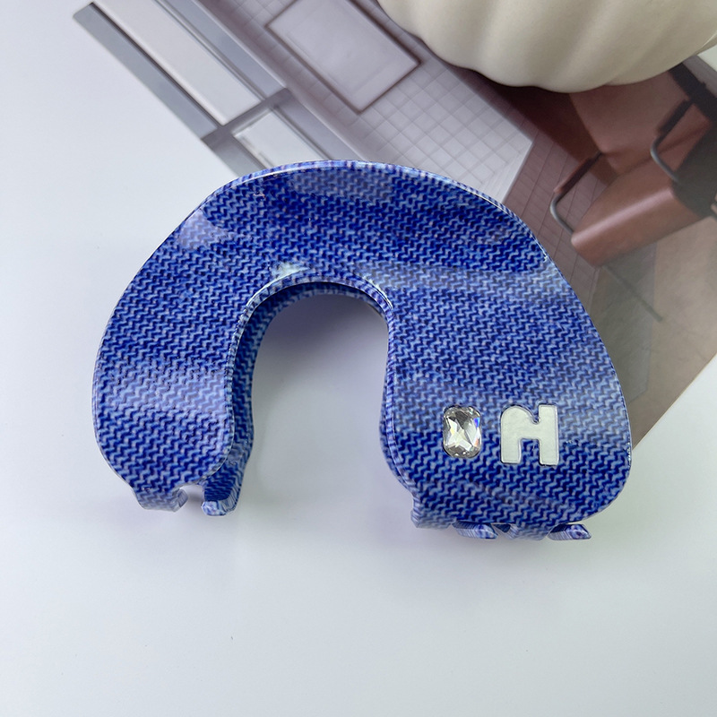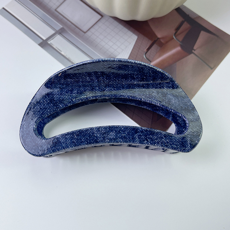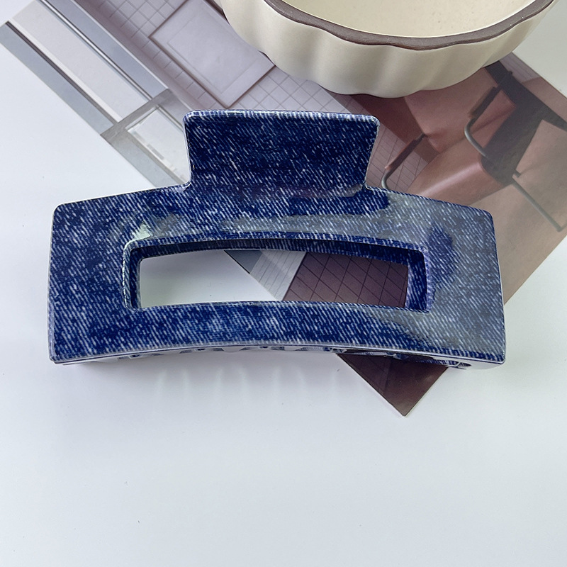 새로운 Y2K 밀레니엄 스타일 데님 클립 독특한 블루 아세트산 머리핀 우아한 라인 석 상어 클립 여성용 헤어 액세서리