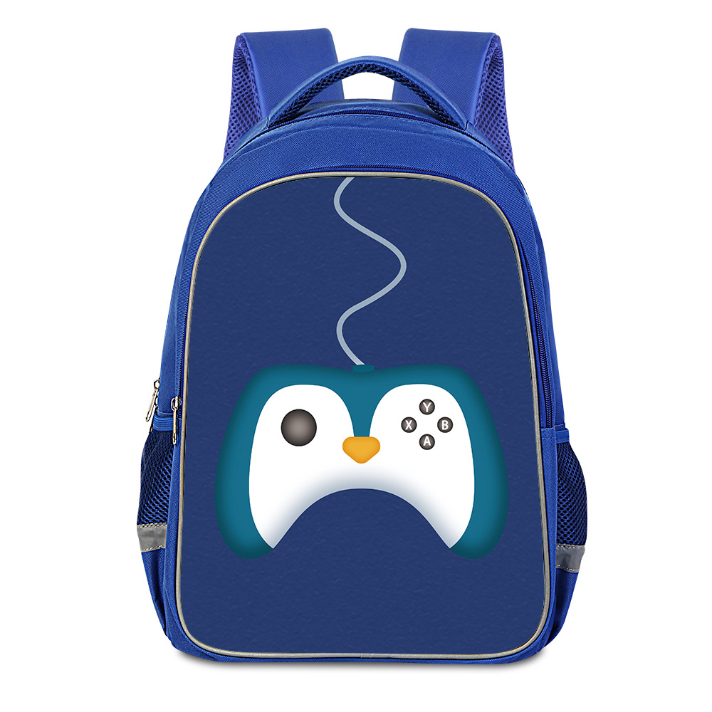 外贸热销款学生书包 可爱企鹅游戏手柄双肩包 17寸反光双层大容量