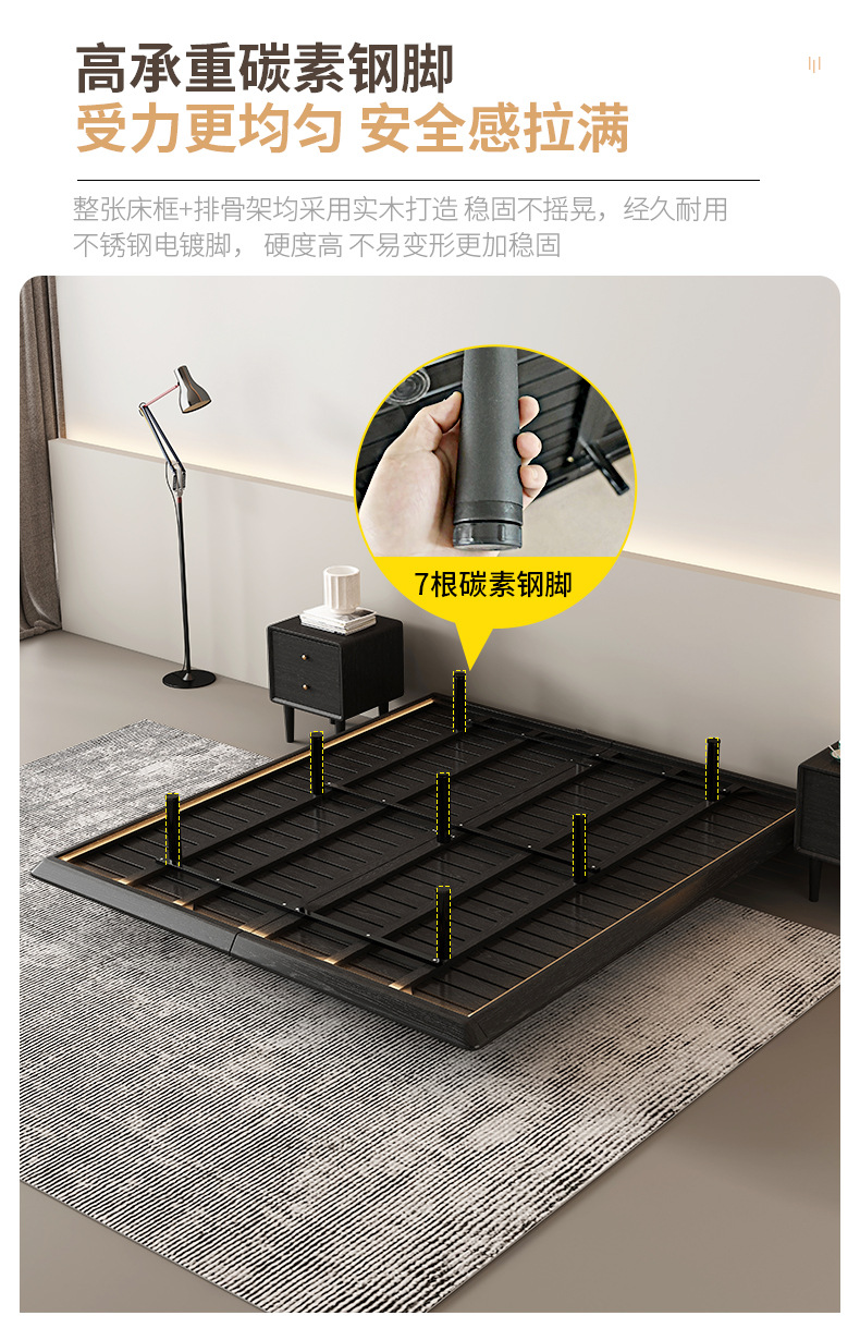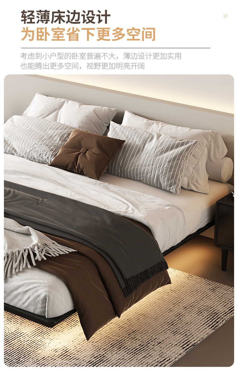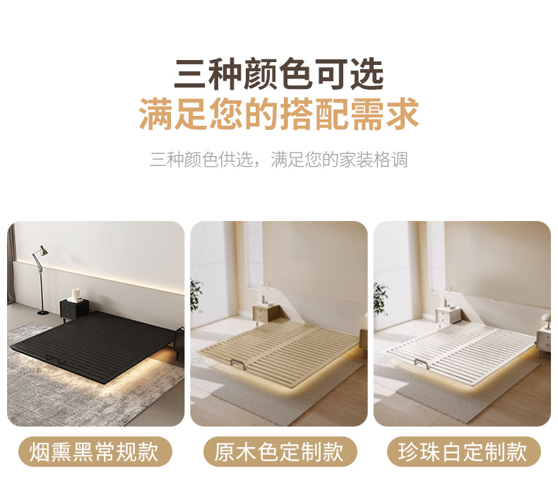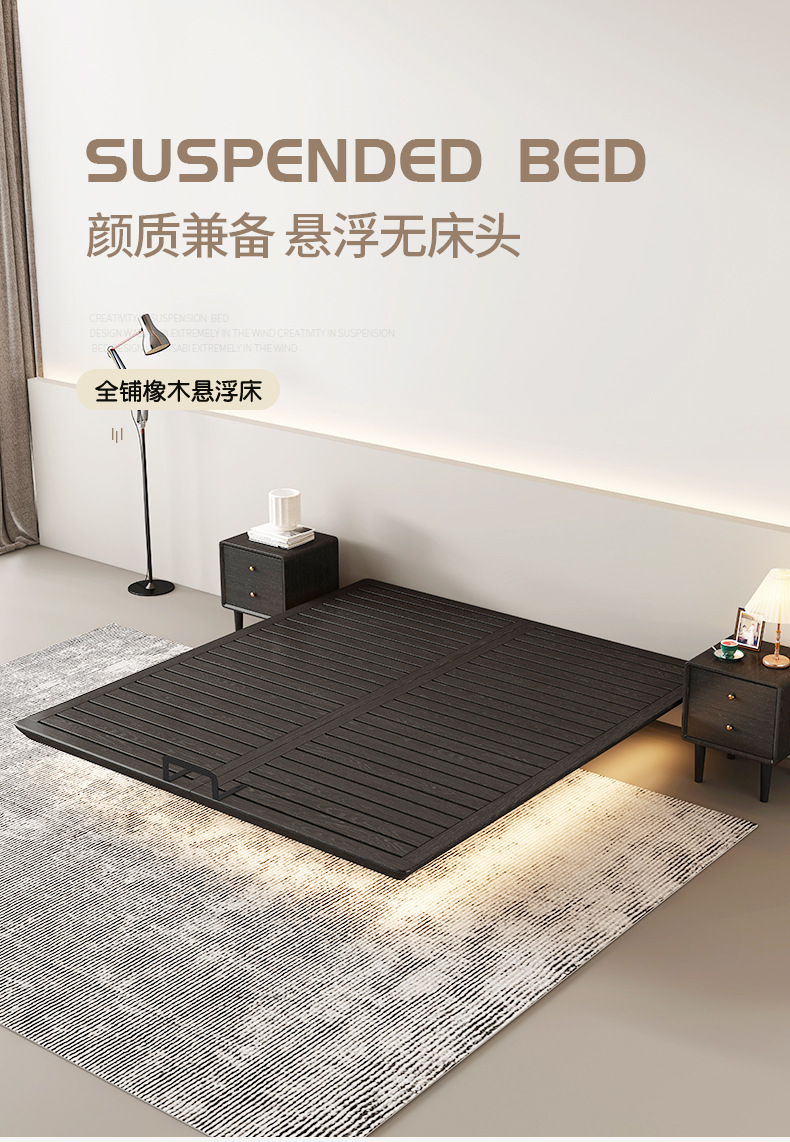 침대 옆 서스펜션 침대 없음 풀 솔리드 우드 마스터 침실 더블 침대 작은 아파트 랙 침대 등받이 타타미 침대 없음