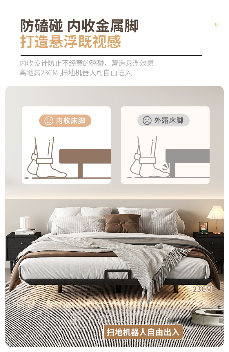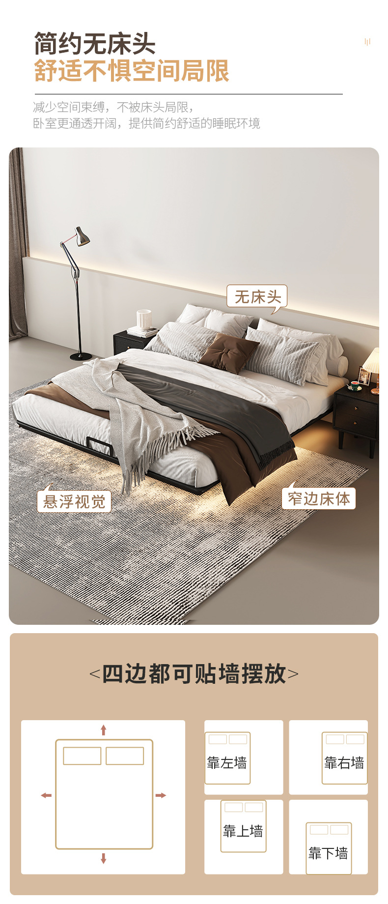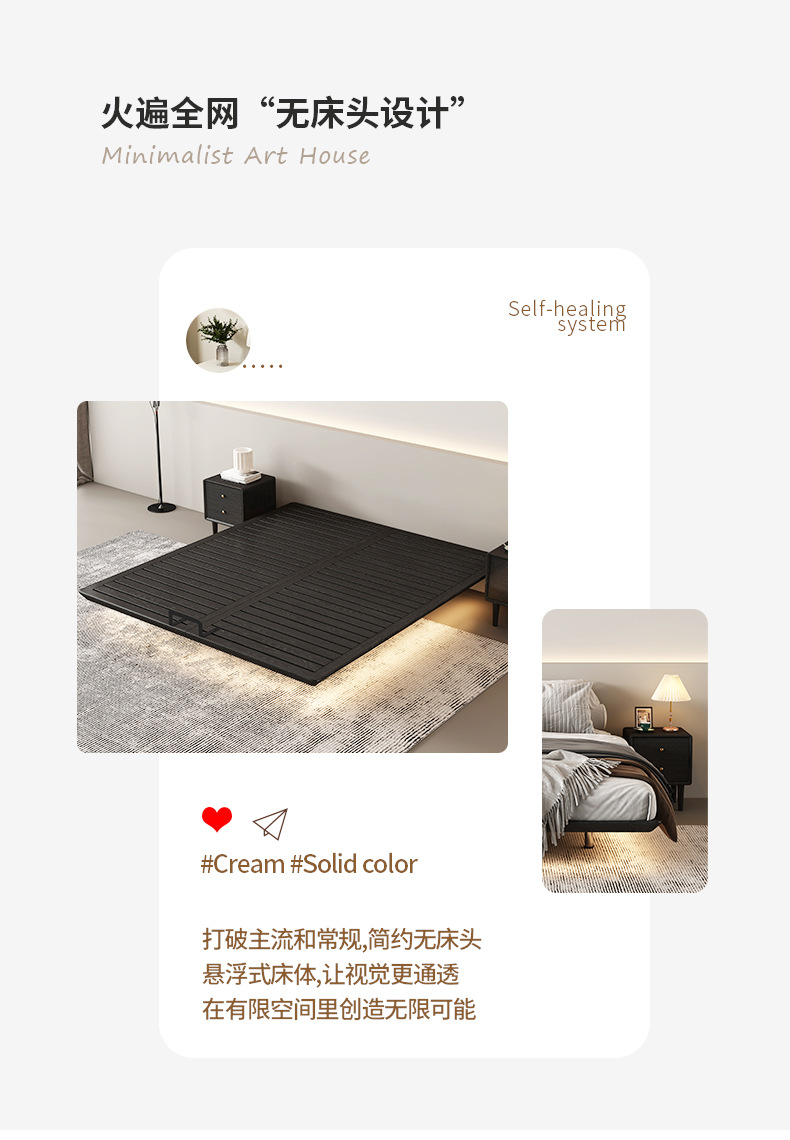 침대 옆 서스펜션 침대 없음 풀 솔리드 우드 마스터 침실 더블 침대 작은 아파트 랙 침대 등받이 타타미 침대 없음