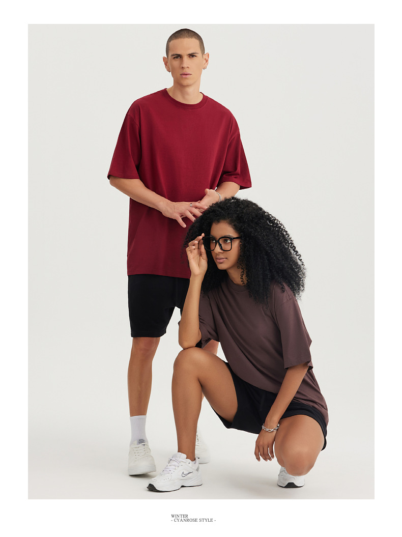 LVLV 남성복 | 아메리칸 레트로 퓨어 코튼 반팔 티셔츠 크로스 보더 하이 스트리트 타이드 브랜드 숄더 드롭 Ami Kaji 와이드 에디션 백킹