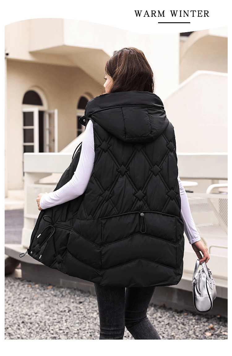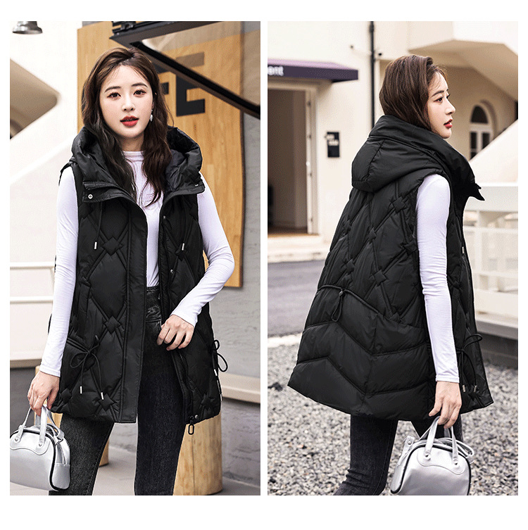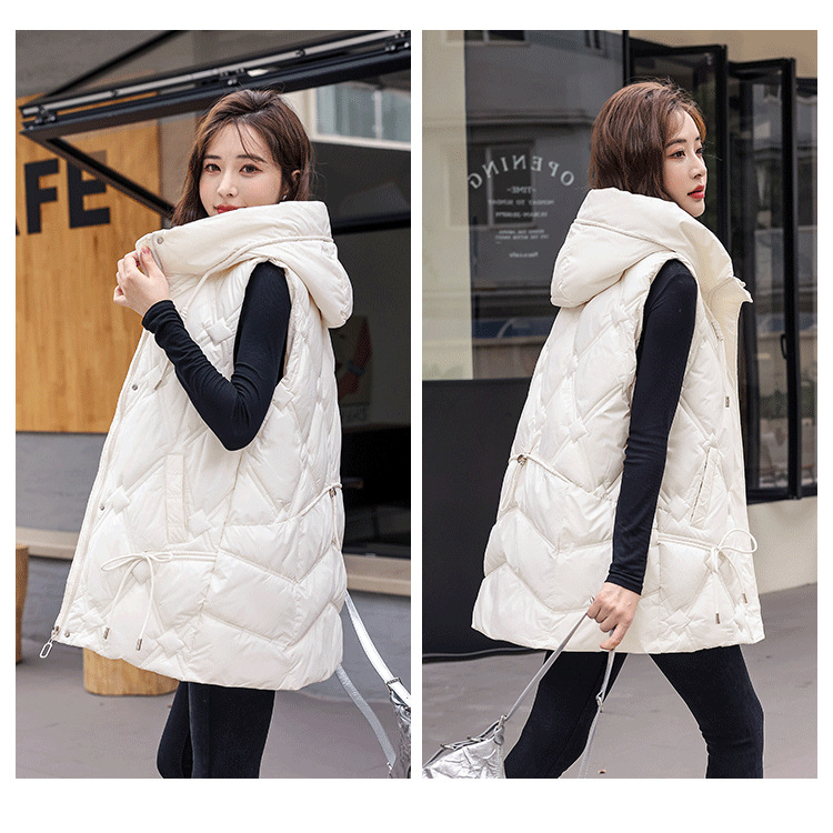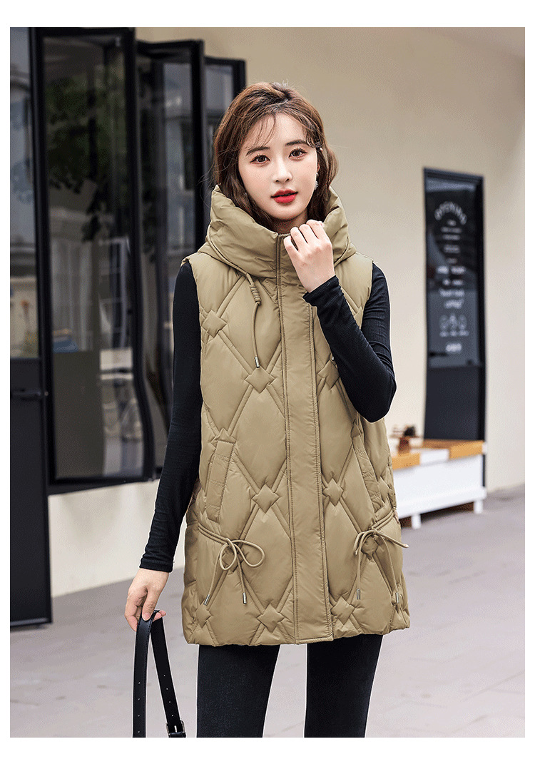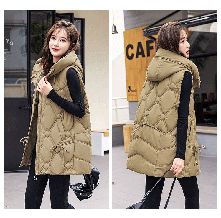2023 겨울 새로운 한국 스타일 면 조끼 여성용 중간 길이 슬림핏 두꺼운 슬림 룩 조끼 여성 학생 면 조끼스토어 가기