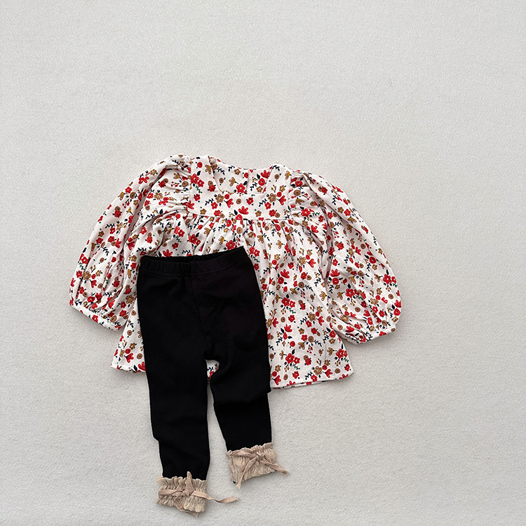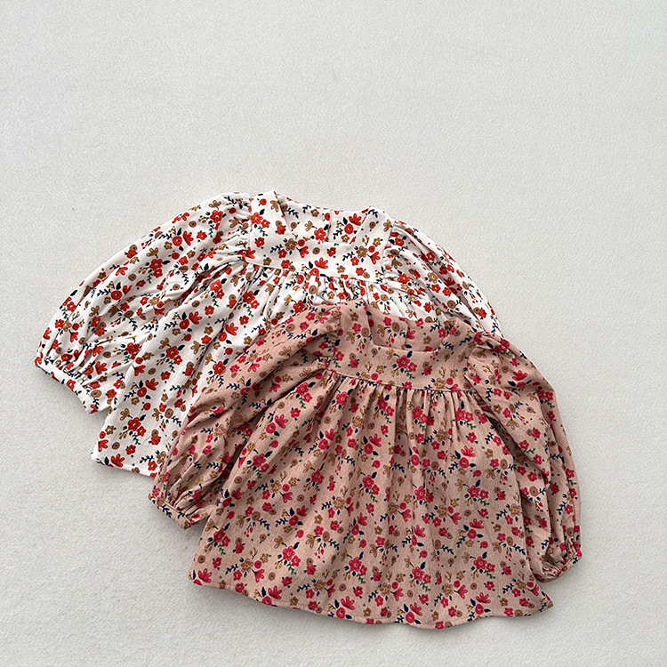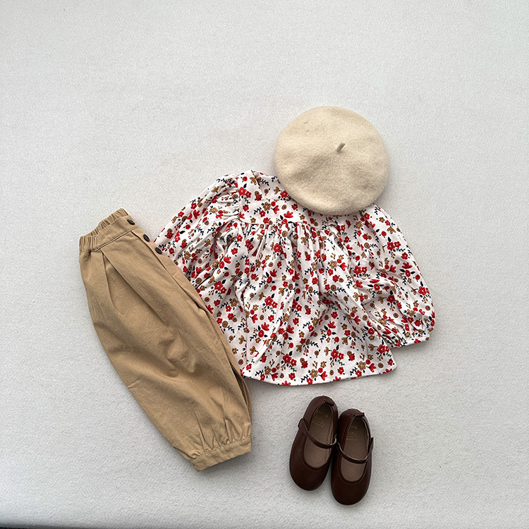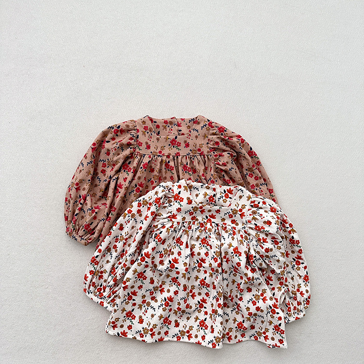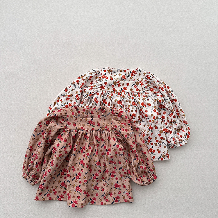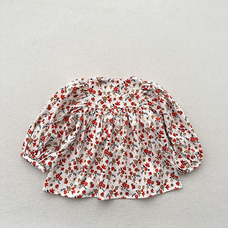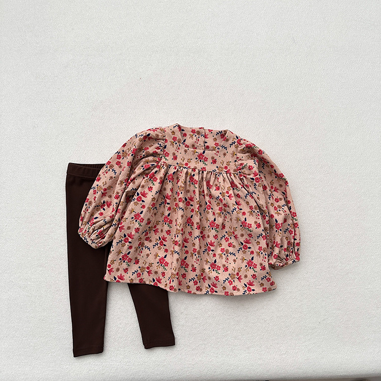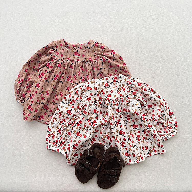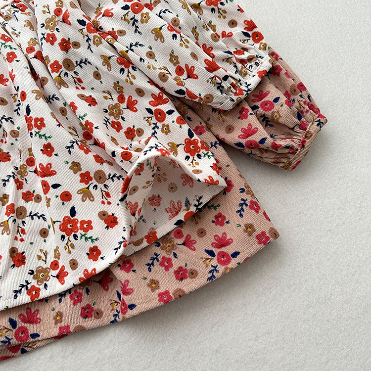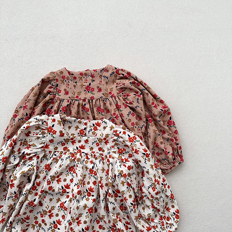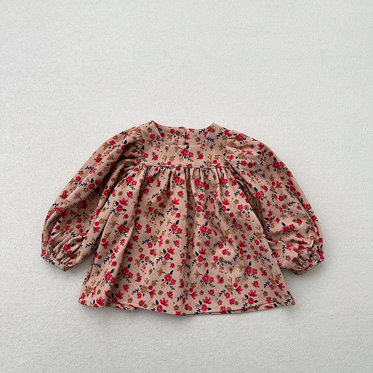 여아 코듀로이 인형 셔츠 ~ 가을과 겨울 새로운 어린이 루즈한 탑 아기 소녀 꽃 모리 스타일 복고풍 셔츠