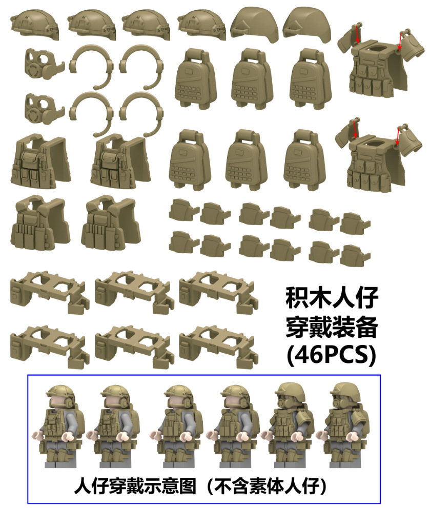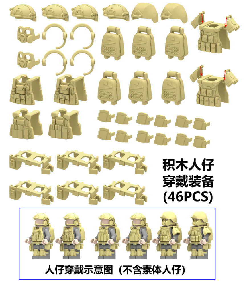 군사 빌딩 블록 남성 착용 장비 특수 부대 조끼 벨트 헬멧 배낭 작은 입자 장난감 조립 크로스 보더스토어 가기