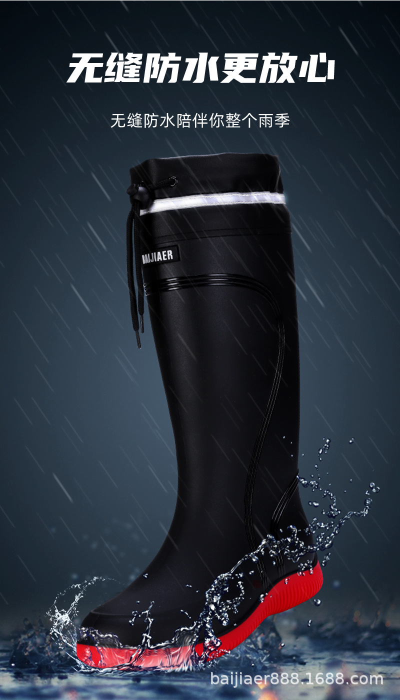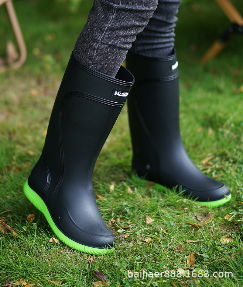 졸라매는 끈 방수 입 비 신발 남자의 닫는 방수 물 신발 높은 튜브 미끄럼 방지 장화 경 사진 작업 고무 신발 남자의 새로운스토어 가기