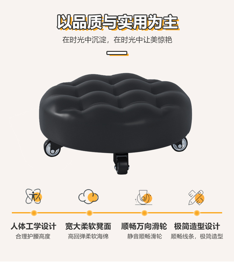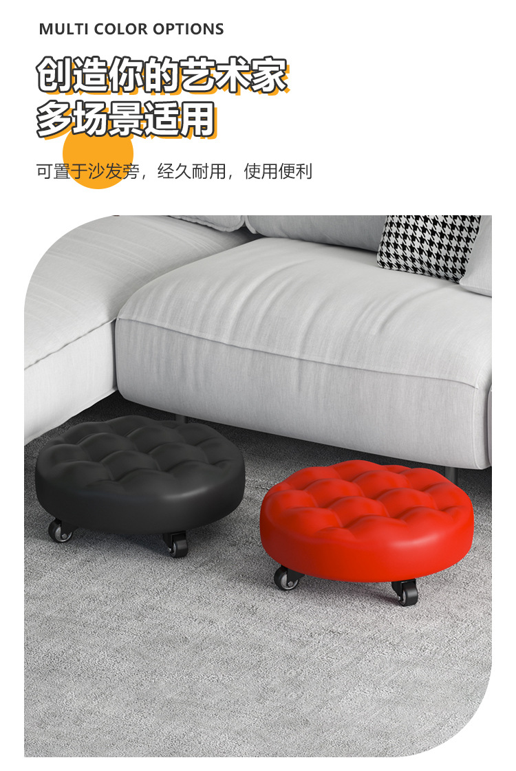 바퀴가있는 도르래 낮은 의자 작은 의자 가정용 유니버설 휠 솔기 의자 어린이 유아 부드러운 의자 사이버 인기있는 모바일 작은 의자스토어 가기