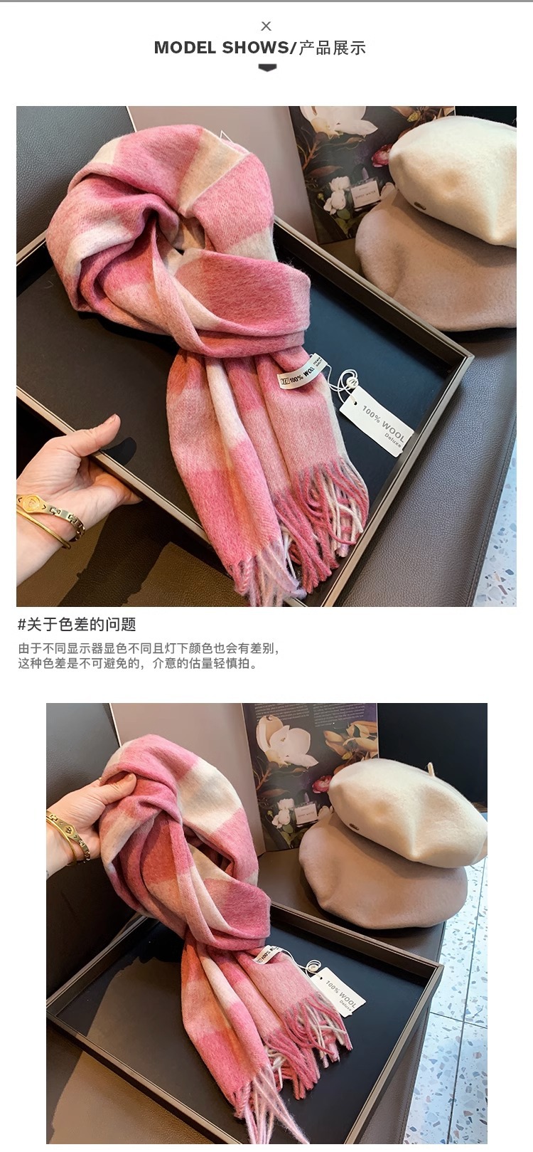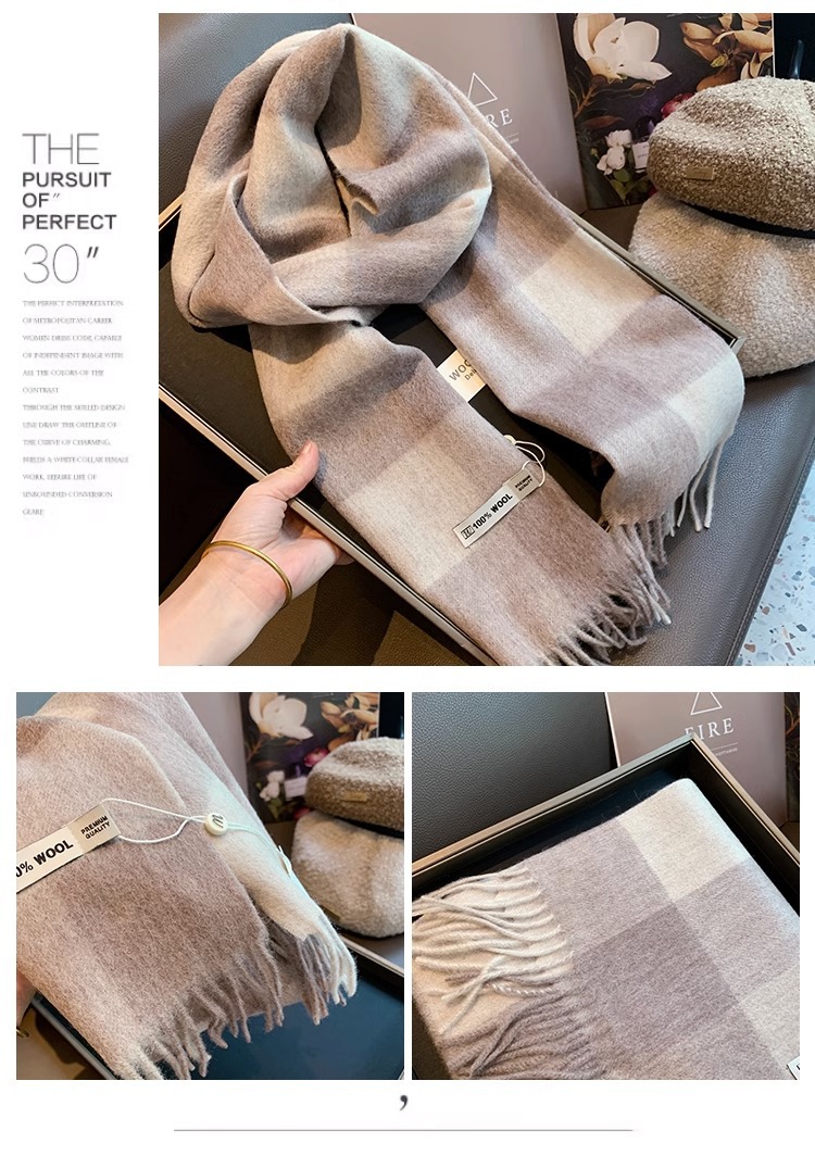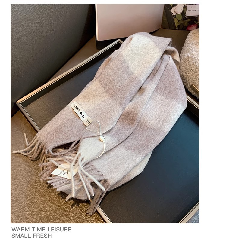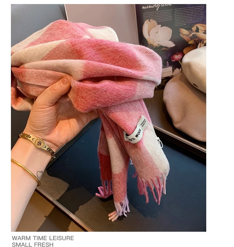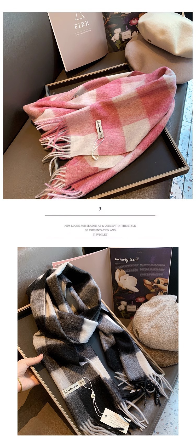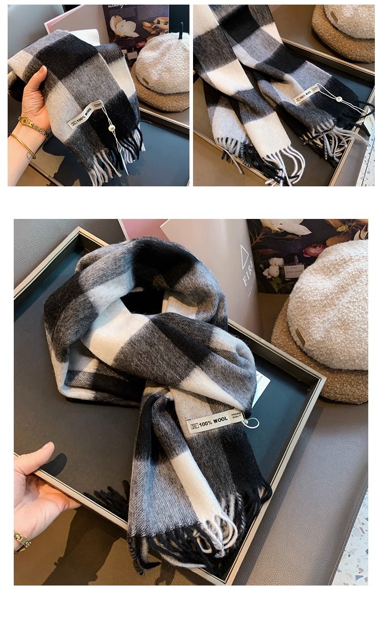 모든 매치 고급 울 니트 울 스카프 여성용 겨울 따뜻한 스카프 좁은 버전 긴 색상 매칭 격자 무늬 목도리 여성스토어 가기