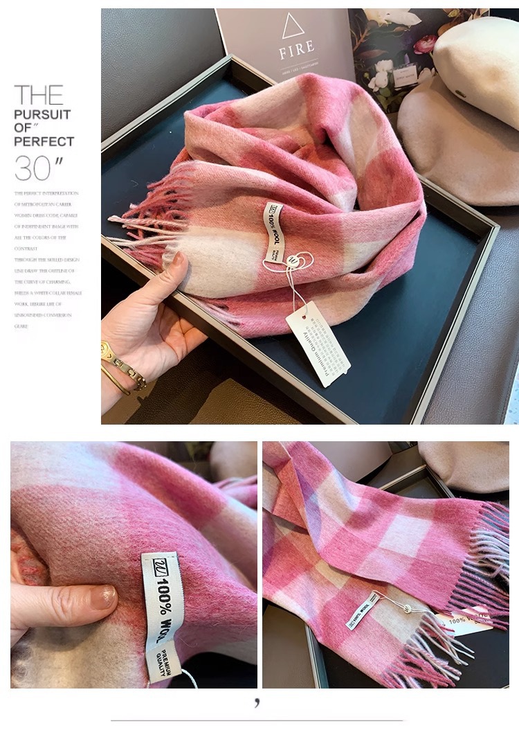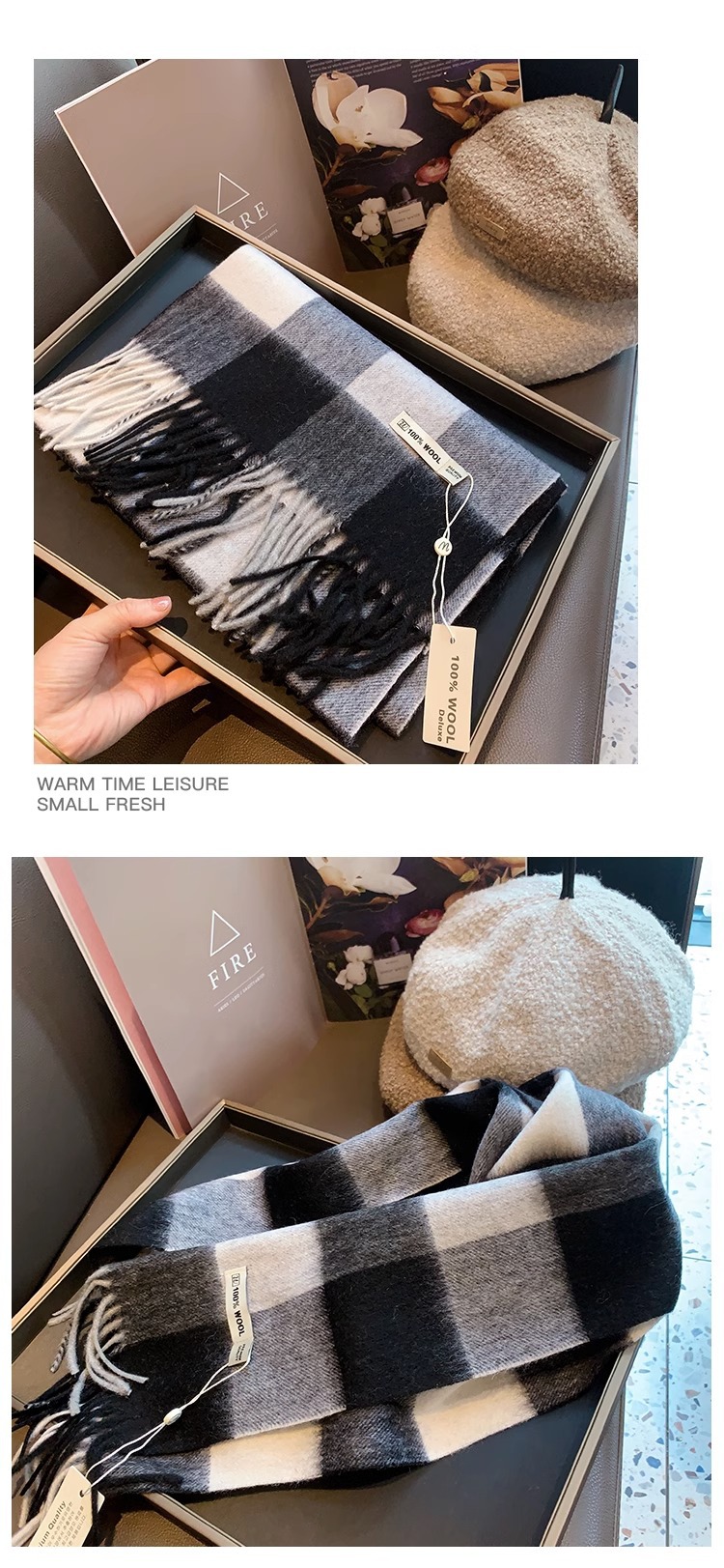 모든 매치 고급 울 니트 울 스카프 여성용 겨울 따뜻한 스카프 좁은 버전 긴 색상 매칭 격자 무늬 목도리 여성