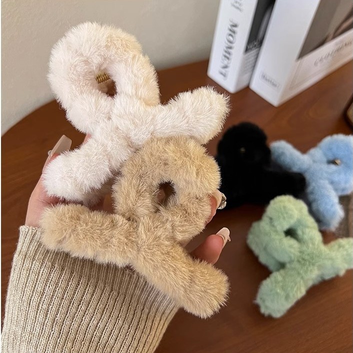 달콤하고 귀여운 봉제 헤어 클립 짧은 크로스 클립 소녀의 머리 뒷면 헤어 클립 헤어 상어 클립 헤어 액세서리스토어 가기