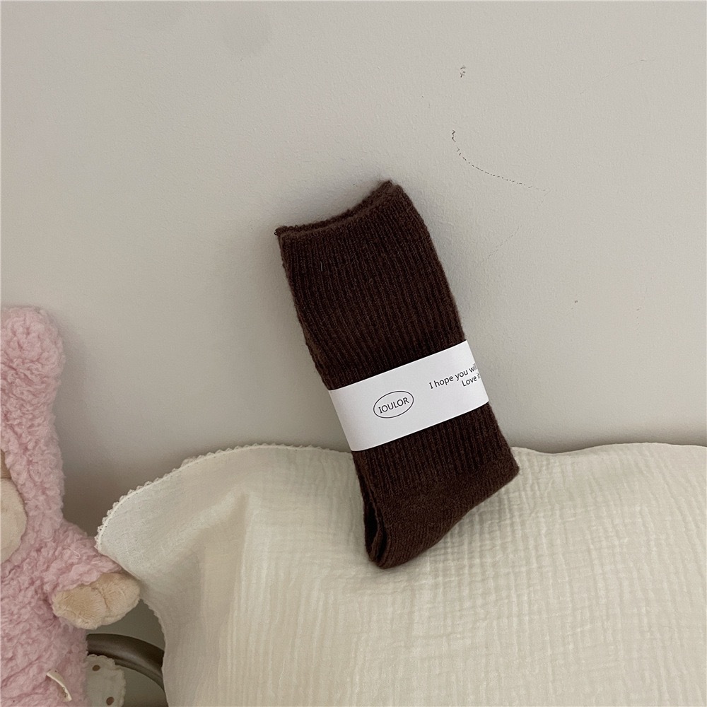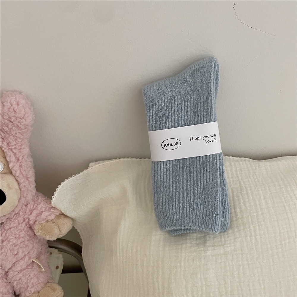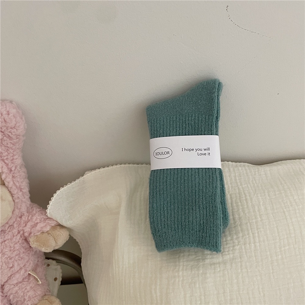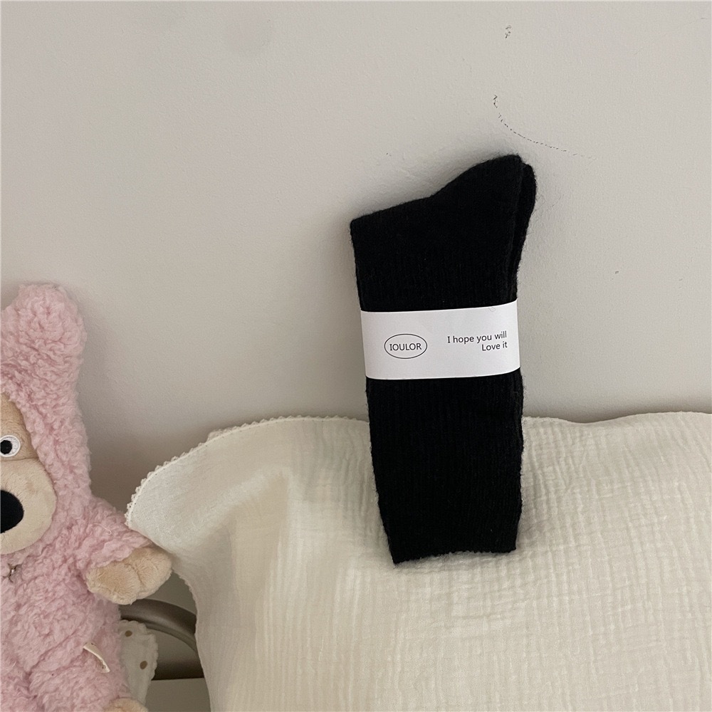 IOULOR 겨울 단색 두꺼운 따뜻한 울 양말 컬러 스택 모든 경기 여성 양말 중간 길이 양말 Sakagiya
