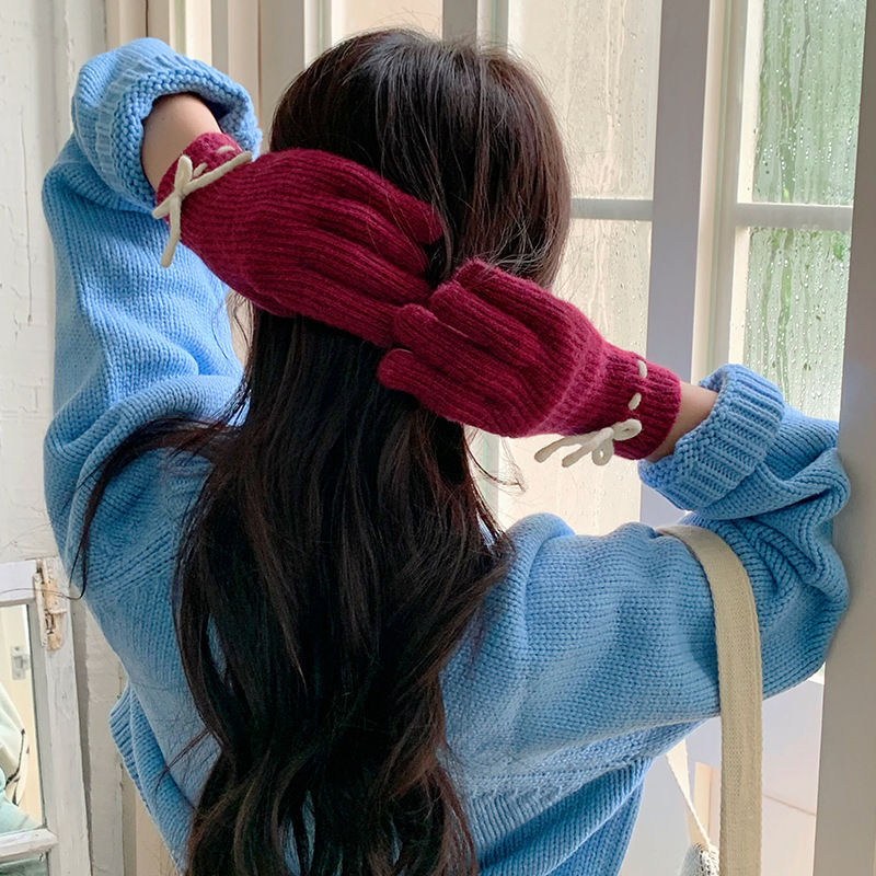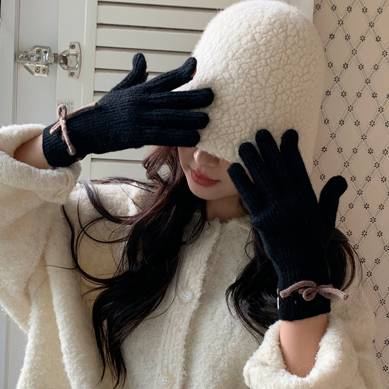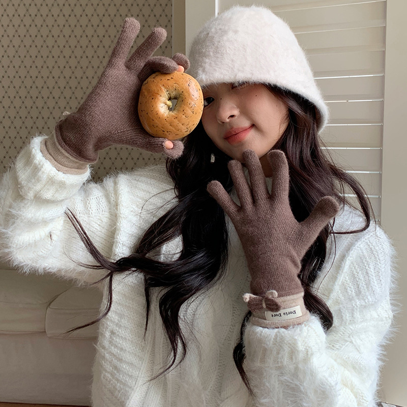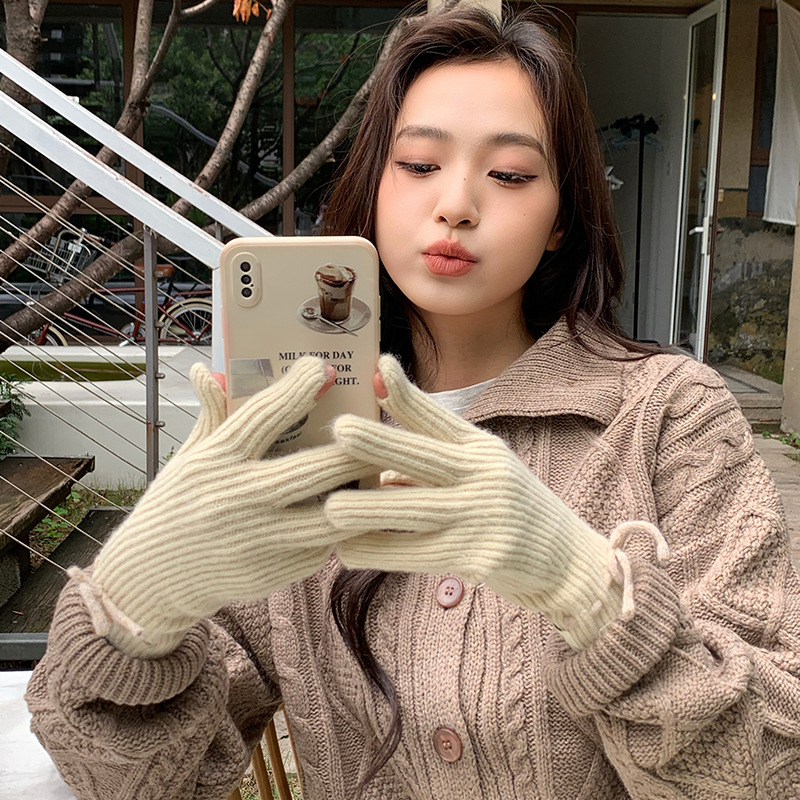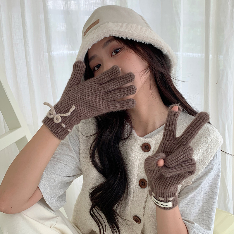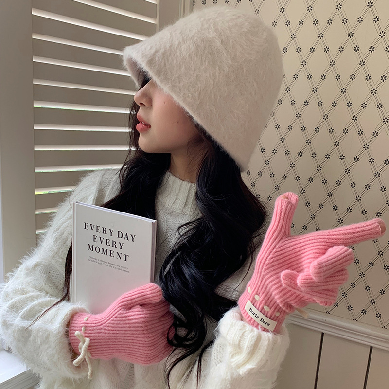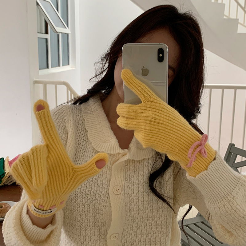 단색 모든 매치 패션 따뜻하고 편안한 장갑 캐주얼 독특한 활 겨울 방한 니트 울 장갑