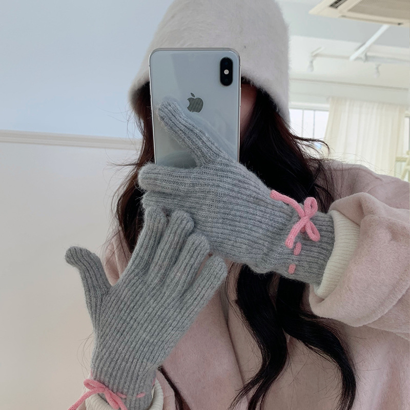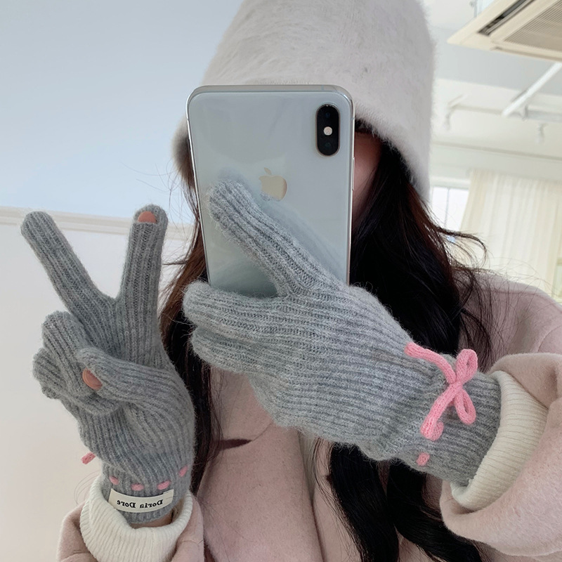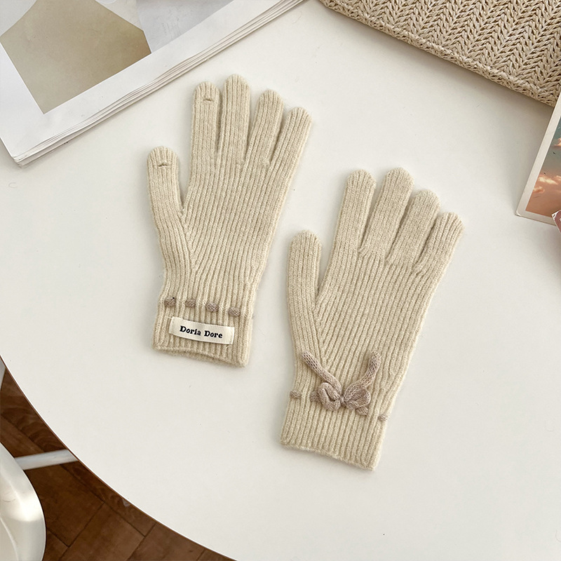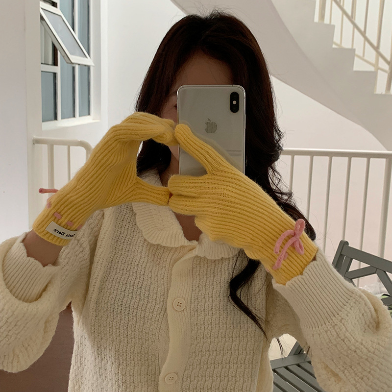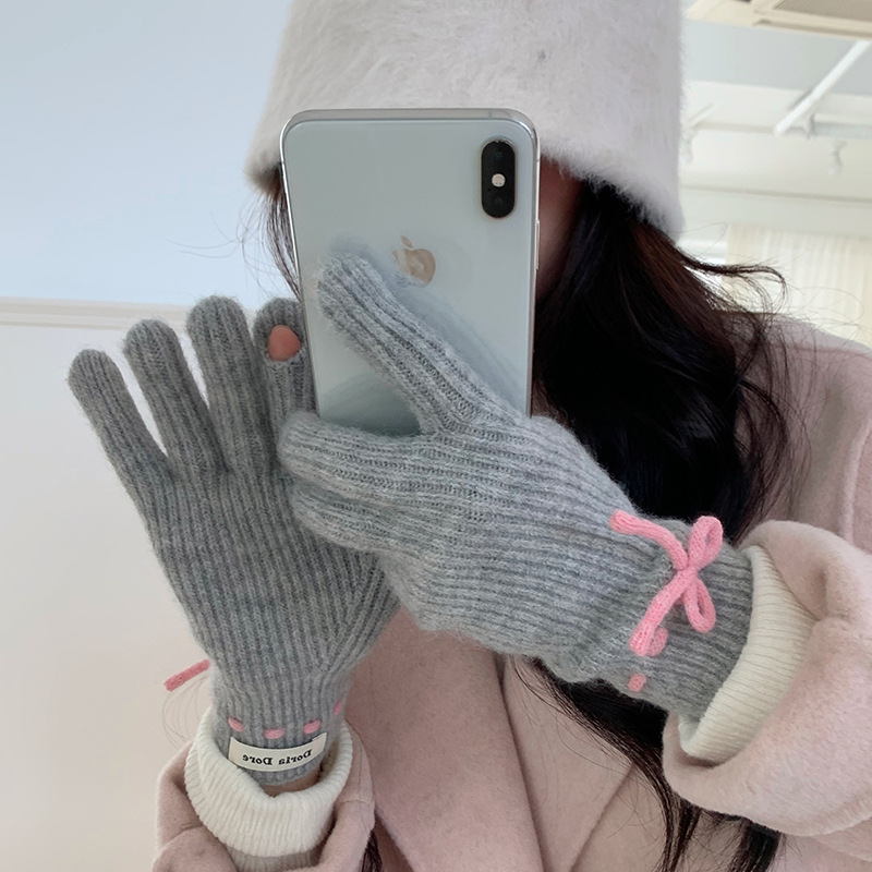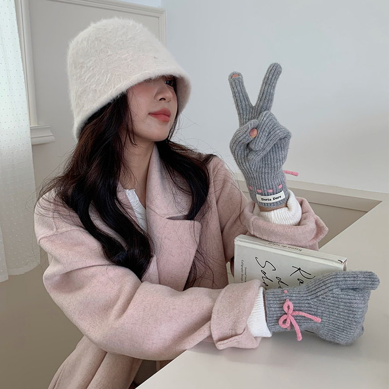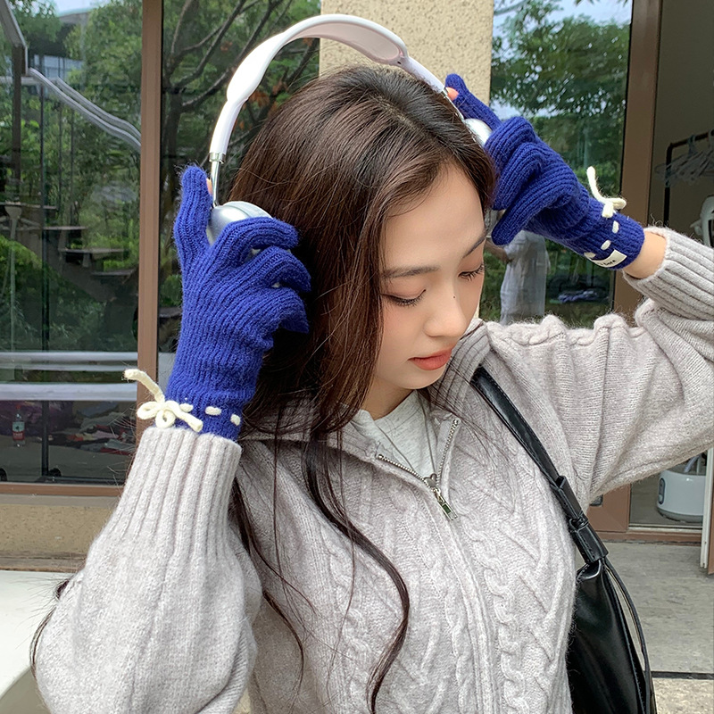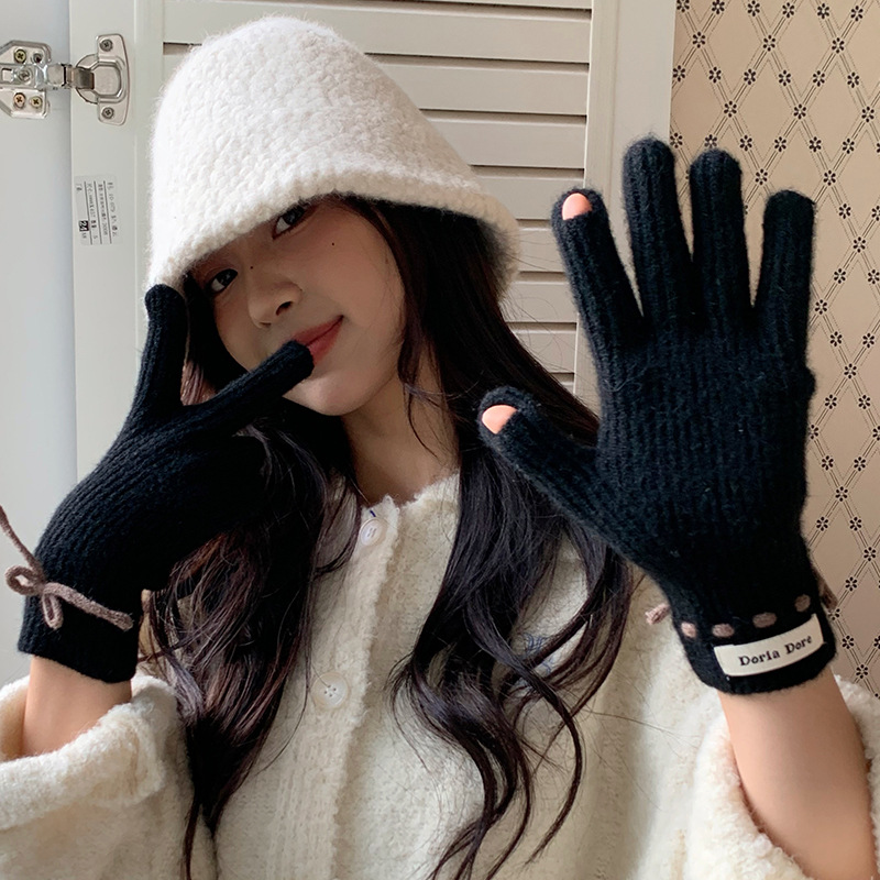 단색 모든 매치 패션 따뜻하고 편안한 장갑 캐주얼 독특한 활 겨울 방한 니트 울 장갑