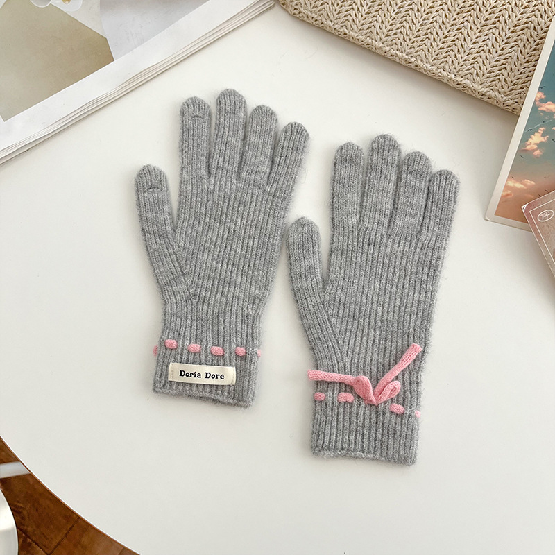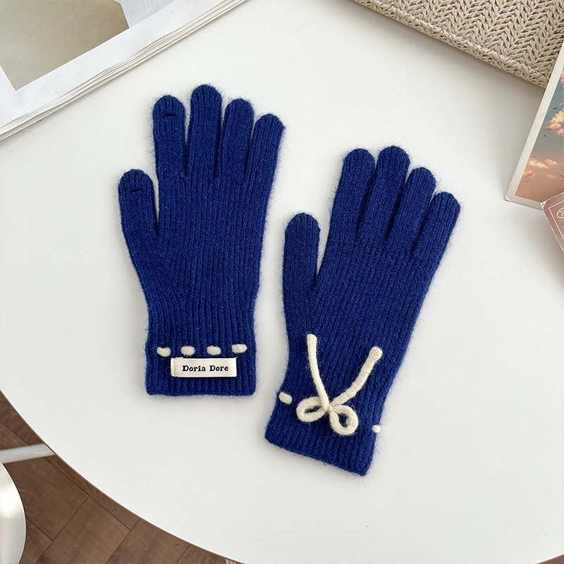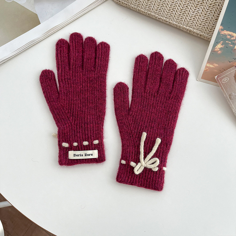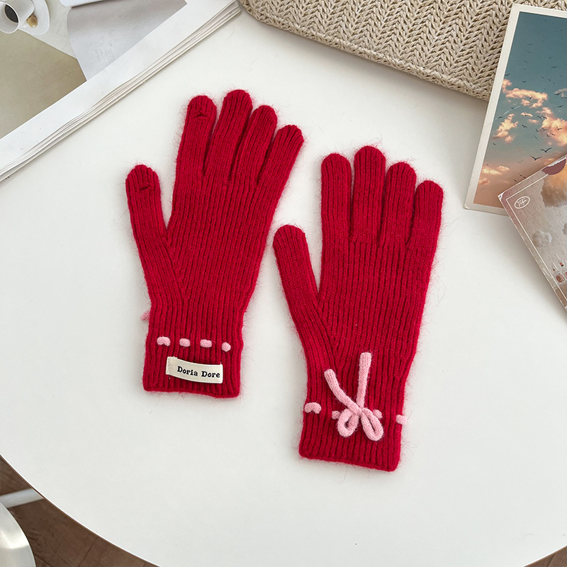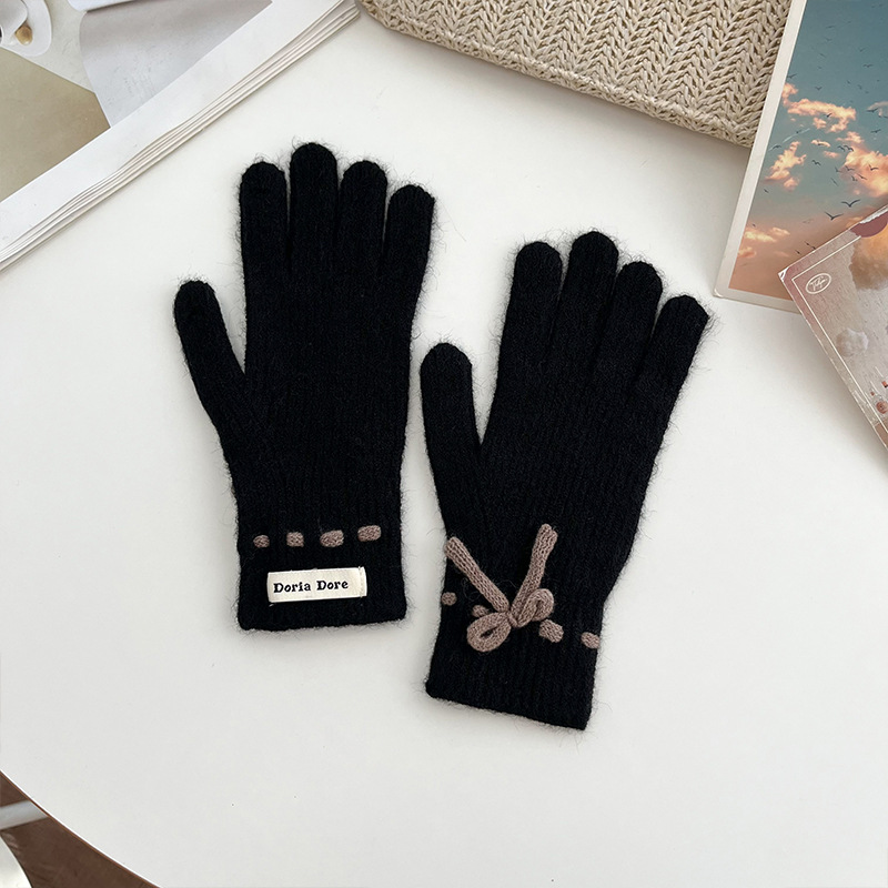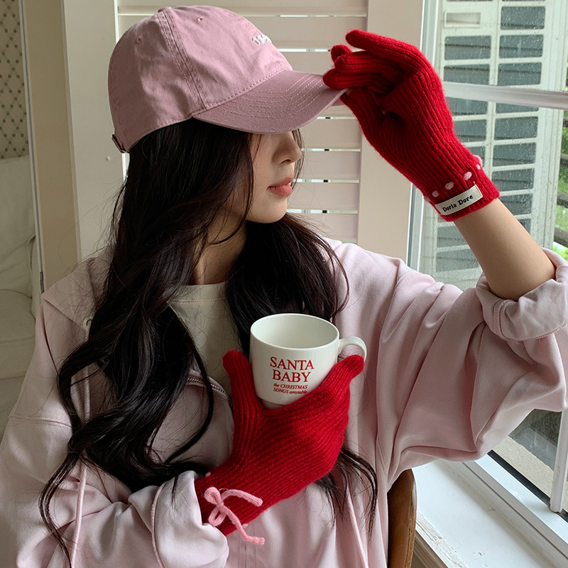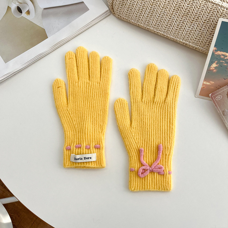 단색 모든 매치 패션 따뜻하고 편안한 장갑 캐주얼 독특한 활 겨울 방한 니트 울 장갑