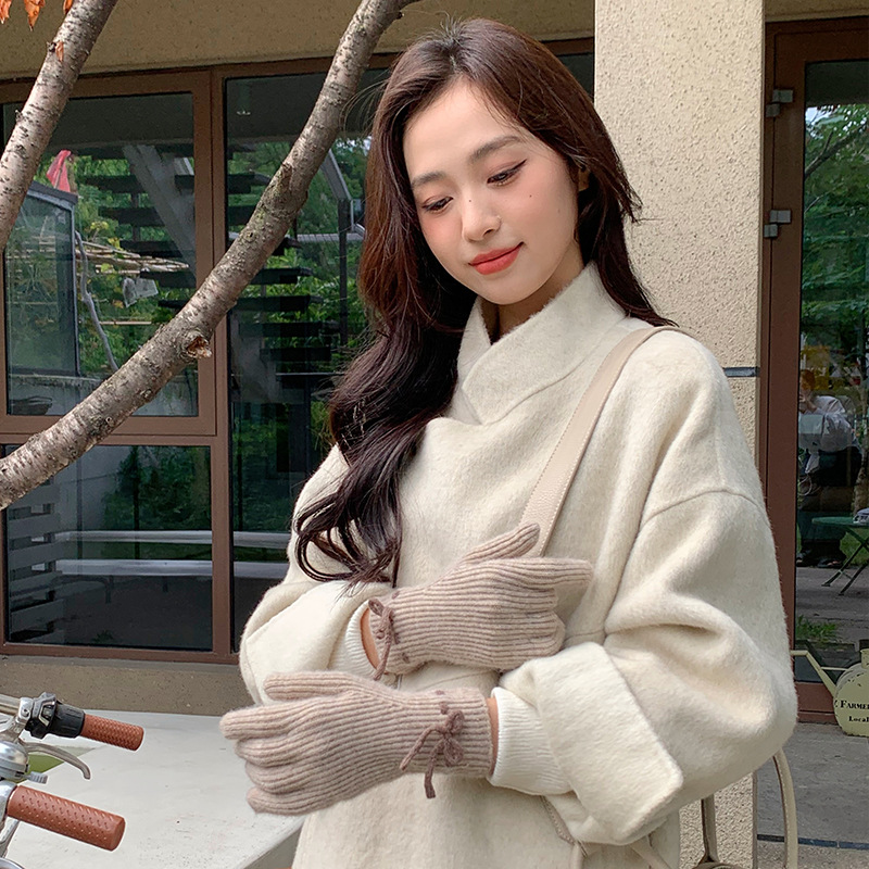 단색 모든 매치 패션 따뜻하고 편안한 장갑 캐주얼 독특한 활 겨울 방한 니트 울 장갑스토어 가기