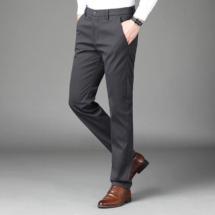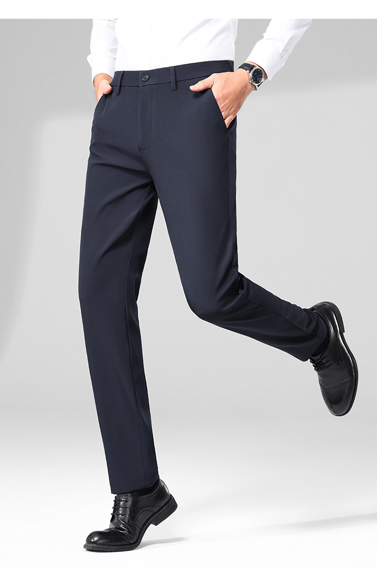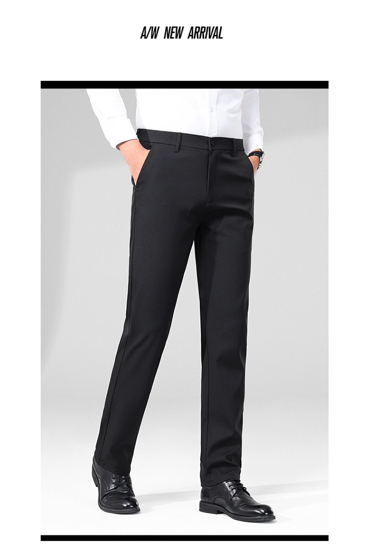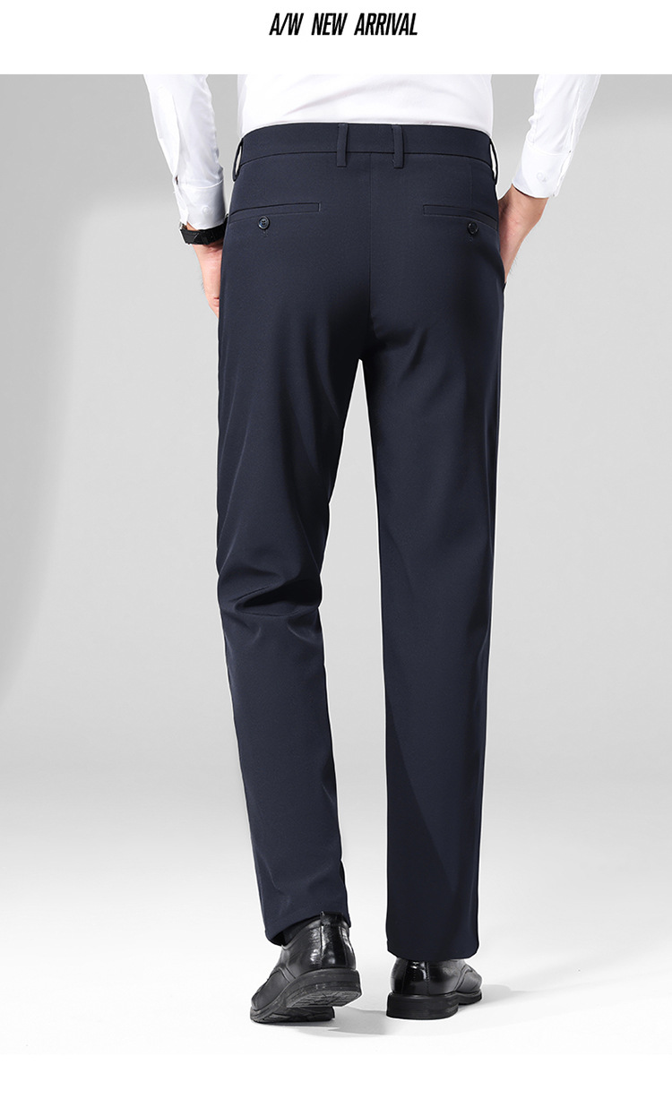 가을 2023 새로운 하이 스트레치 남성 캐주얼 바지 중년 남성 바지를 위한 미드 하이 웨이스트 스트레이트 비즈니스 캐주얼 바지