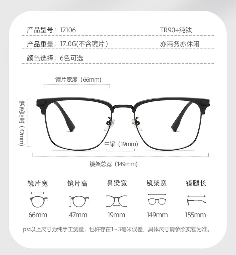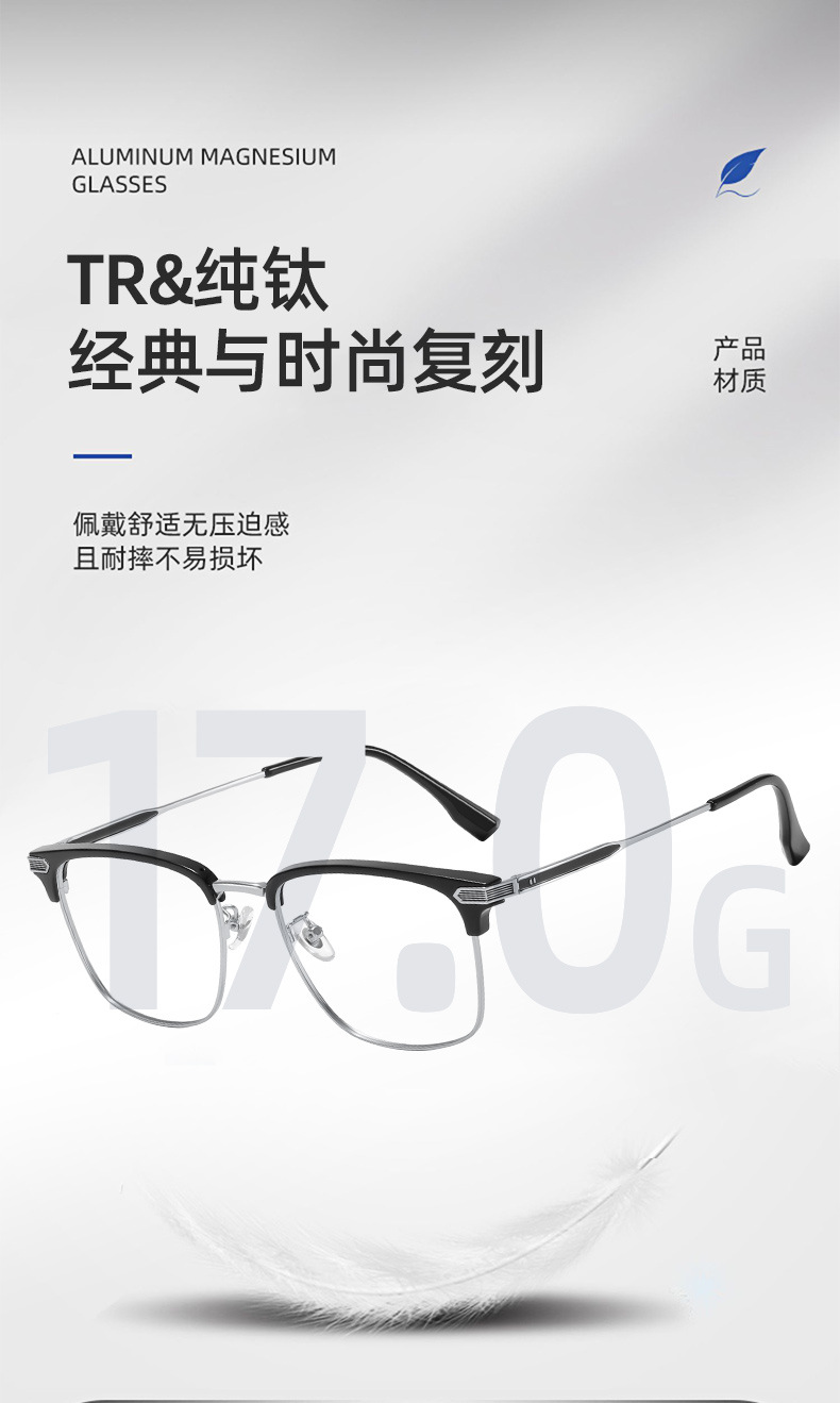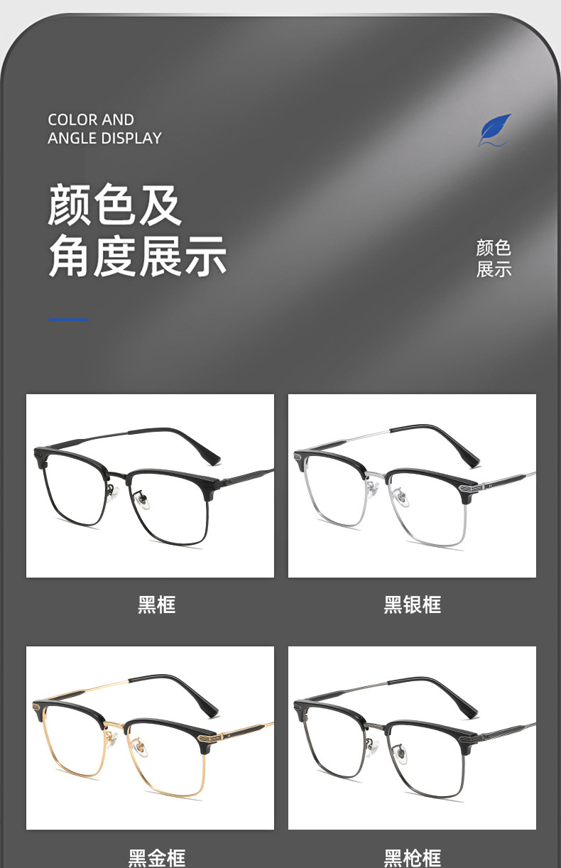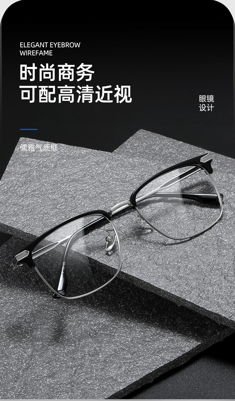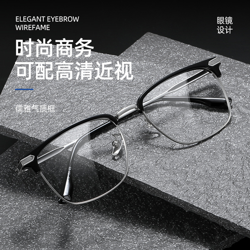 초경량 모양의 반테 안경 프레임 남성용 유행 비즈니스 근접 범위 안티 블루 라이트 일반 안경 17106