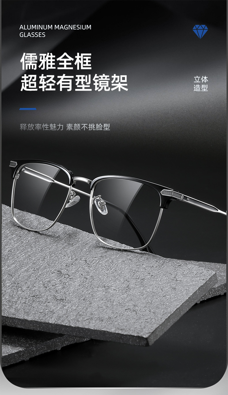 초경량 모양의 반테 안경 프레임 남성용 유행 비즈니스 근접 범위 안티 블루 라이트 일반 안경 17106스토어 가기