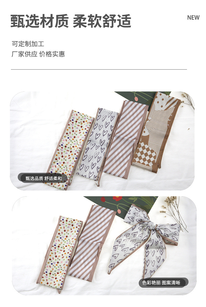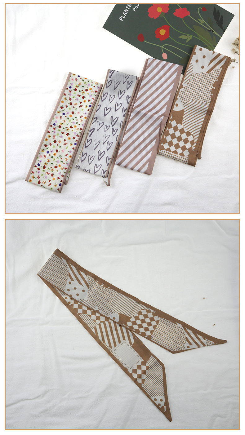 간단한 기질 카키 실크 스카프 헤어 벨트 양면 모든 매치 리본 봄과 여름 실크 전문 장식 스카프스토어 가기
