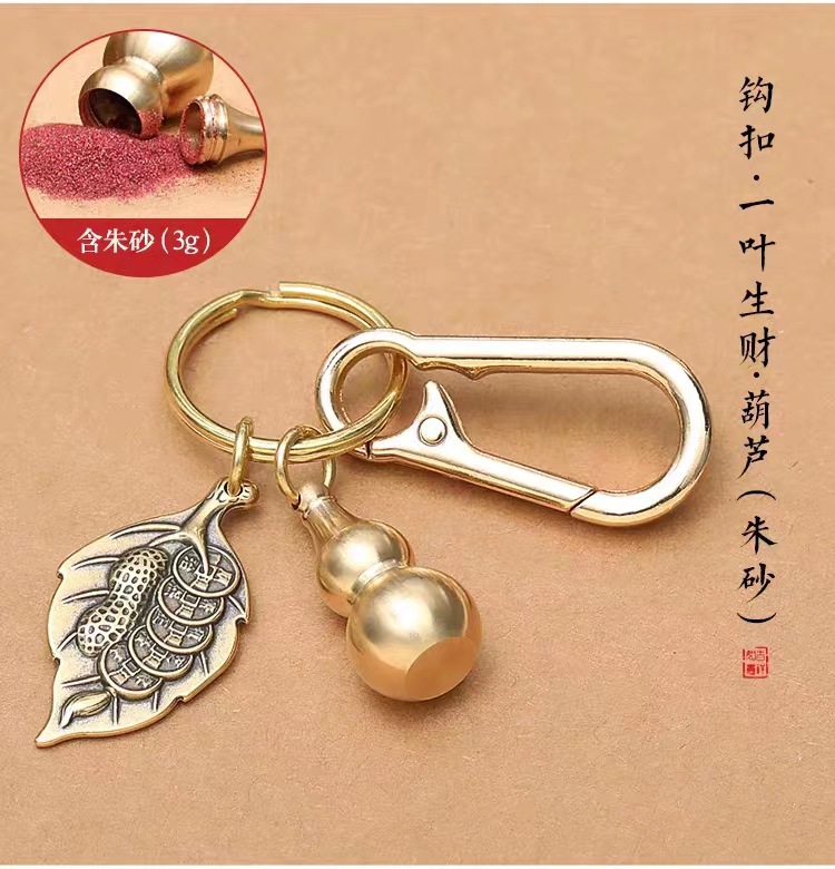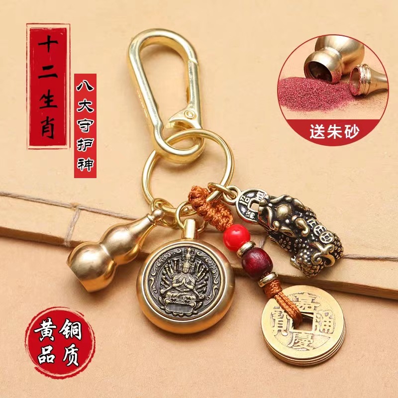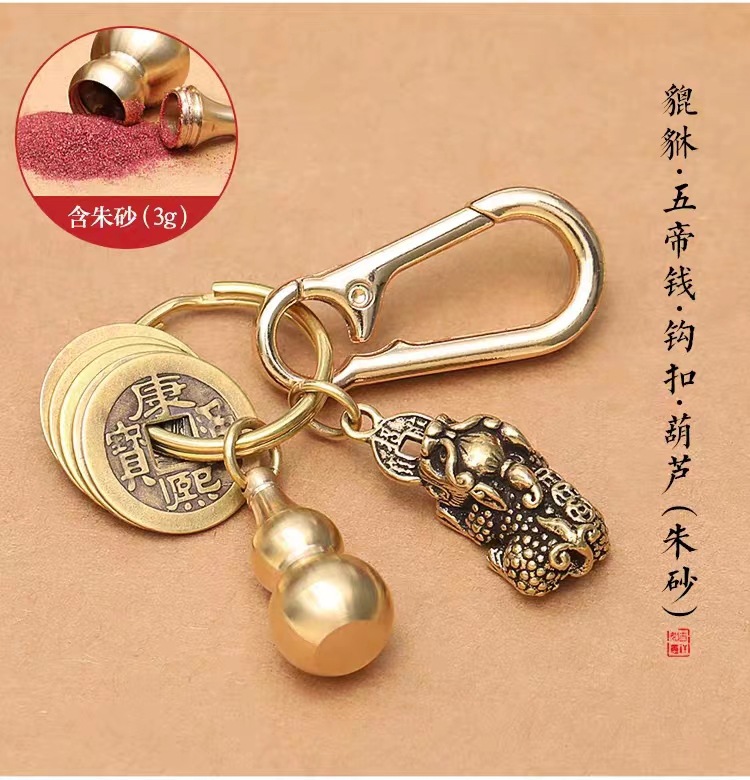 순수 황동 Pixiu 조롱박 조디악 키 체인 자동차 펜던트 Cinnabar 다섯 황제 돈 남성과 여성의 운송 펜던트스토어 가기