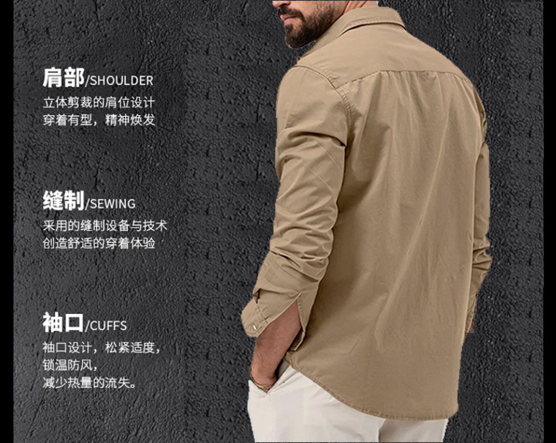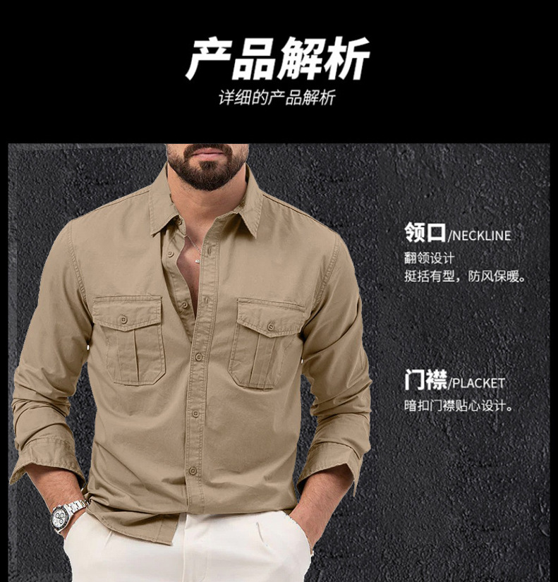 2025 새로운 남성 셔츠 국경 대외 무역 AliExpress 독립 스테이션 유럽과 미국의 남성용 멀티 포켓 캐주얼 긴팔 탑
