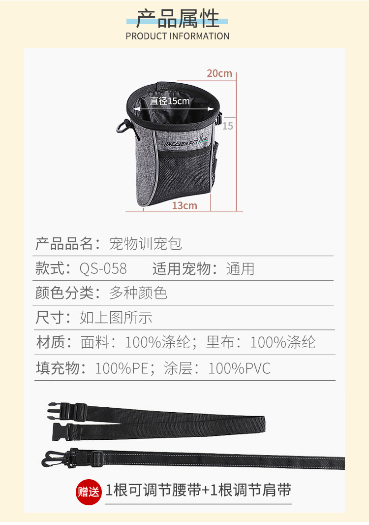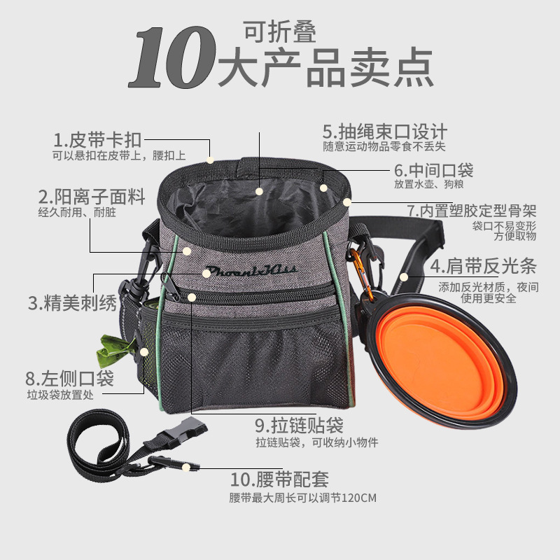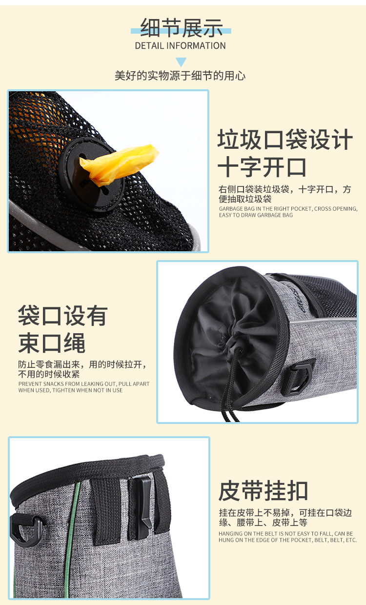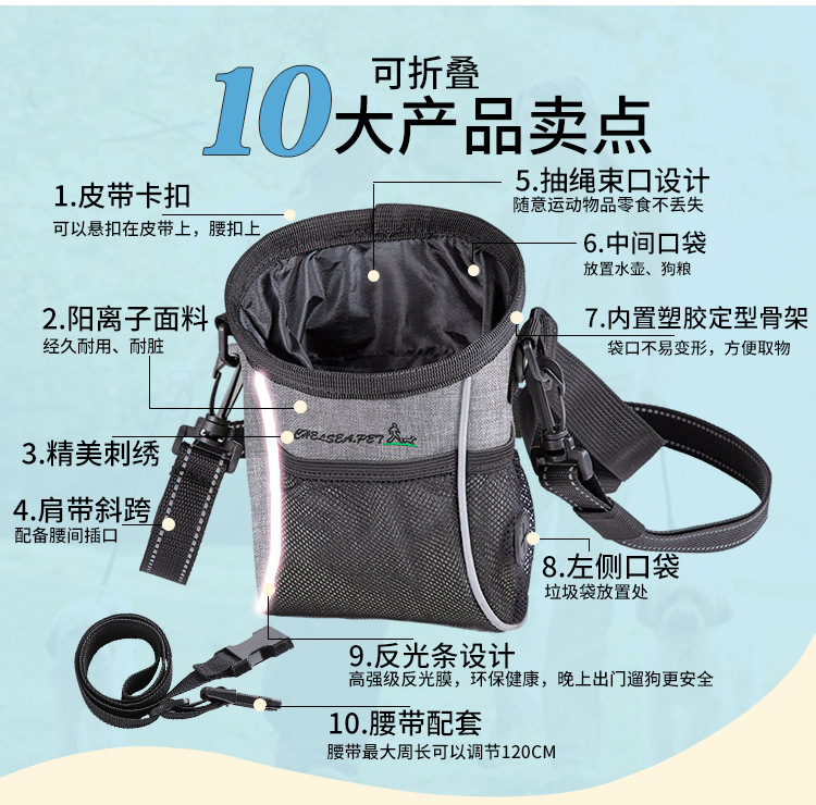 크로스 보더 재고 아웃 휴대용 애완 동물 훈련 허리 가방 다기능 drawstring 애완 동물 간식 가방 하나의 어깨 개 음식 가방 수 있습니다