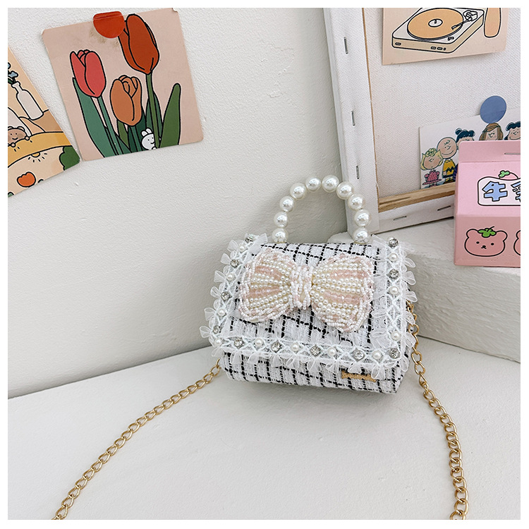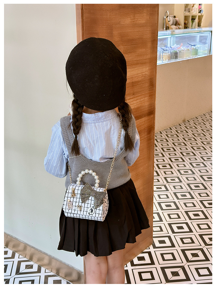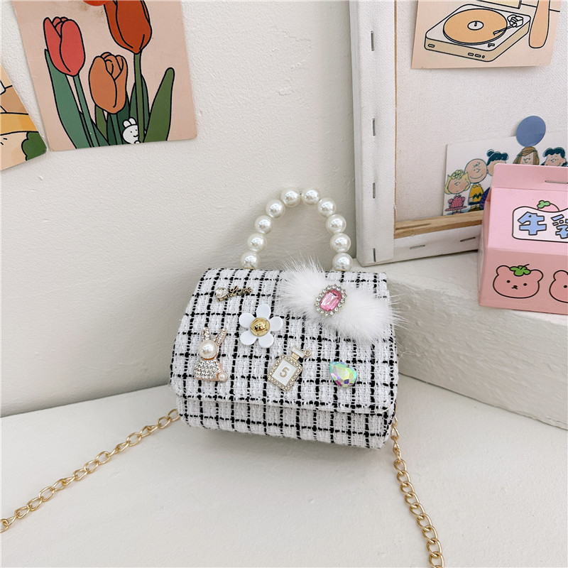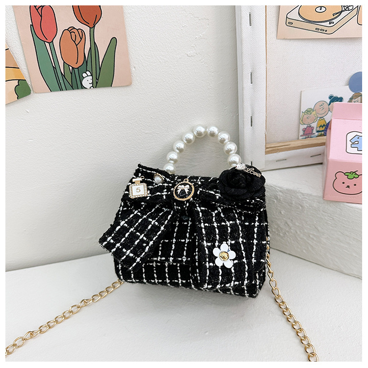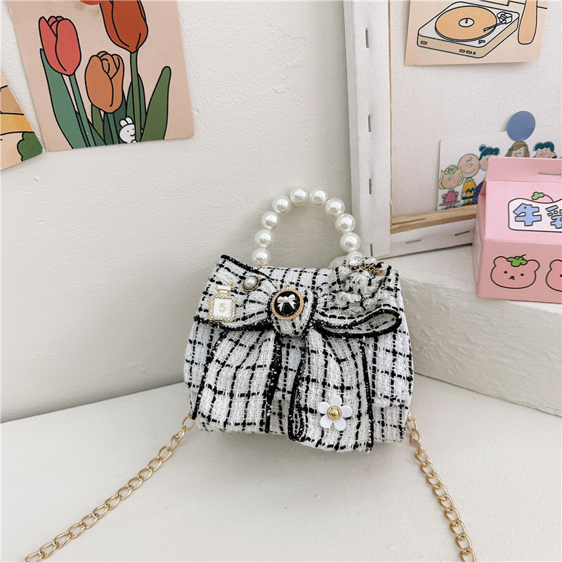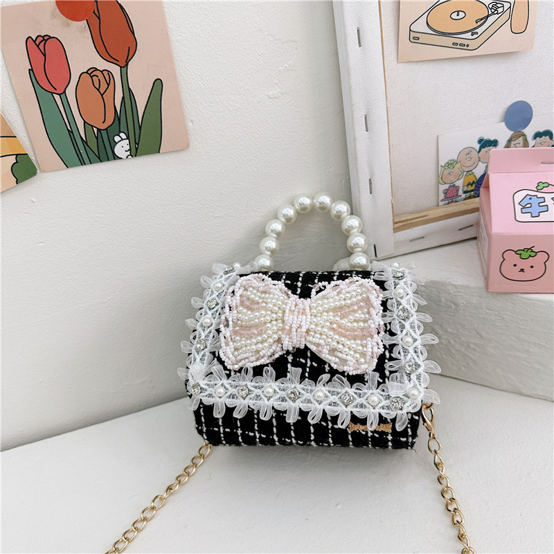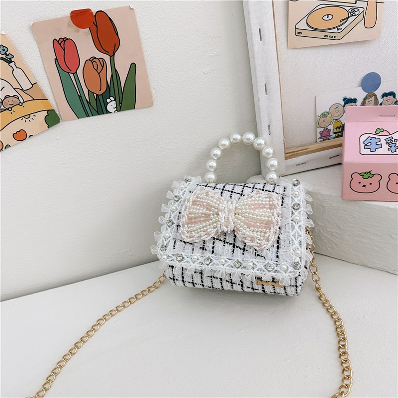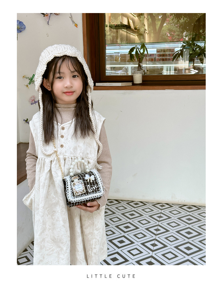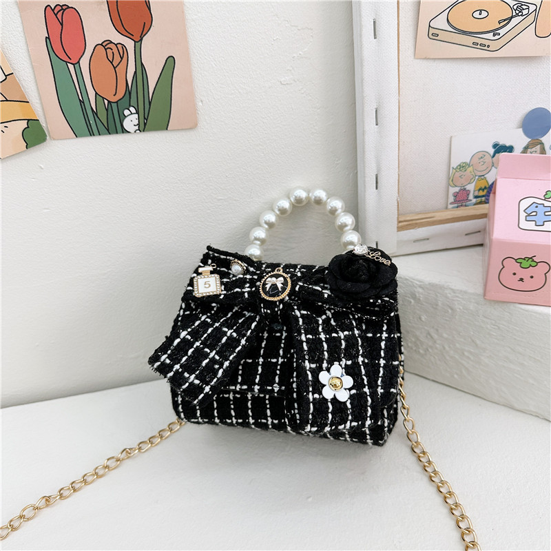 2025 Xiaoxiangfeng 한국어 버전 부티크 동백 진주 휴대용 크로스 바디 백 소녀 공주 동전 지갑 어린이 가방스토어 가기