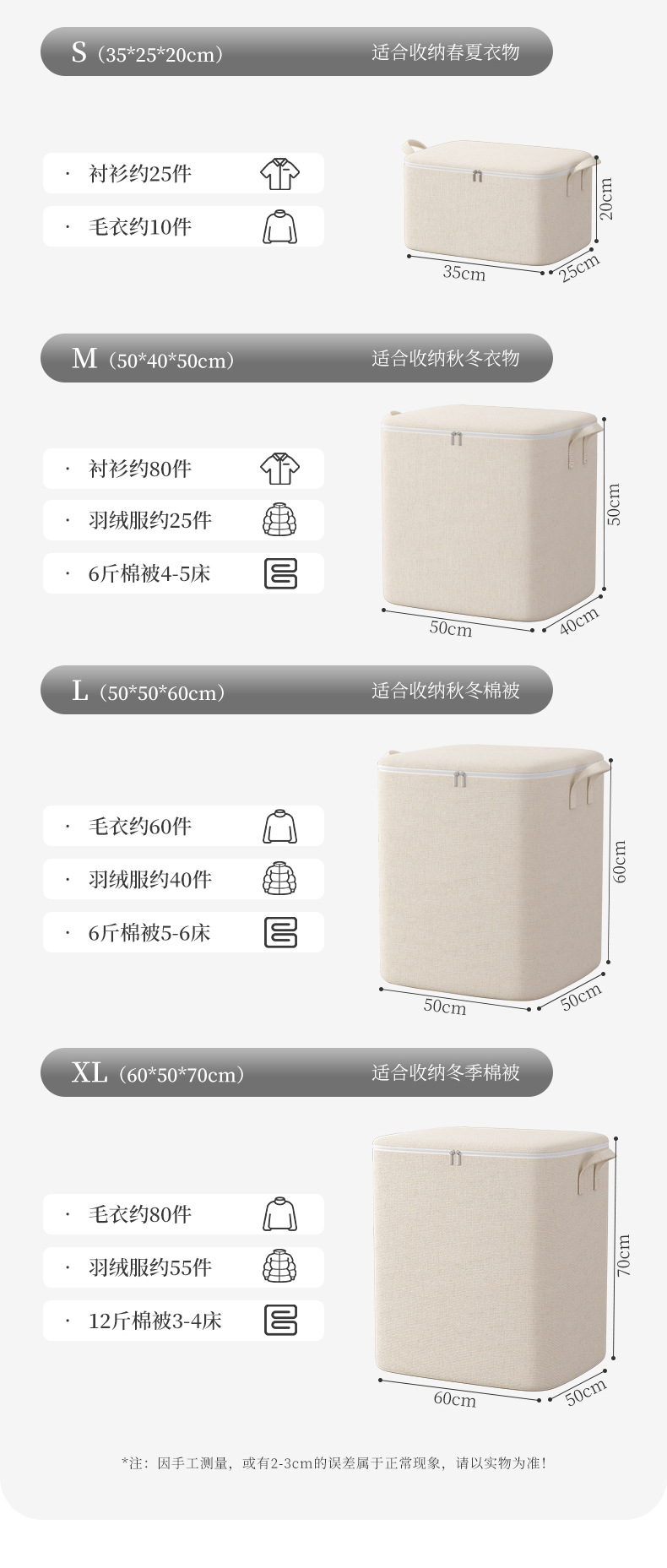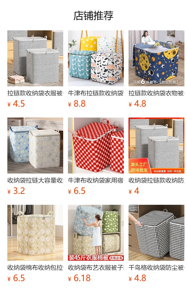 보관 가방 지퍼 면 및 린넨 대용량 홈 수납 가방 옷 이불 침실 마감 상자 이동 가방