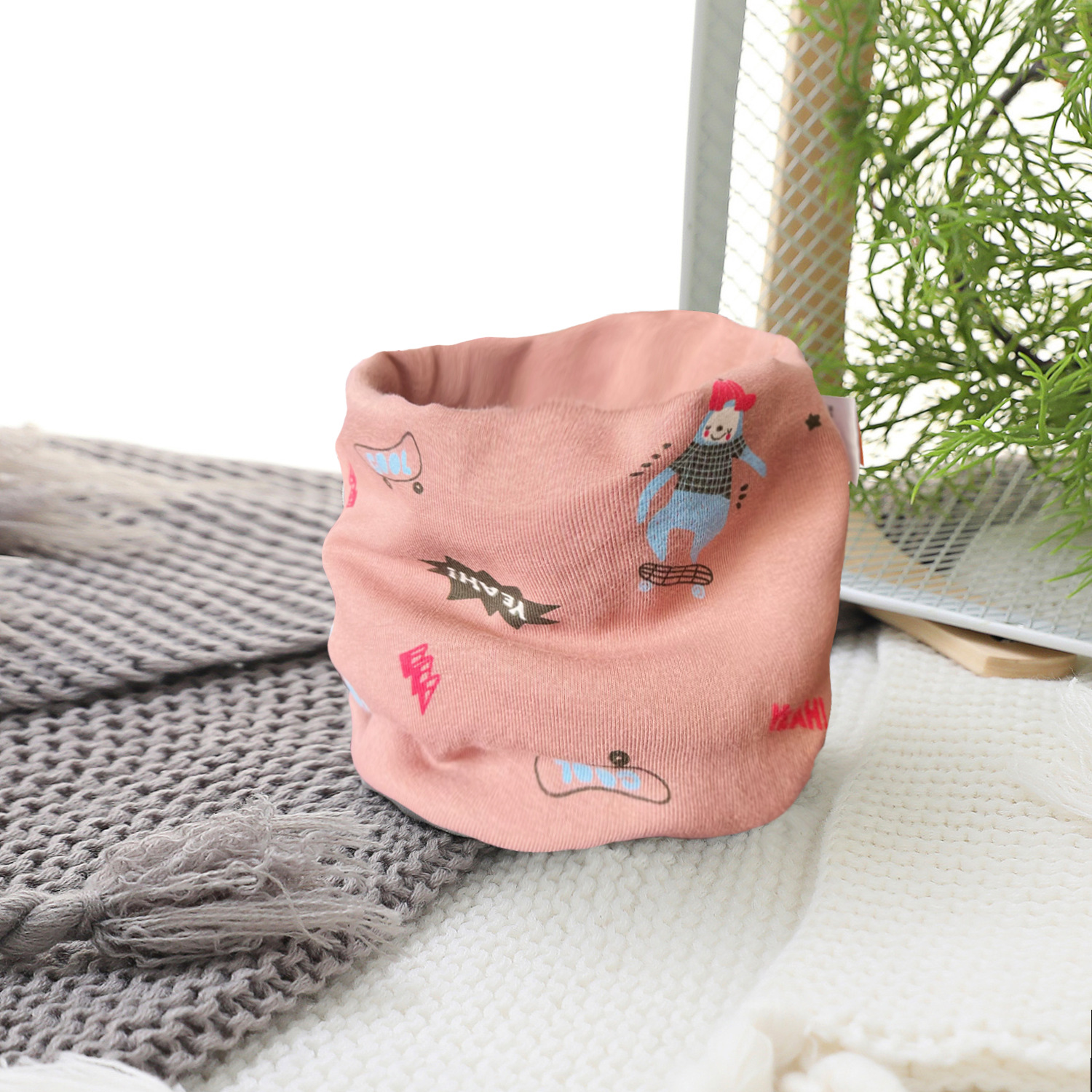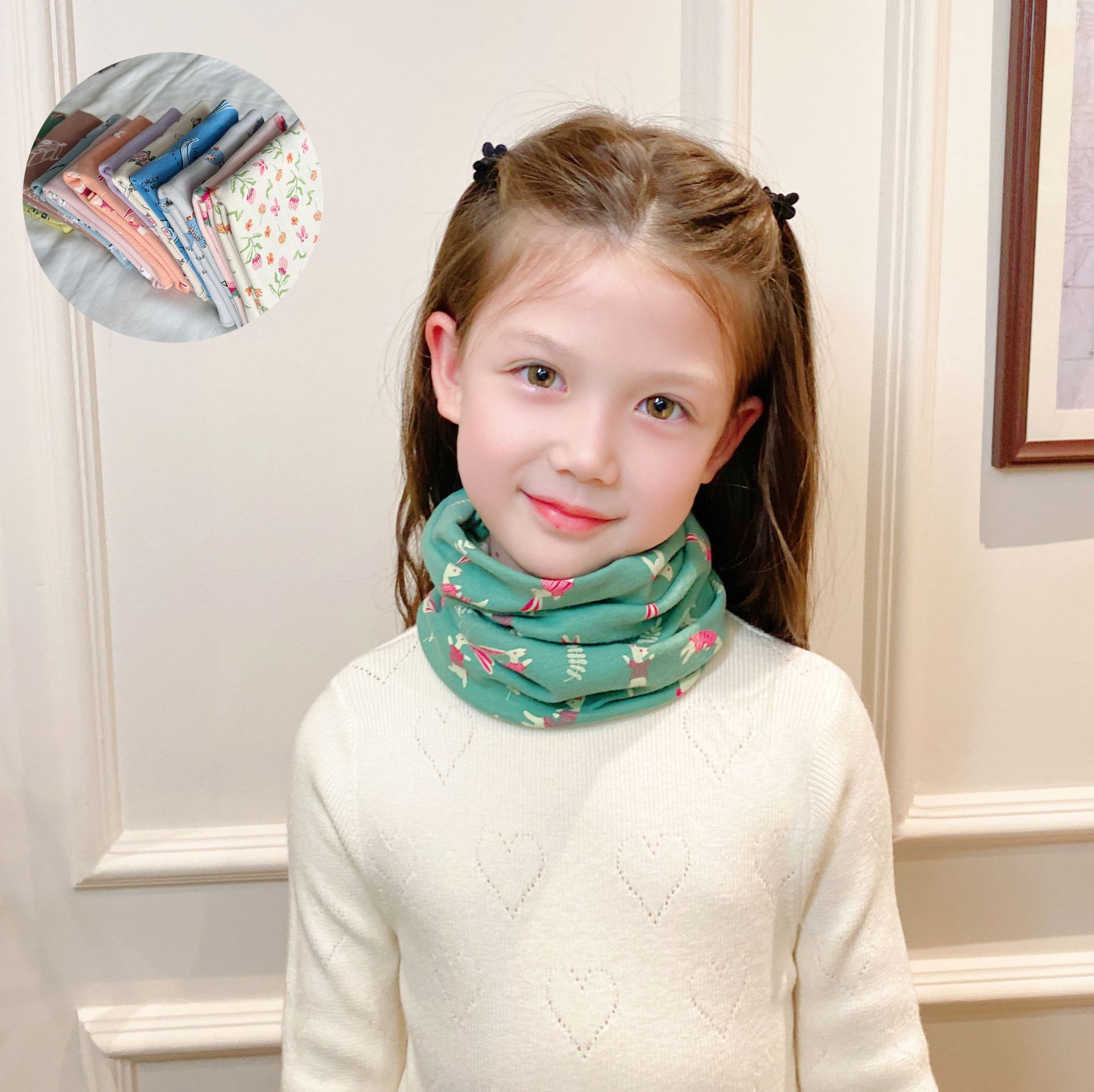 新款儿童围巾女童可爱卡通保暖印花针织男童婴儿宝宝围脖
