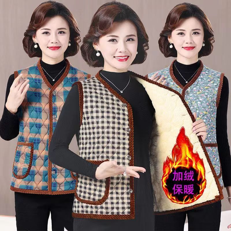 공장 직접 겨울 새로운 중년 여성 의류 기모 두꺼운 조끼 어머니 조끼 할머니 양복 조끼