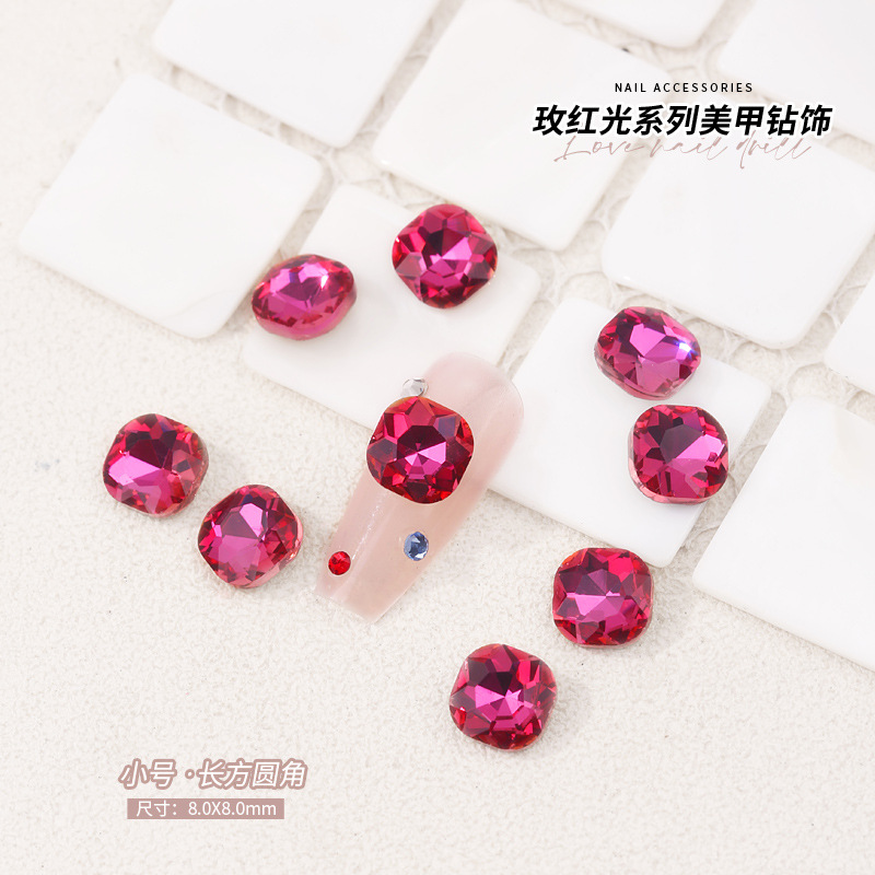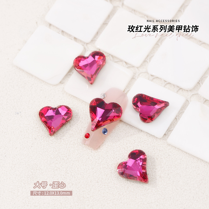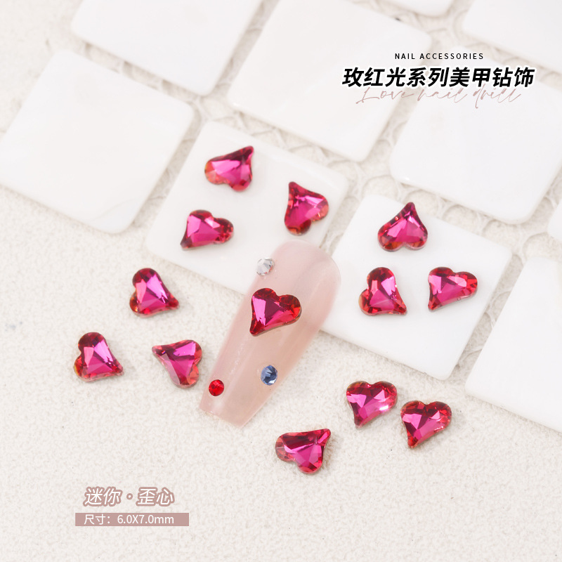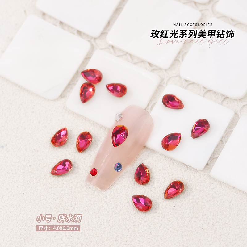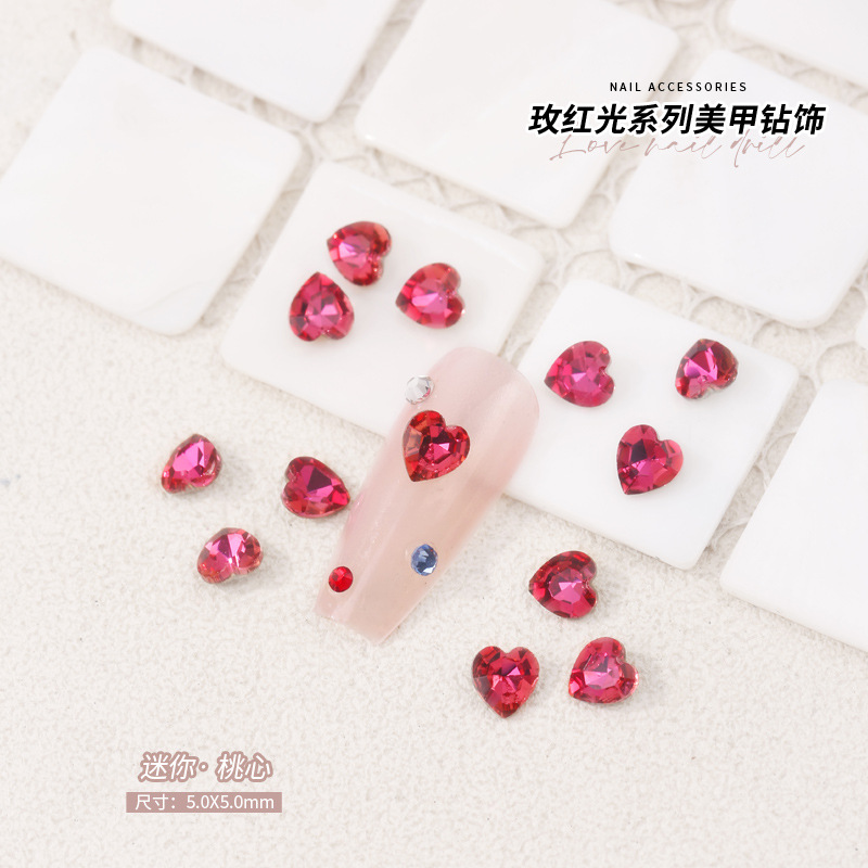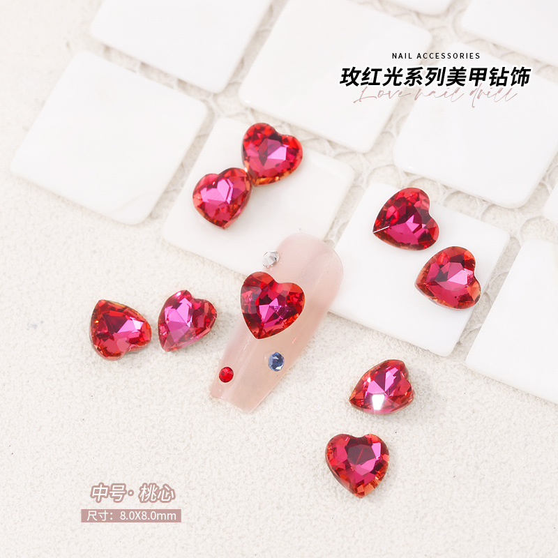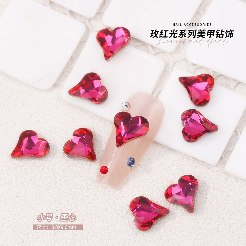 로즈 레드 팁 모양의 다이아몬드 네일 아트 다이아몬드 장식 비둘기 계란 지방 사각형 사랑 나비 락슈가 k9 네일 아트 쥬얼리 도매스토어 가기