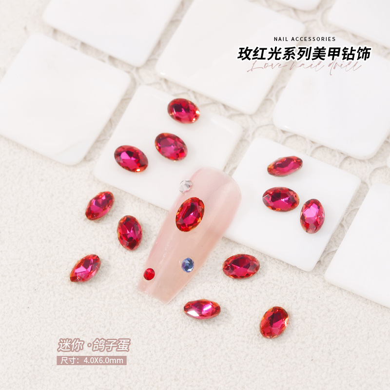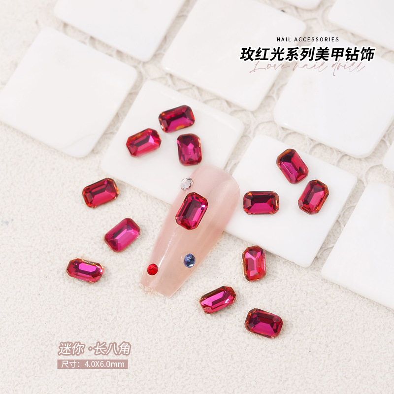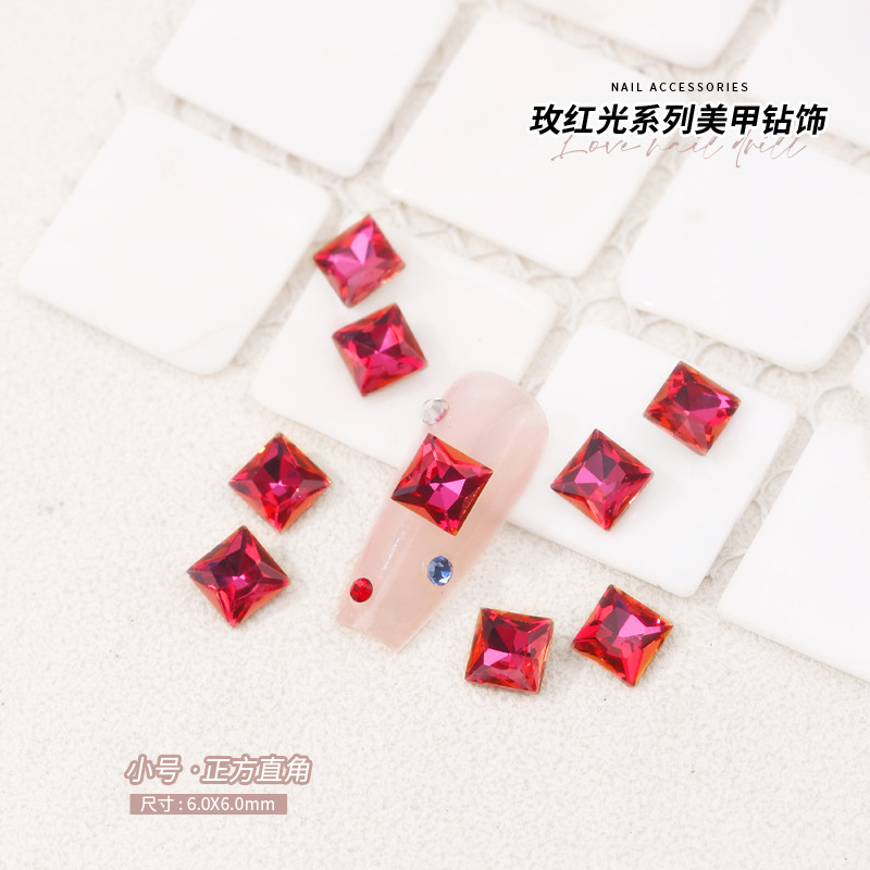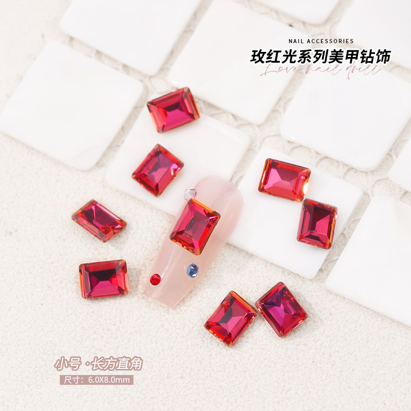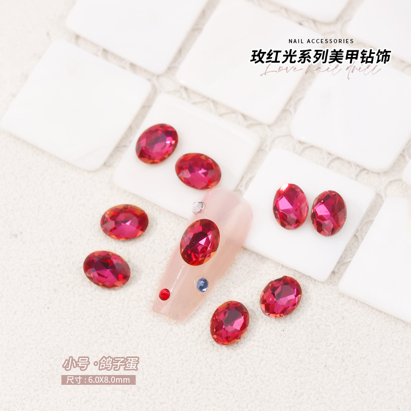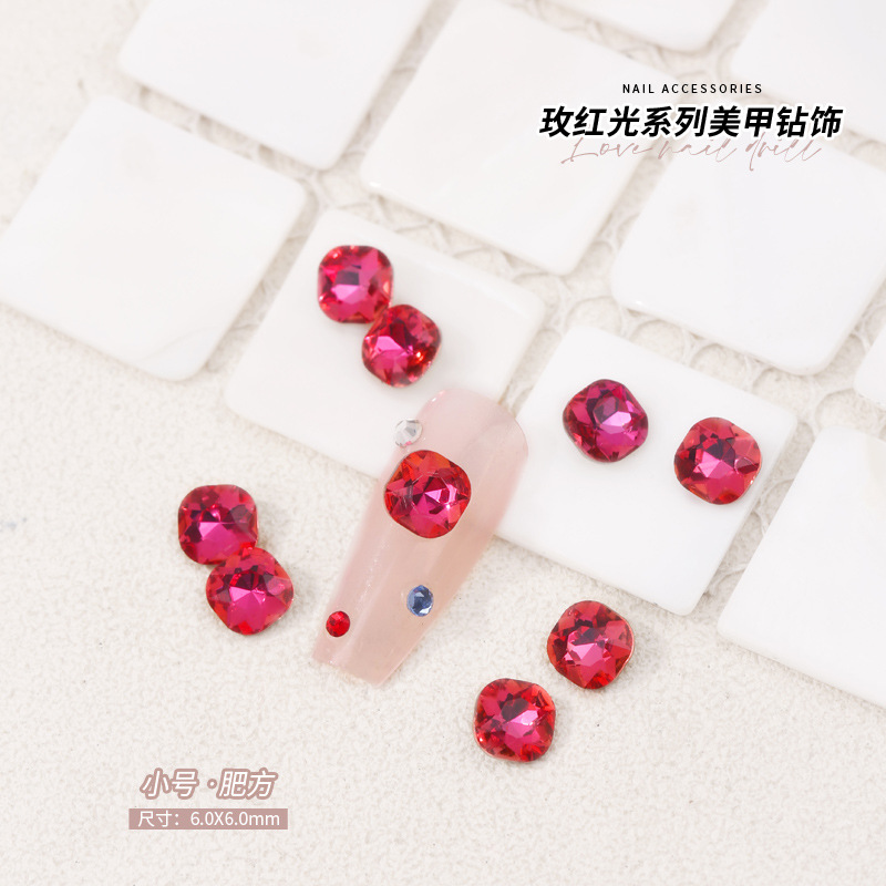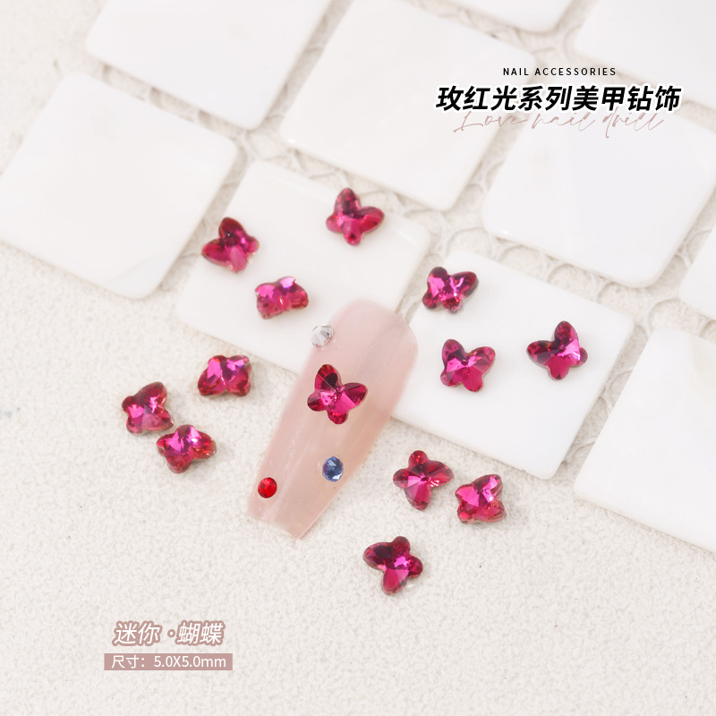 로즈 레드 팁 모양의 다이아몬드 네일 아트 다이아몬드 장식 비둘기 계란 지방 사각형 사랑 나비 락슈가 k9 네일 아트 쥬얼리 도매스토어 가기