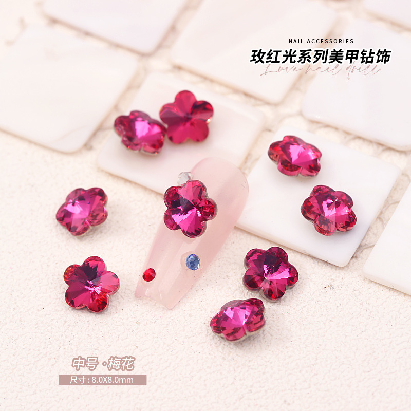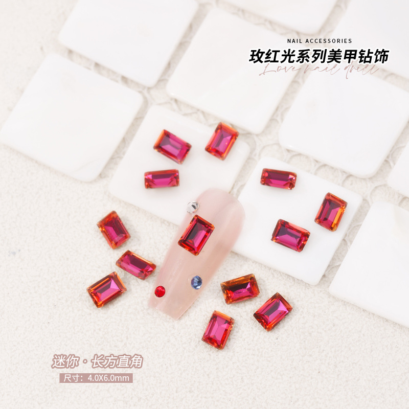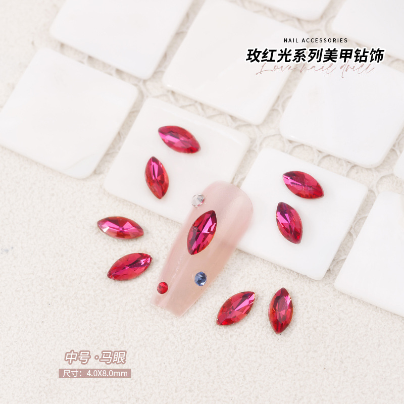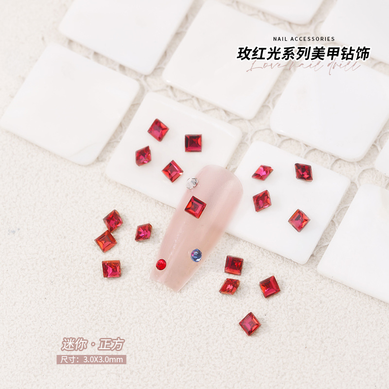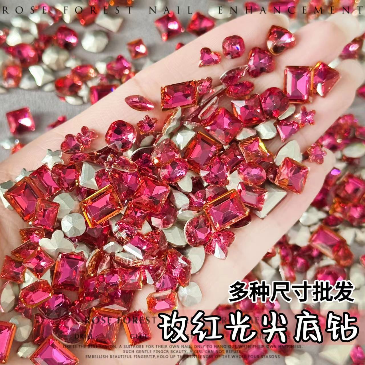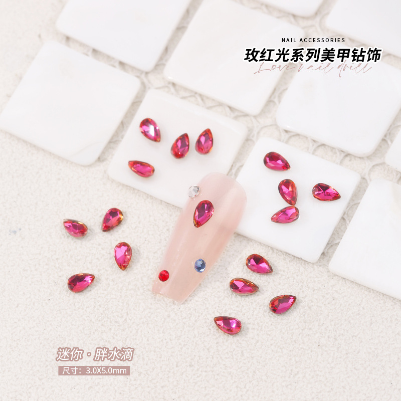 로즈 레드 팁 모양의 다이아몬드 네일 아트 다이아몬드 장식 비둘기 계란 지방 사각형 사랑 나비 락슈가 k9 네일 아트 쥬얼리 도매스토어 가기