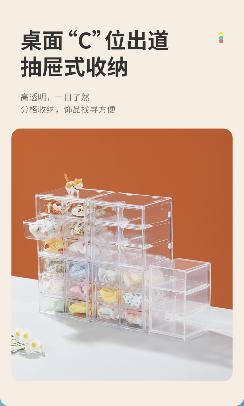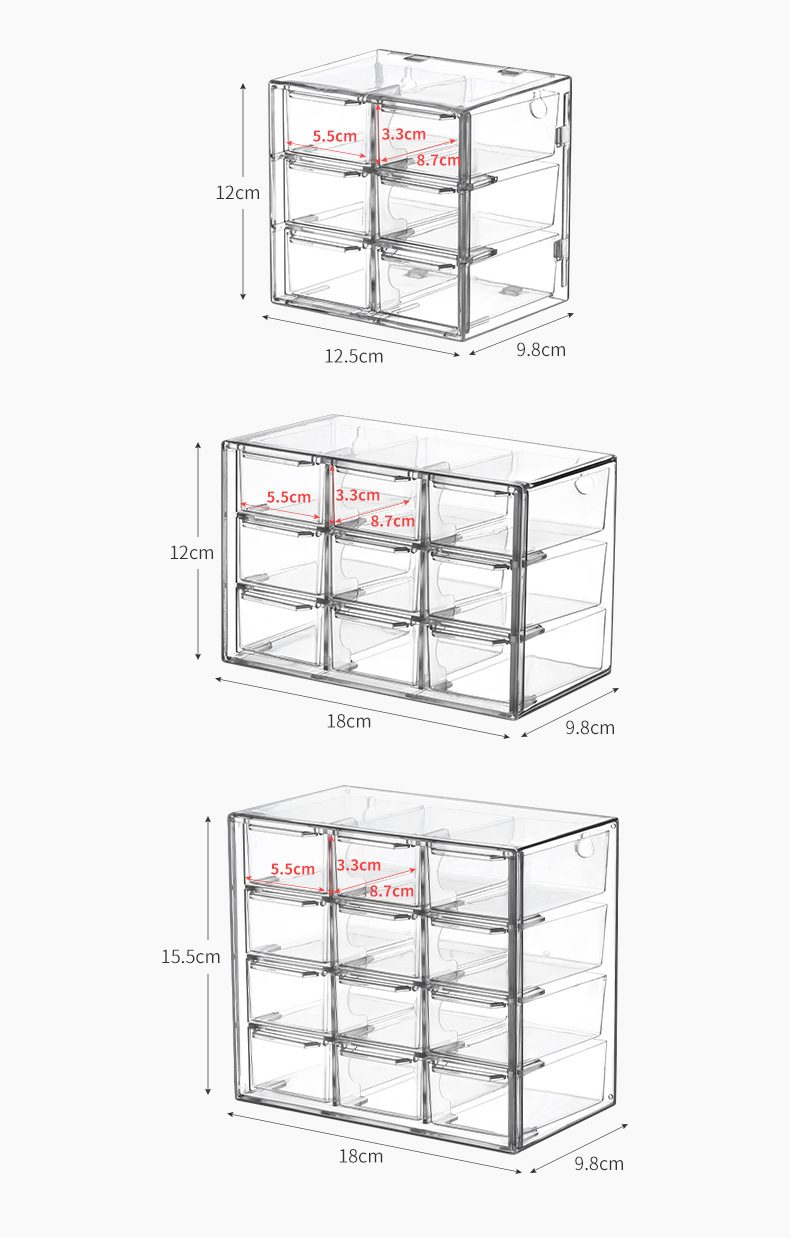 투명한 9칸 수납함, 데스크탑 서랍형 정리함, 학생 책상, 보석함, 여성용 테이블 소형 수납 선반스토어 가기