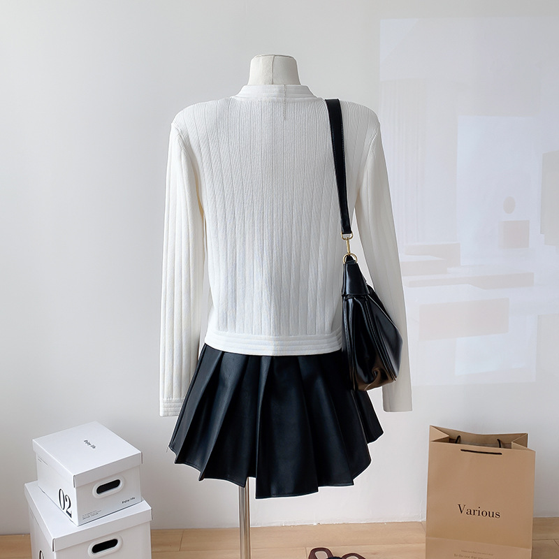 바자26 가을 겨울 신상품 작은 향수풍 메탈 버클 니트 가디건, 명사 스타일의 더블 포켓 디자인 여성용 상의스토어 가기