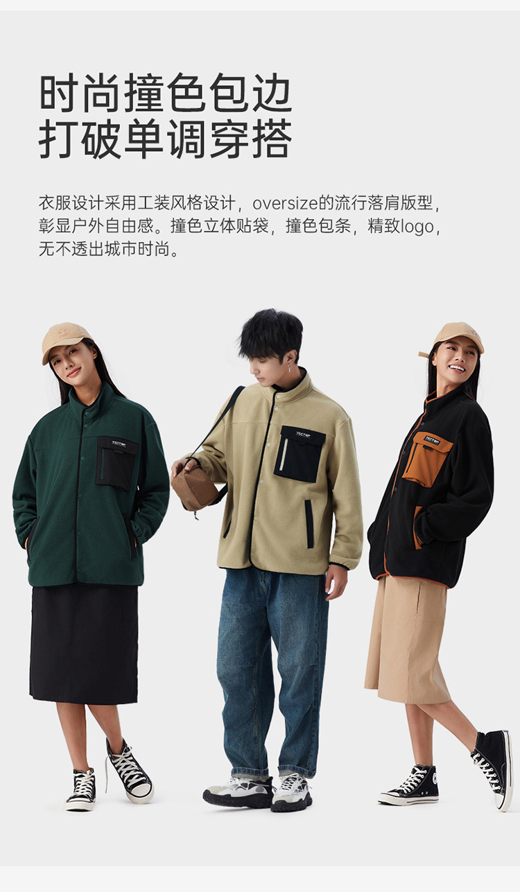 2023 가을과 겨울 새로운 야외 커플 양털 옷 여성용 멀티 백 컬러 블록 양털 재킷 남성 양털 재킷