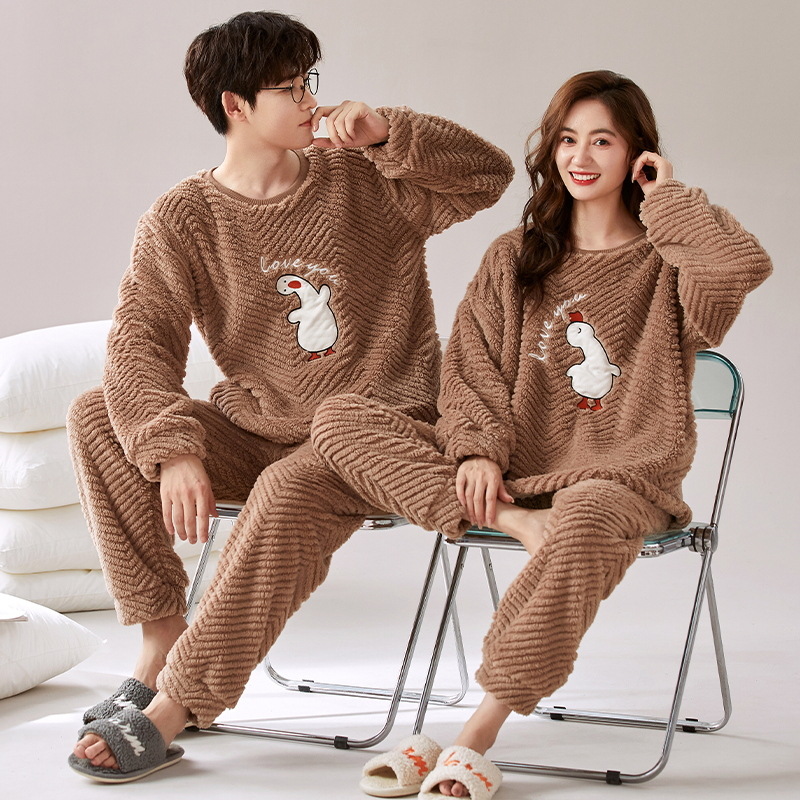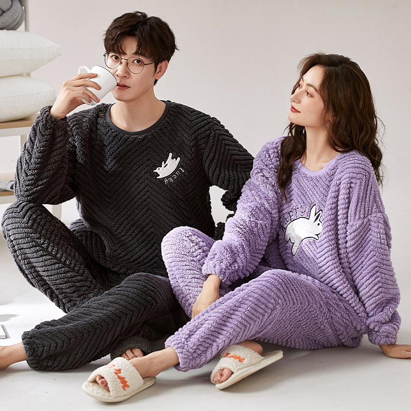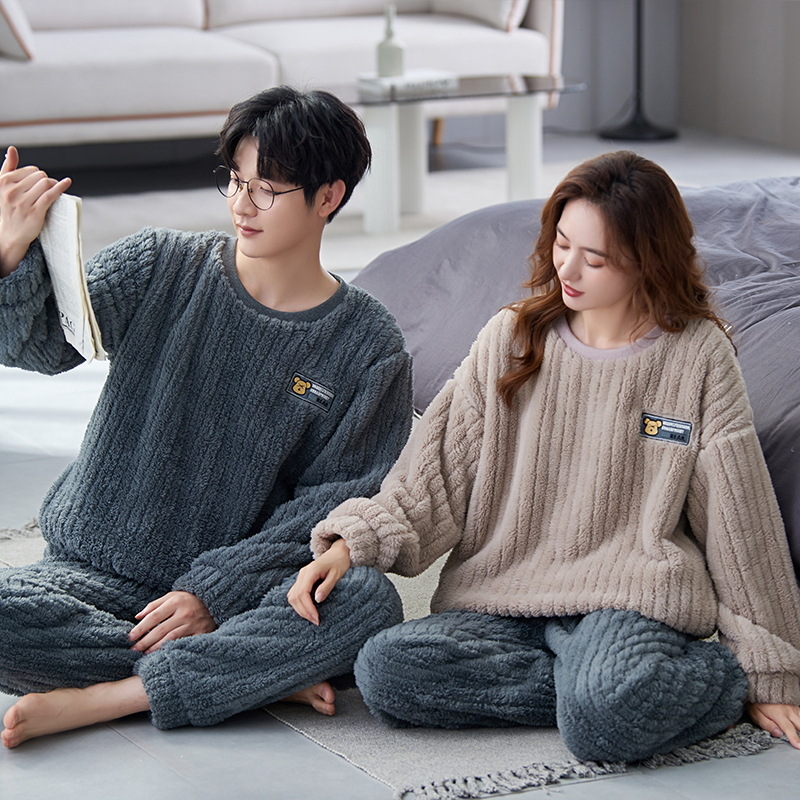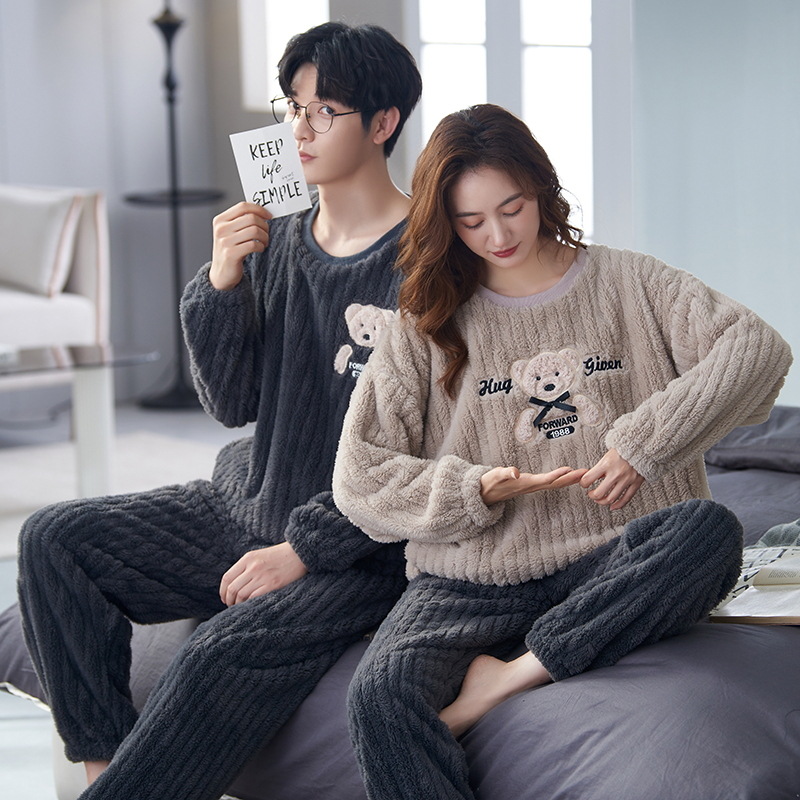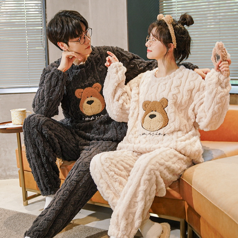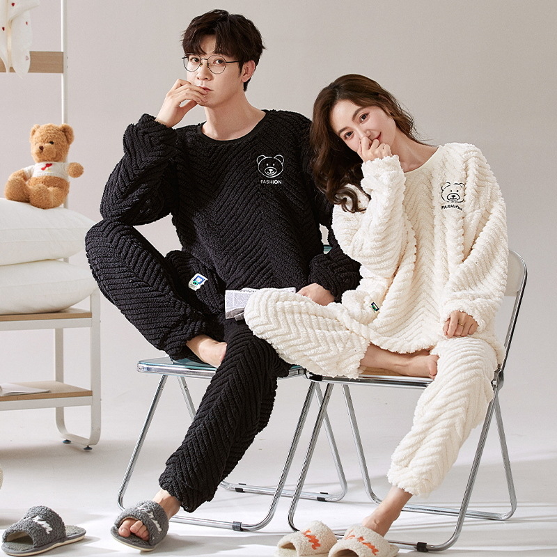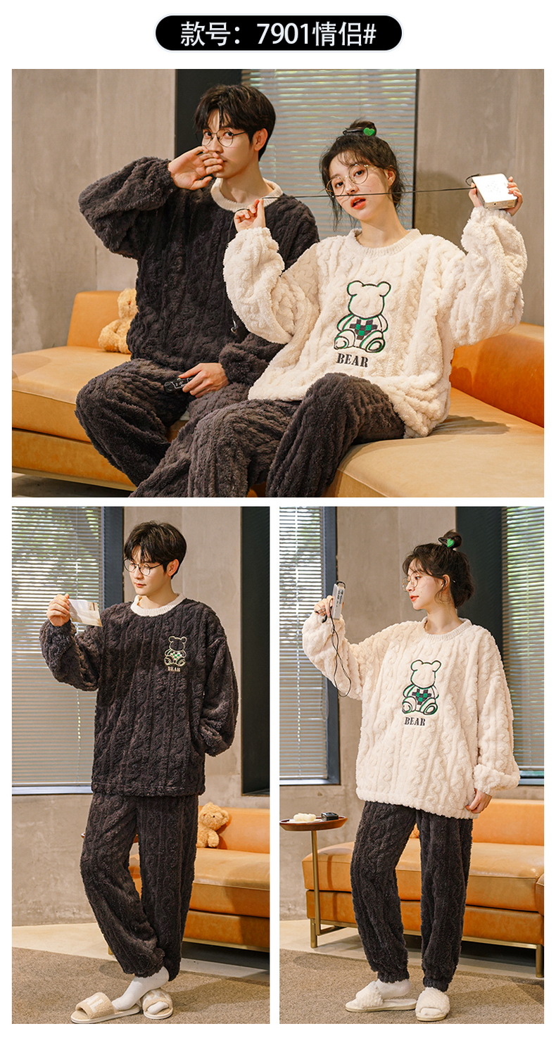 만화 플란넬 커플 잠옷 여성 플러스 벨벳 두꺼운 양복 남성 느슨한 대형 따뜻한 산호 양털 Homewear