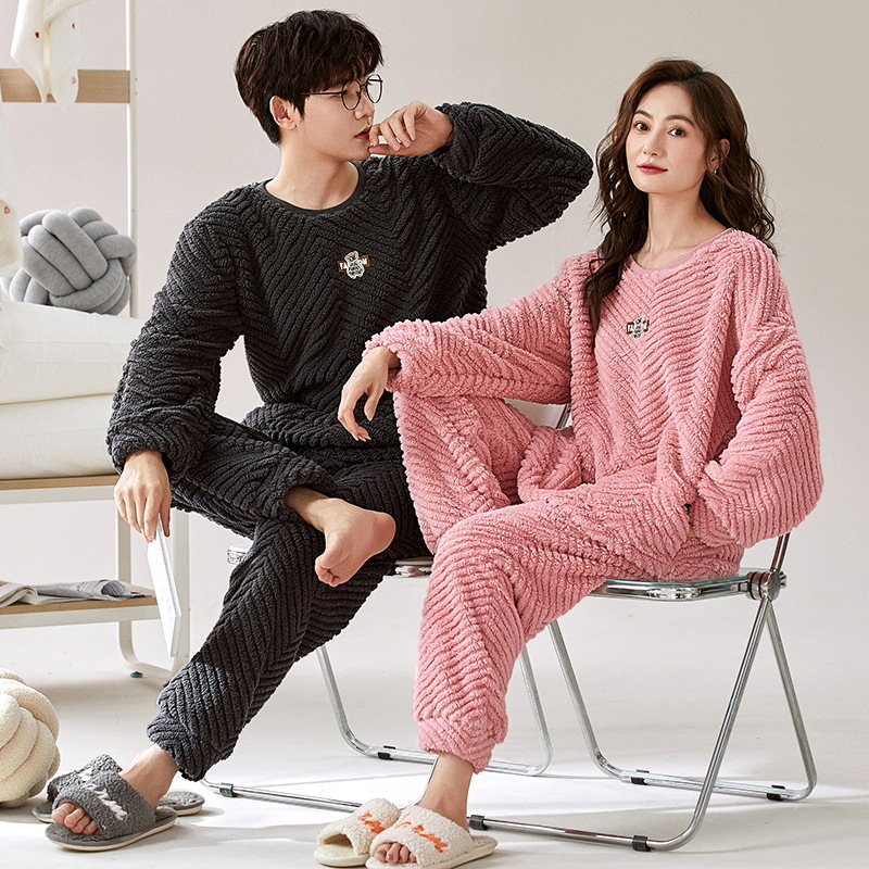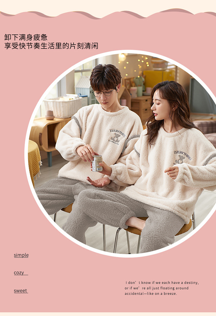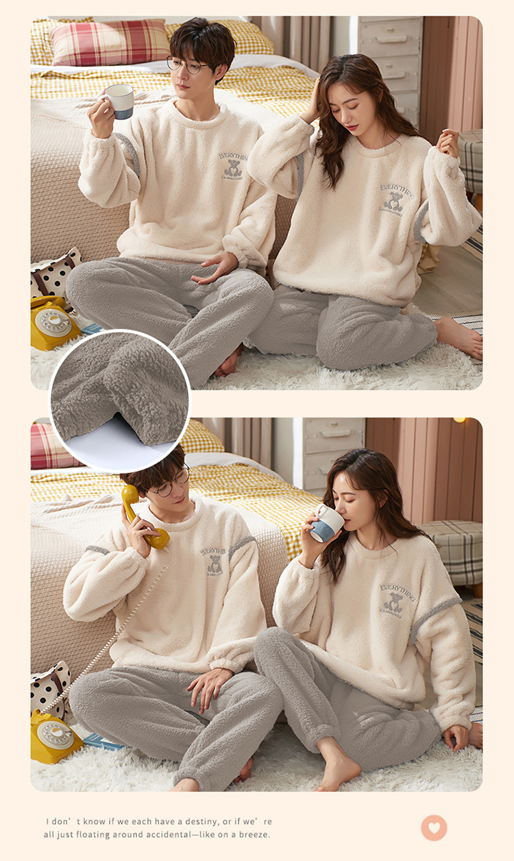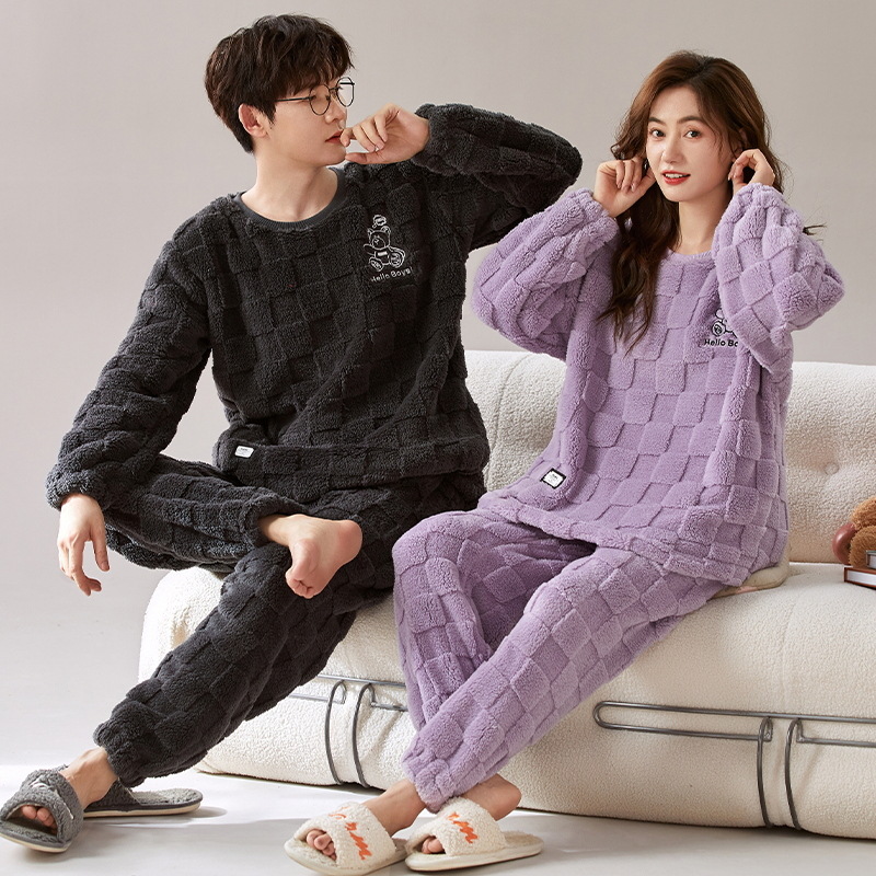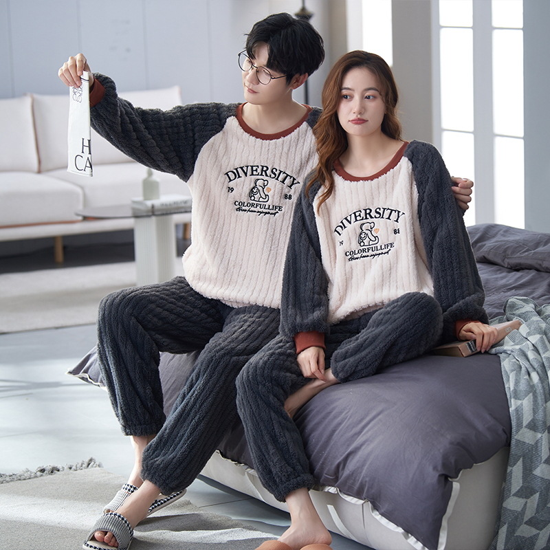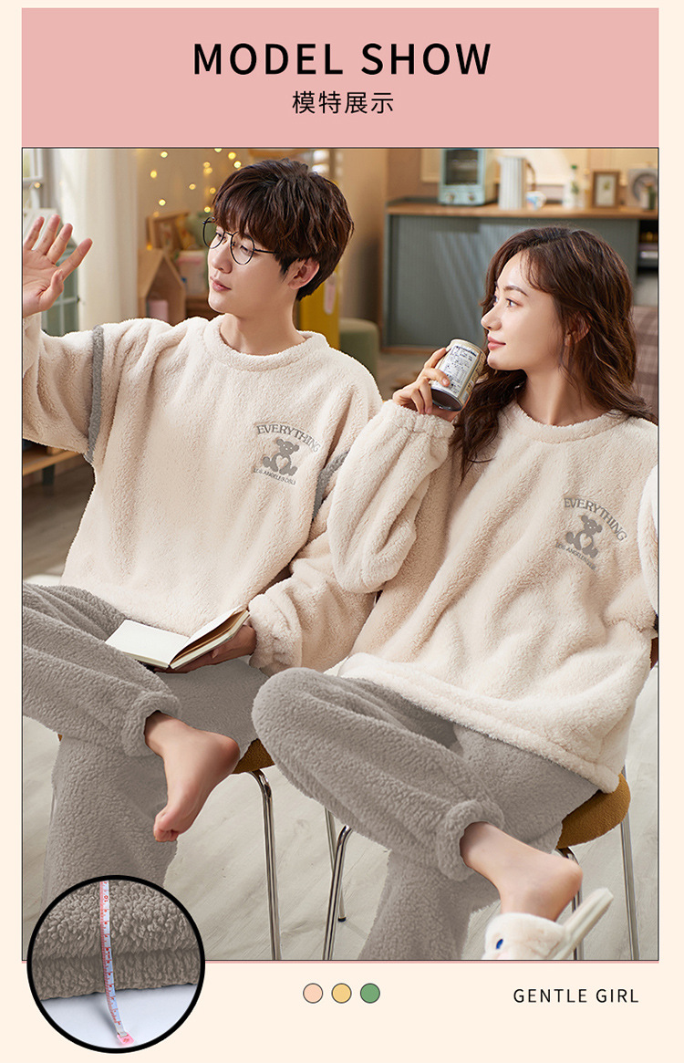 만화 플란넬 커플 잠옷 여성 플러스 벨벳 두꺼운 양복 남성 느슨한 대형 따뜻한 산호 양털 Homewear