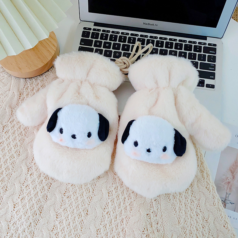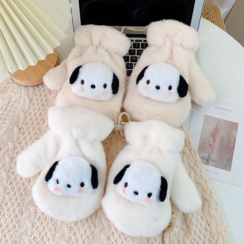 2023 가을과 겨울 봉제 장갑 여성 한국 만화 기모 두꺼운 학생 귀여운 전체 손가락 따뜻한 장갑을 타고스토어 가기
