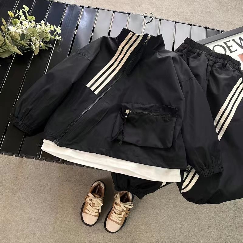 여아 세트 가을 2023 새로운 어린이 서양 스타일 남아 튀김 거리 중학교 어린이 유행 스포츠 투피스 세트스토어 가기