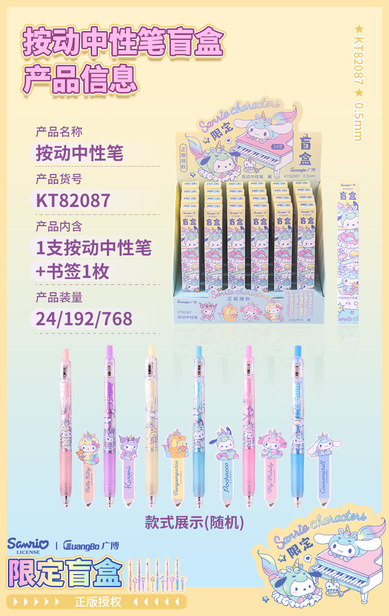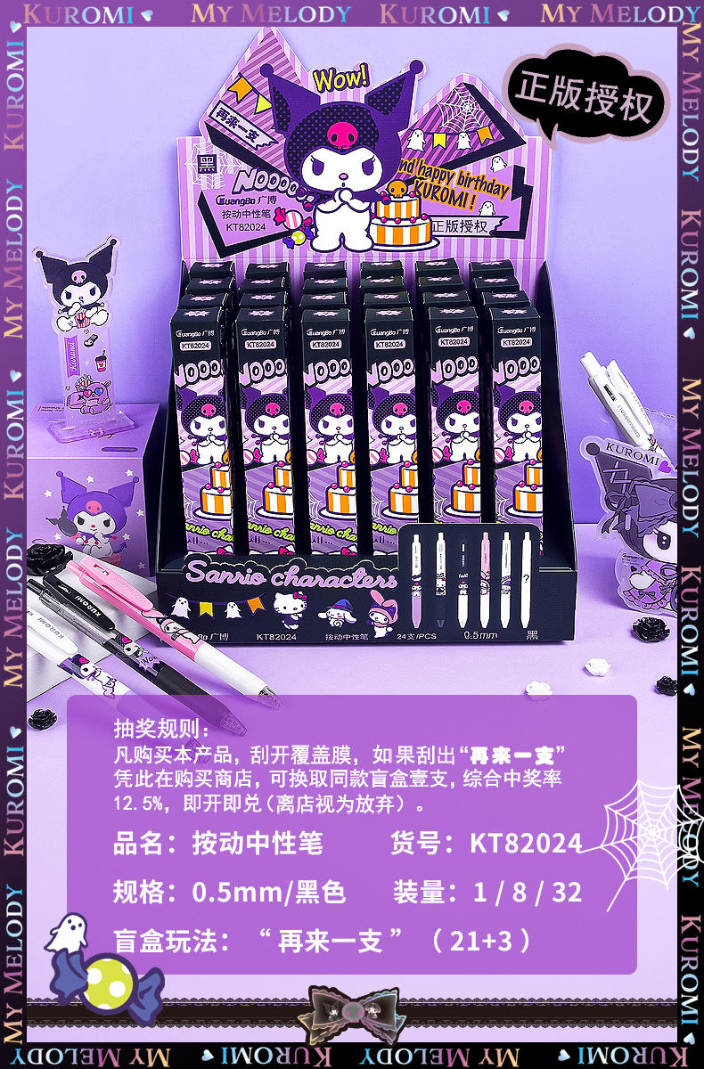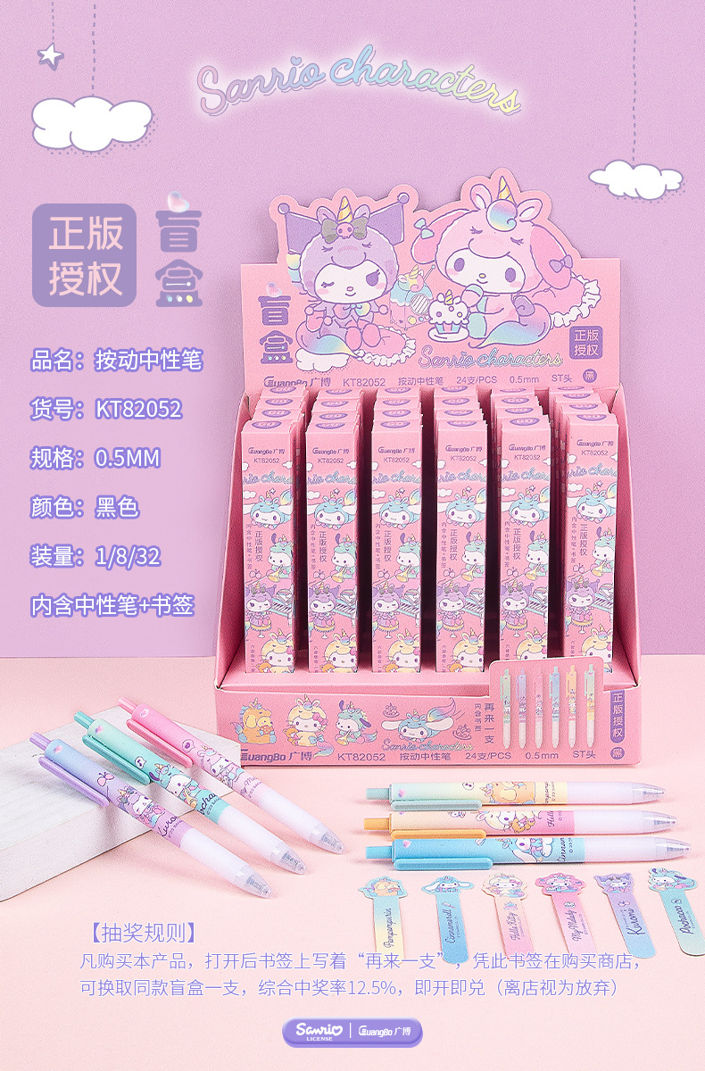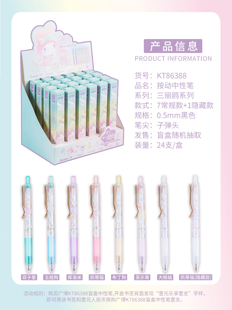 광보 블라인드 박스 절묘한 산리오 파차 개 쿨미 멜로디 KT 캣킹 글로리 블랙 0.5 시그니처 펜