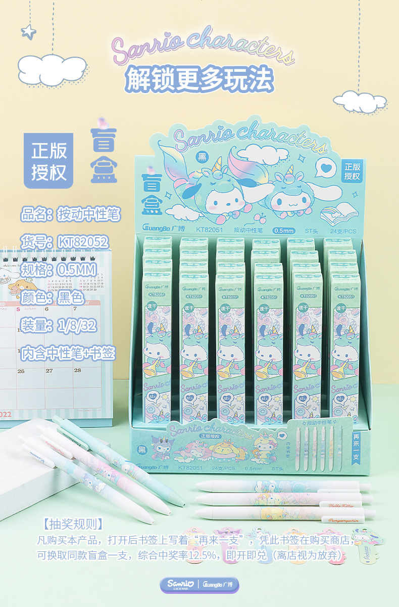 • KT82256 산리오 블라인드 박스 펜 1개[12개/박스]