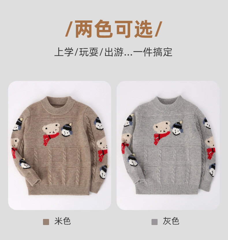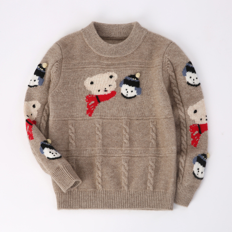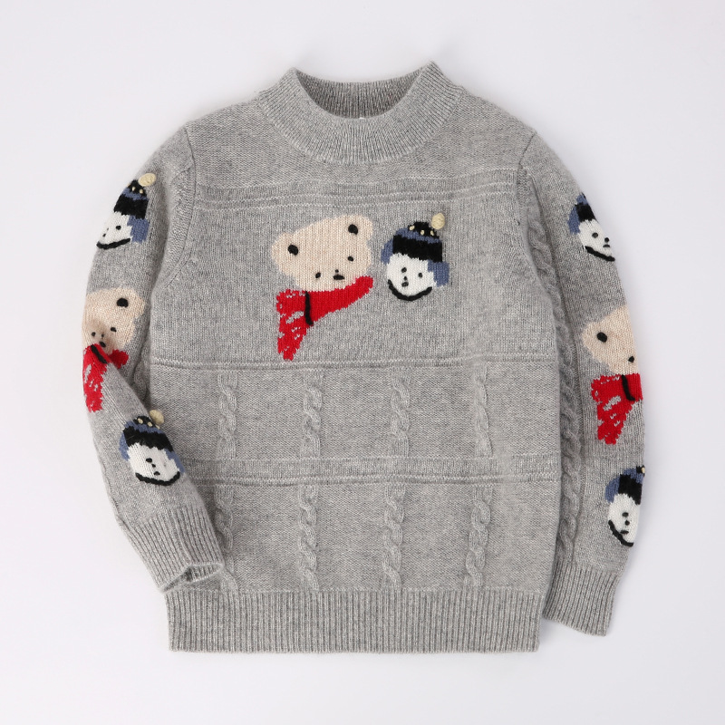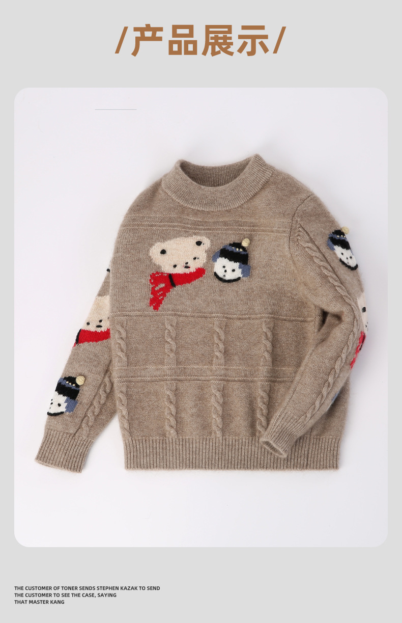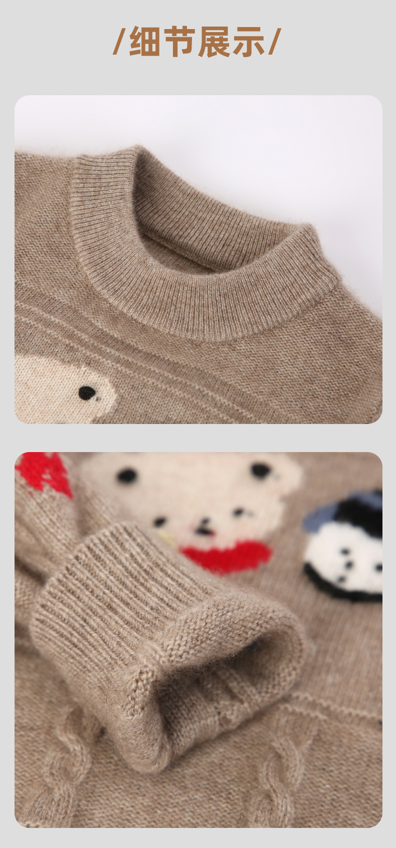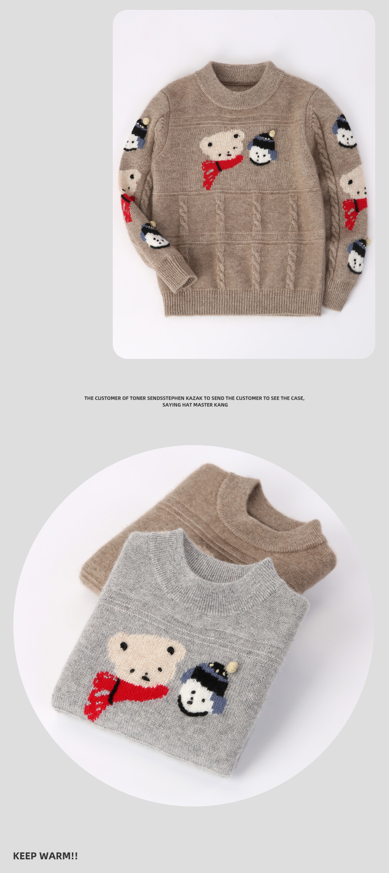 양고기 점프 2023 가을과 겨울 새로운 라운드 넥 100 순수 캐시미어 스웨터 어린이 니트 만화 스웨터 따뜻한 두꺼운스토어 가기