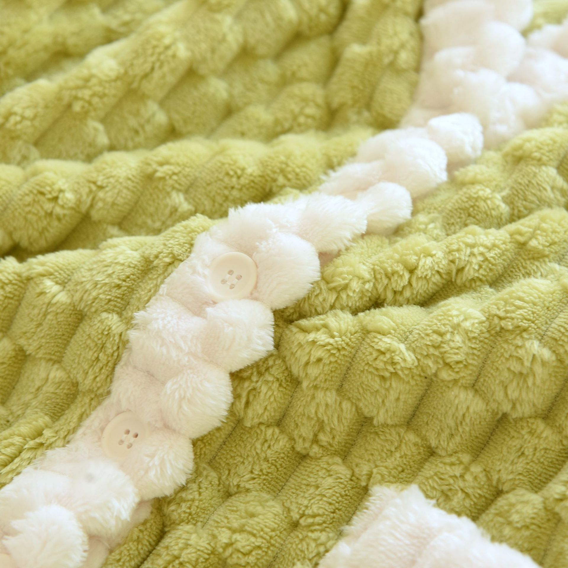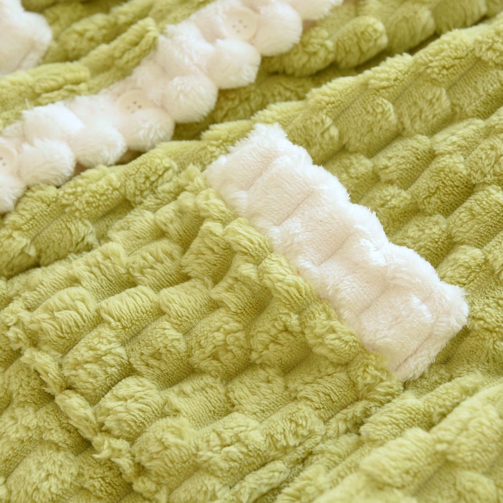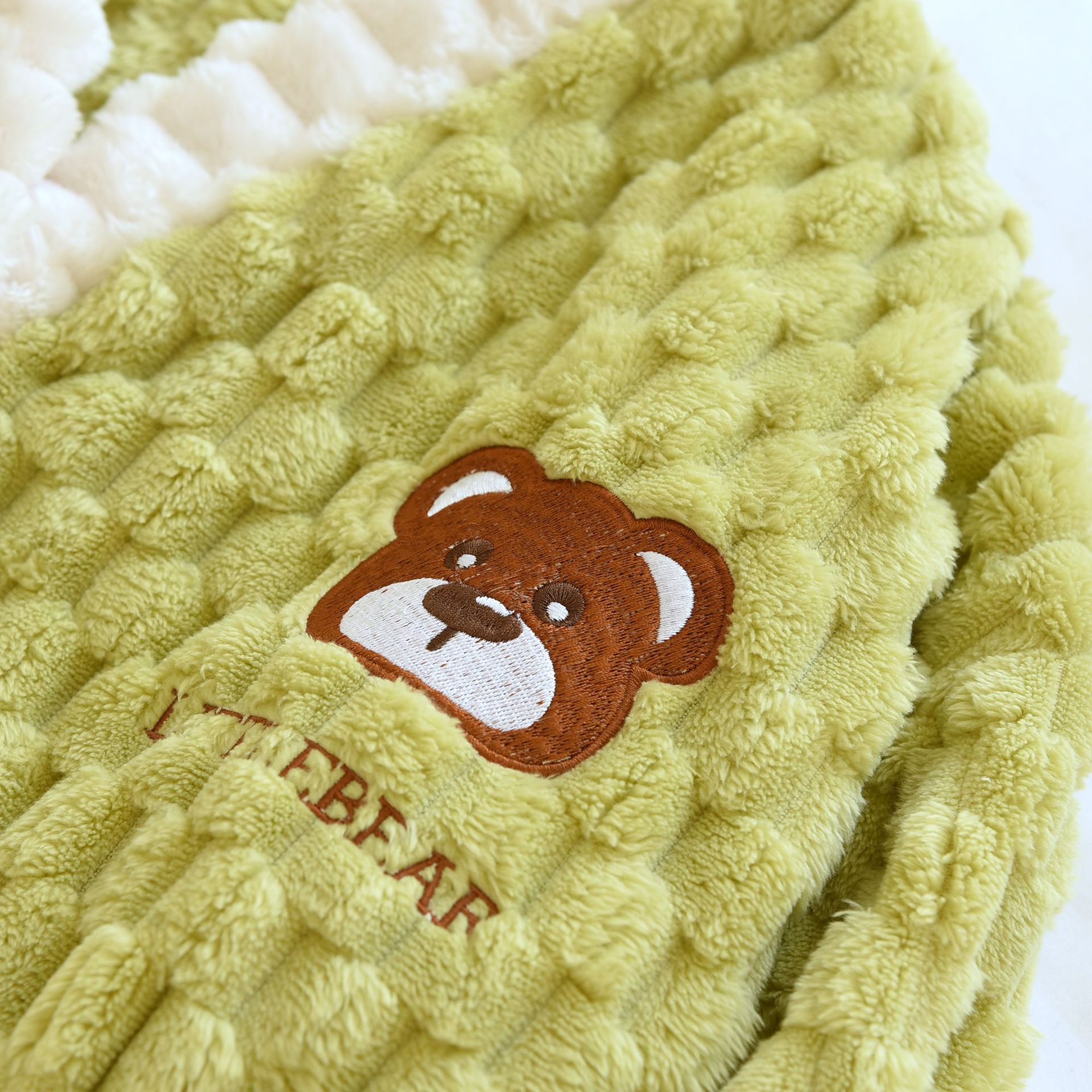• LYZ V-넥 자수 곰 플란넬 여성 그린