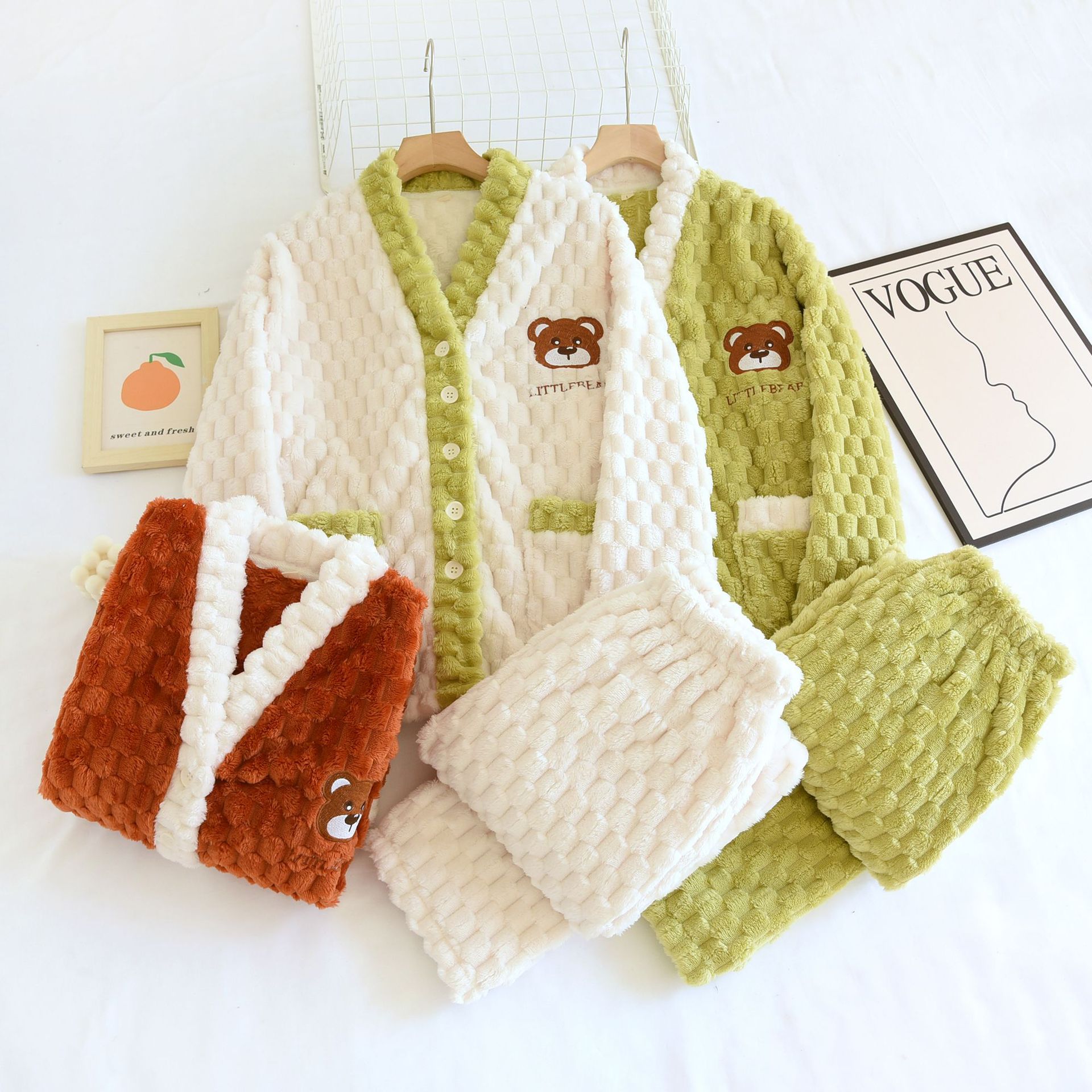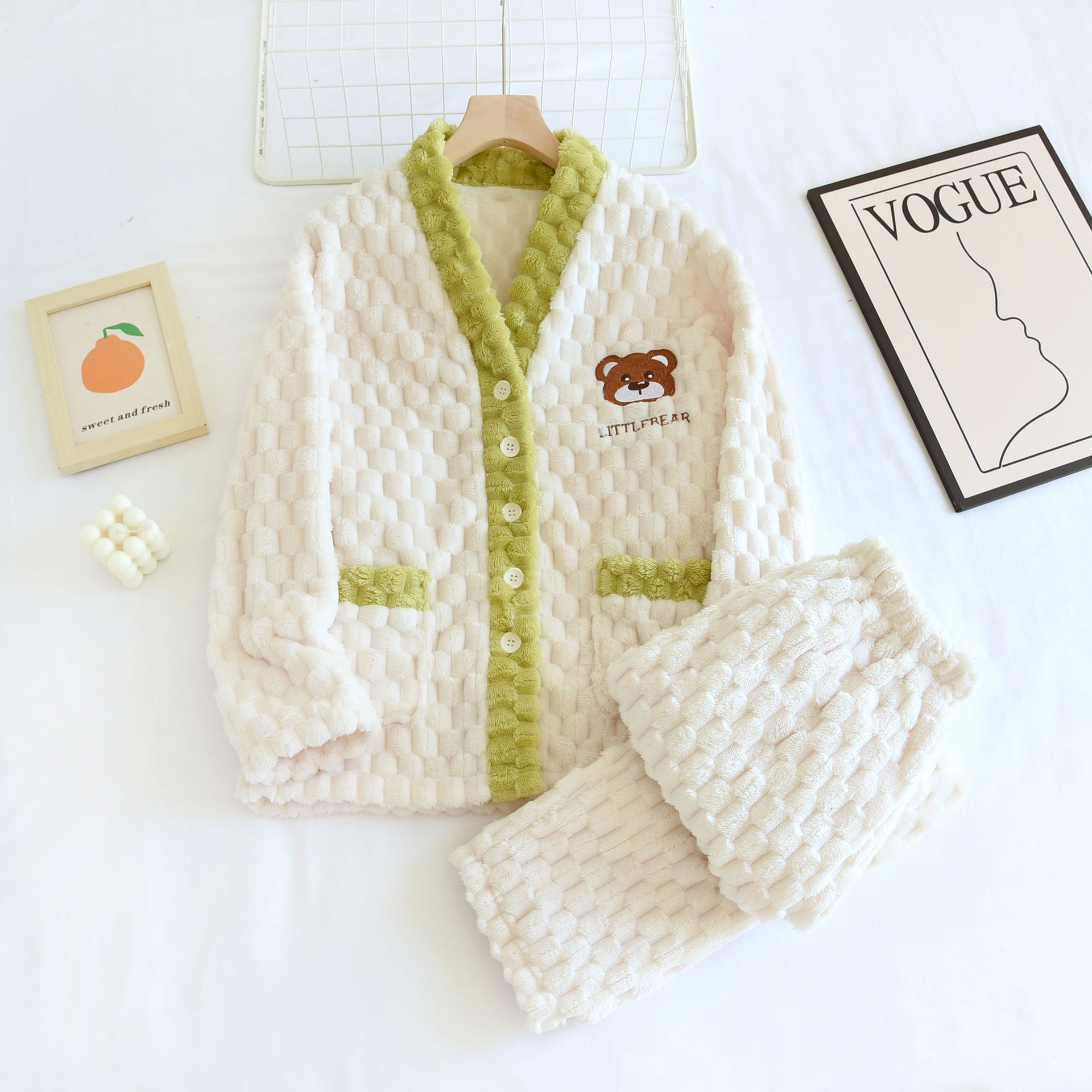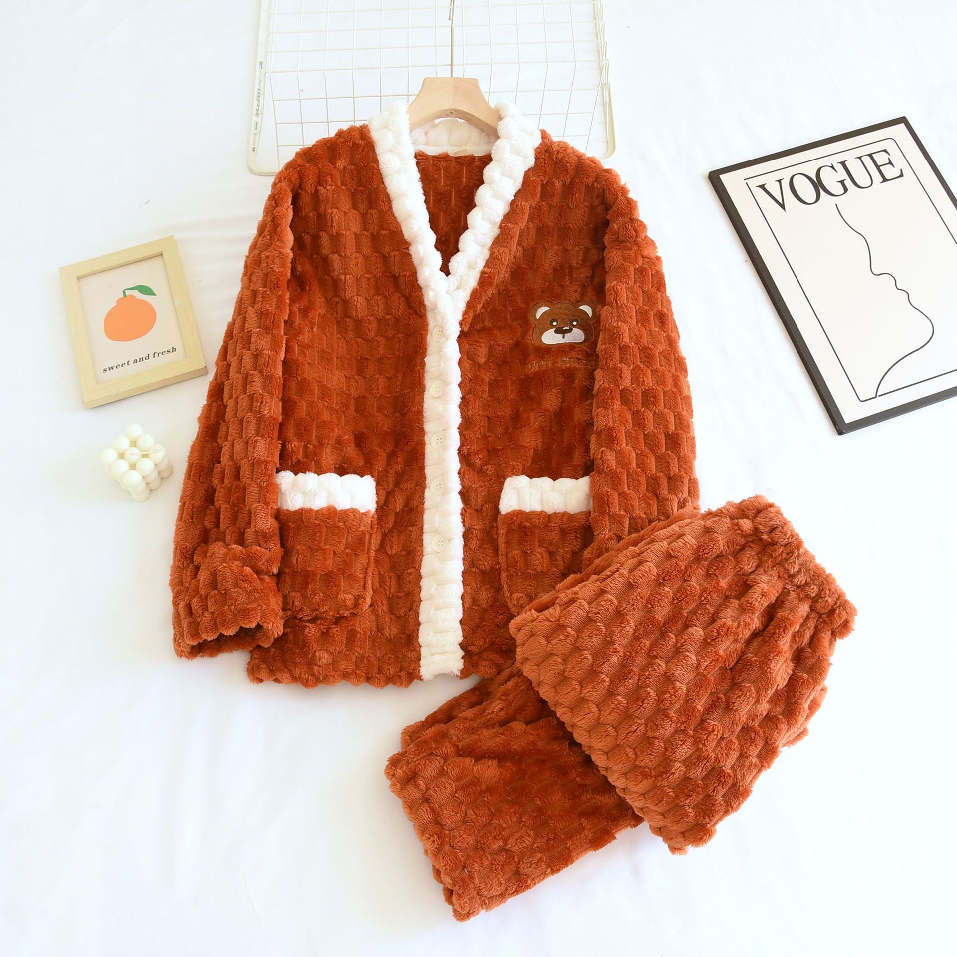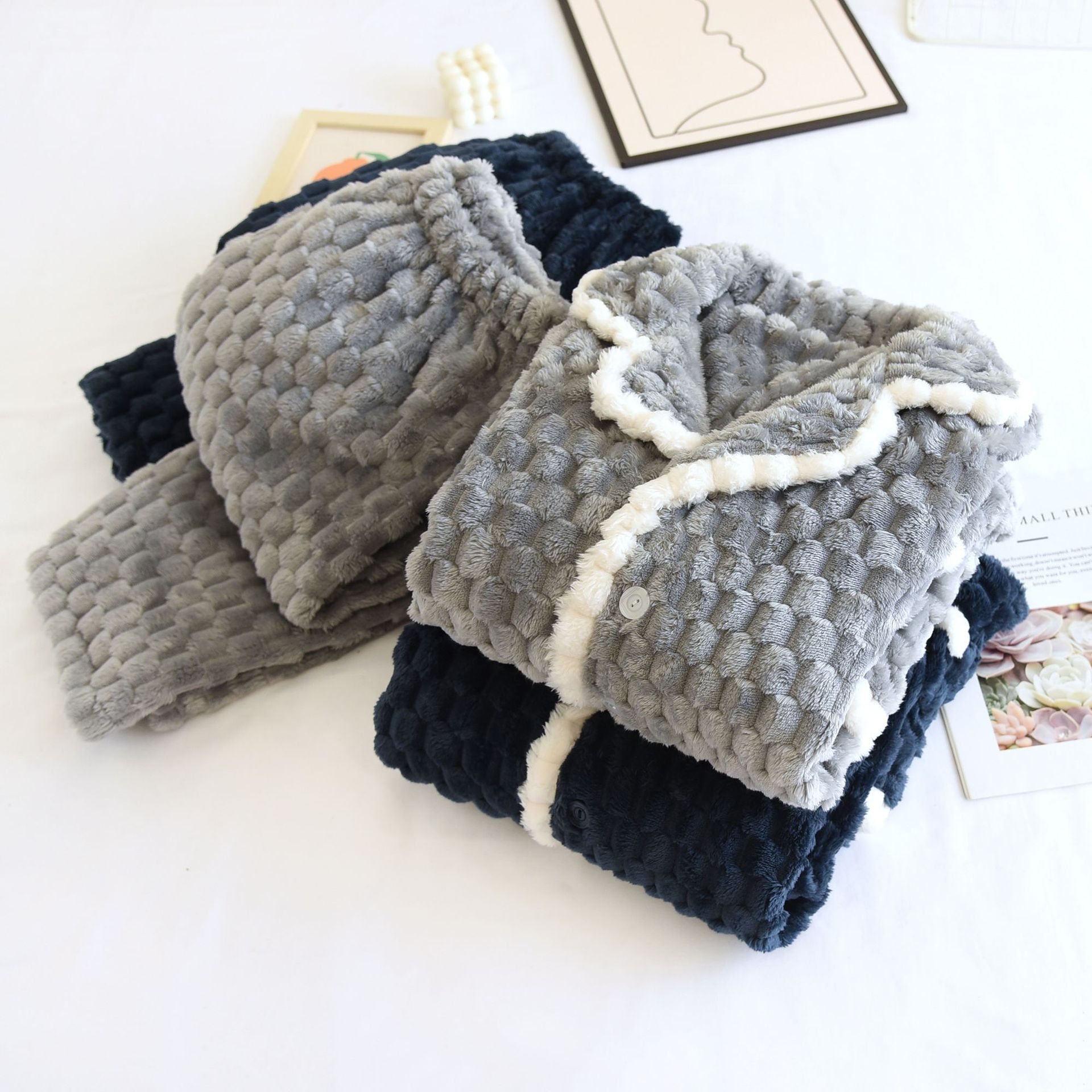 새로운 플란넬 커플 캐주얼 잠옷 가을과 겨울 기모 두꺼운 따뜻한 산호 양털 가정 옷 커플 세트스토어 가기